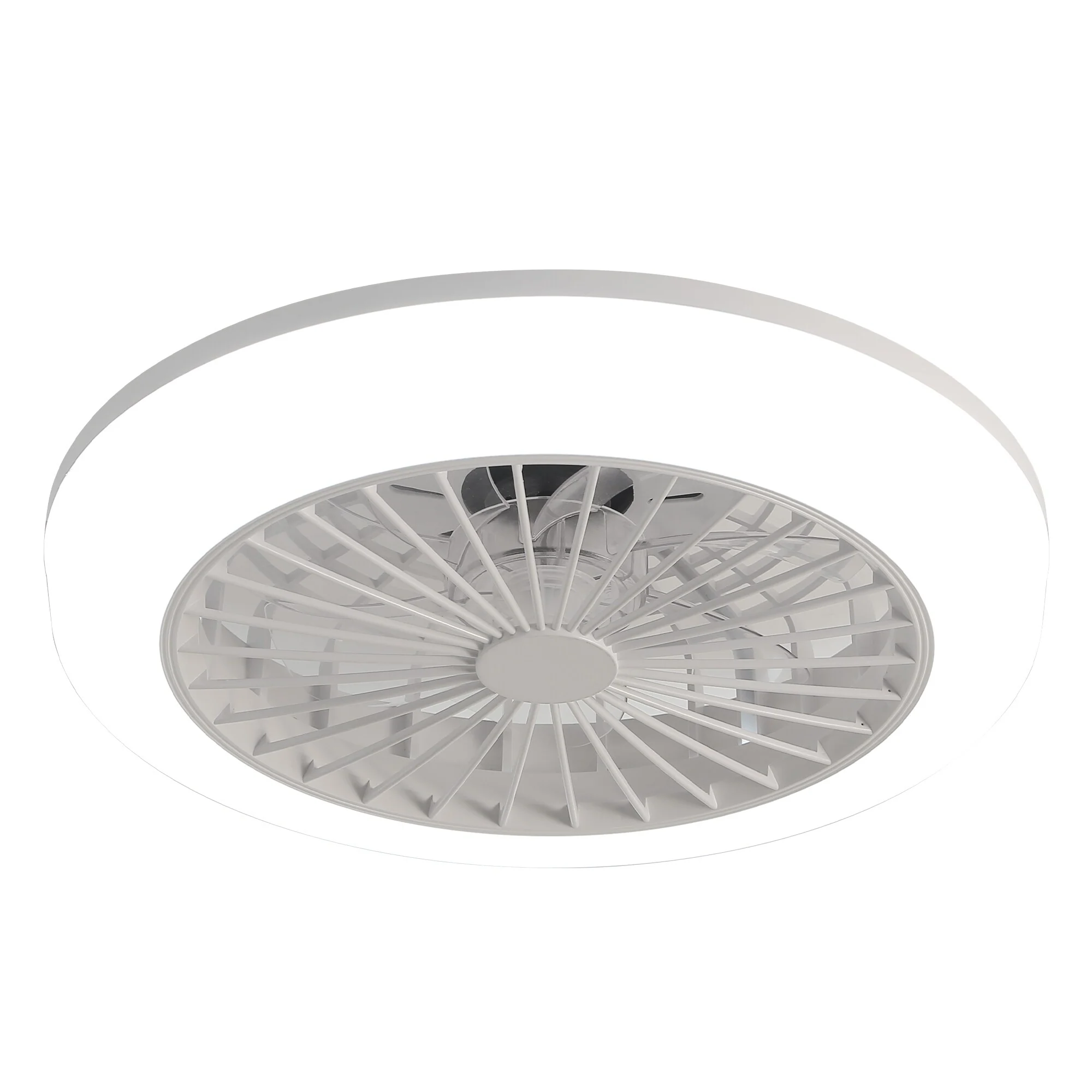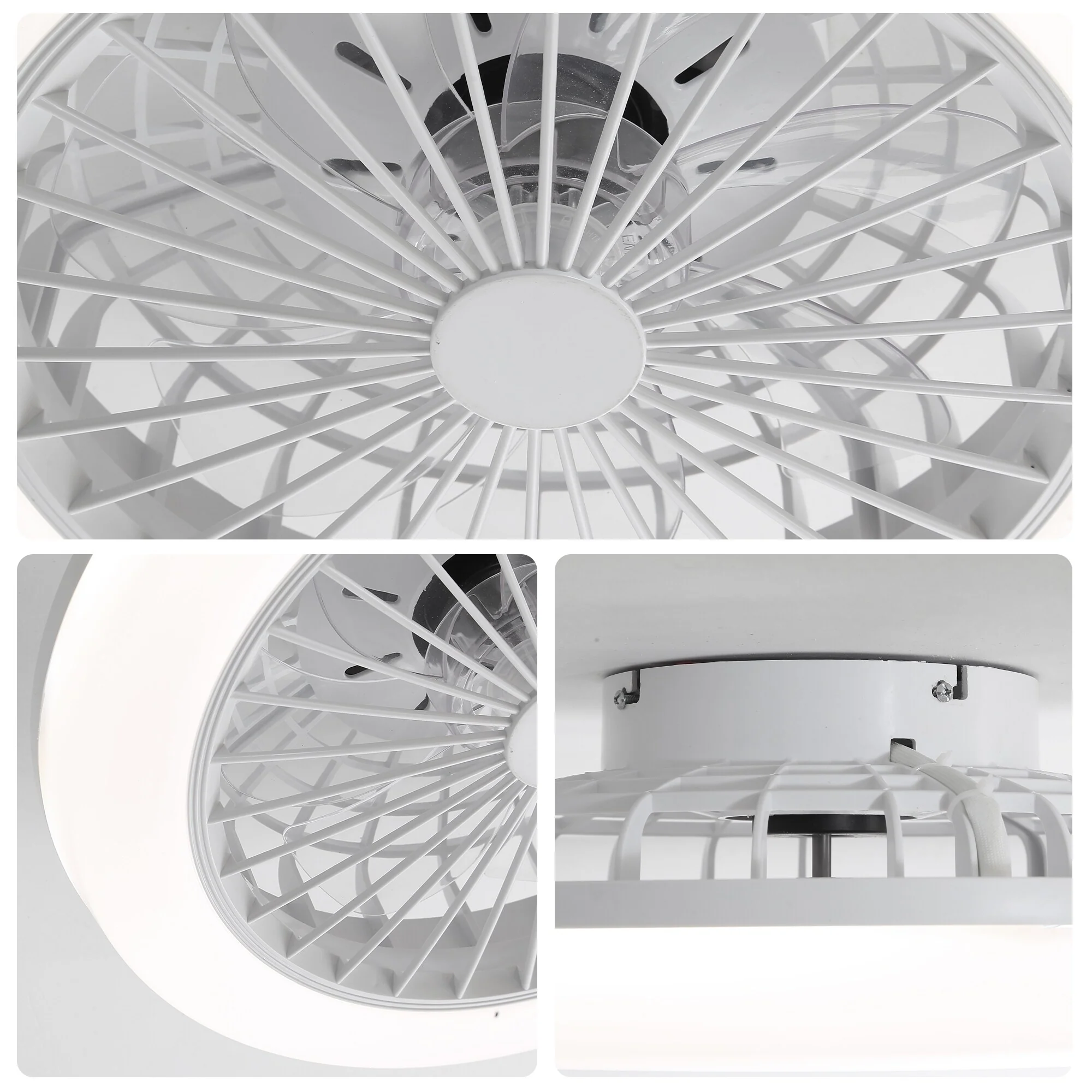 18 Inch Enclosed Ceiling Fan with Light and Remote, Modern Flush Mount Bladeless Ceiling Fan for Bedroom Living Room, White