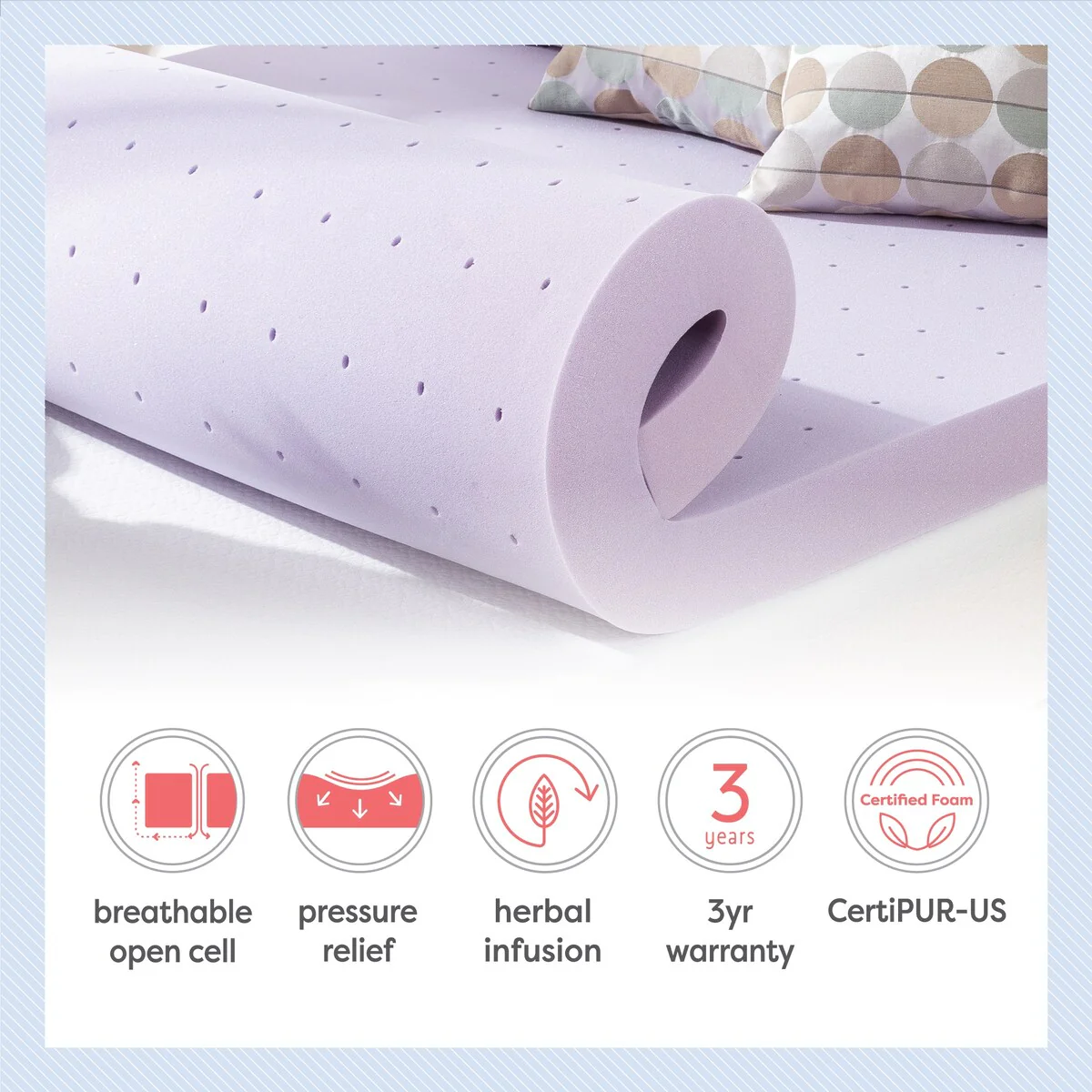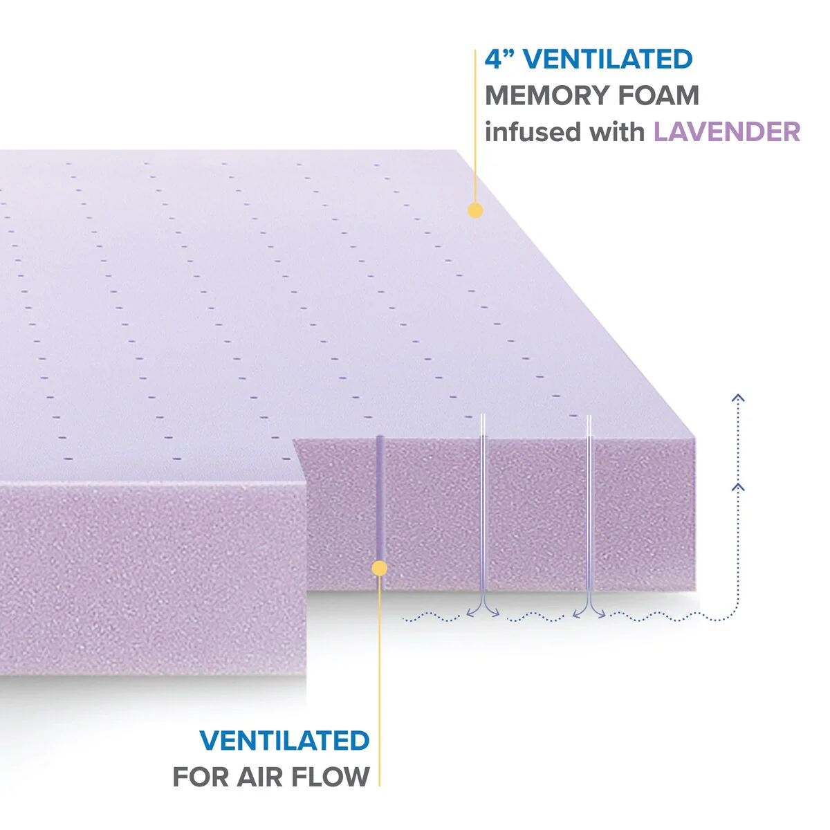 4 Inch Lavender Infused Ventilated Memory Foam Bed Topper - Crown Comfort