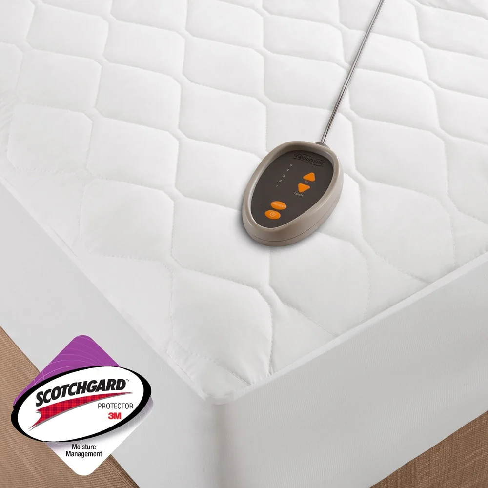 Beautyrest Cotton Blend Full Size Heated Electric Mattress Pad - White
