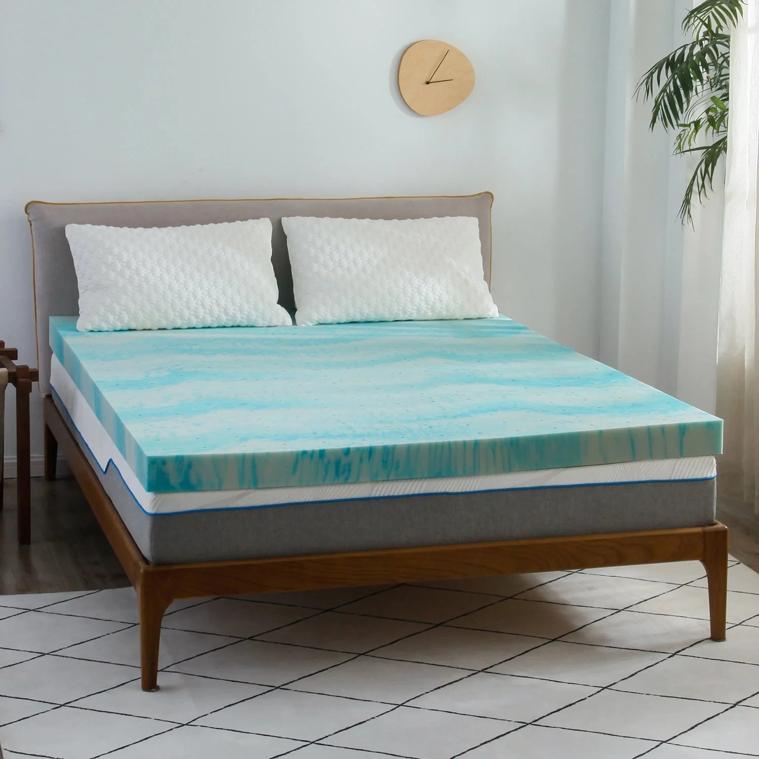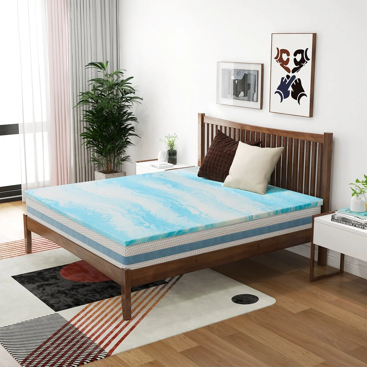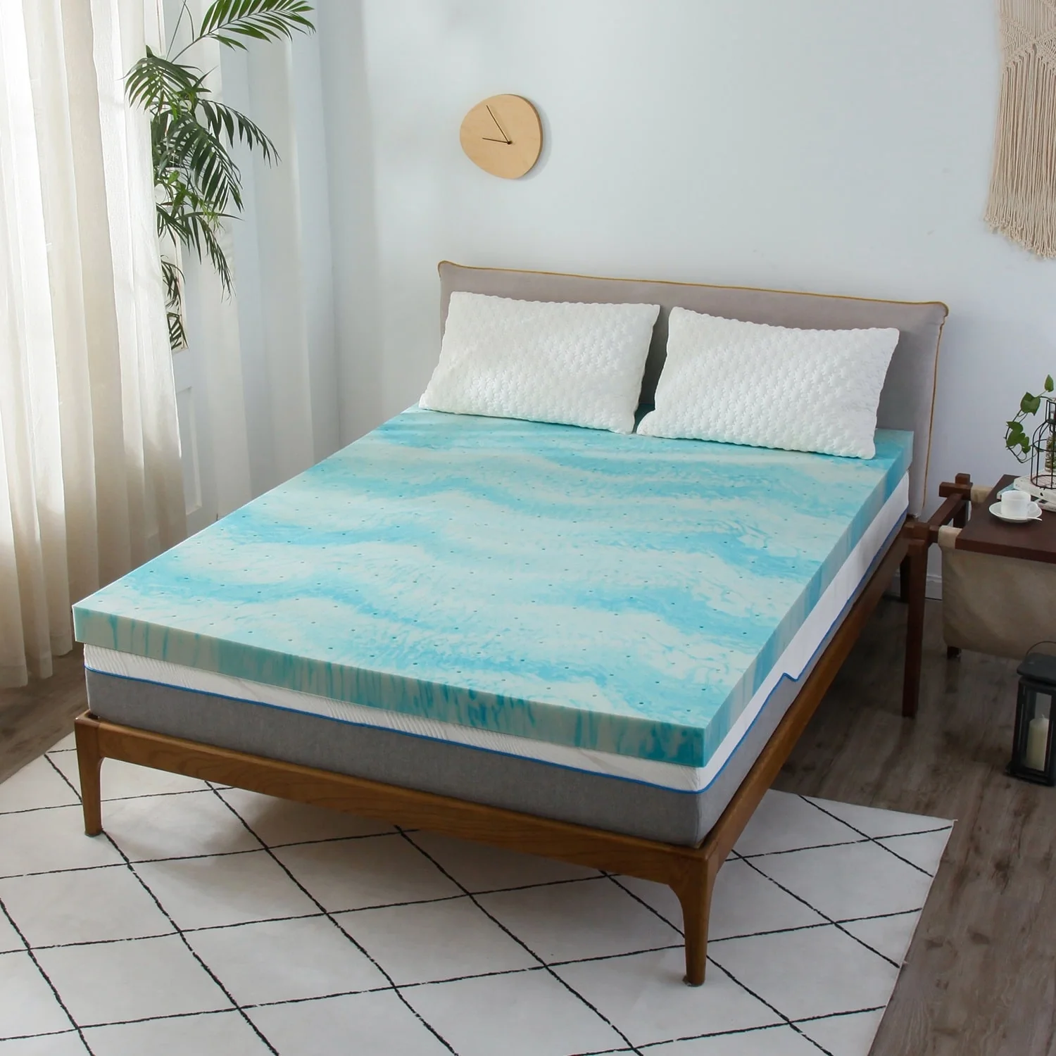 3 Inch Gel Swirl Memory Foam Mattress Topper - Ripple Blue