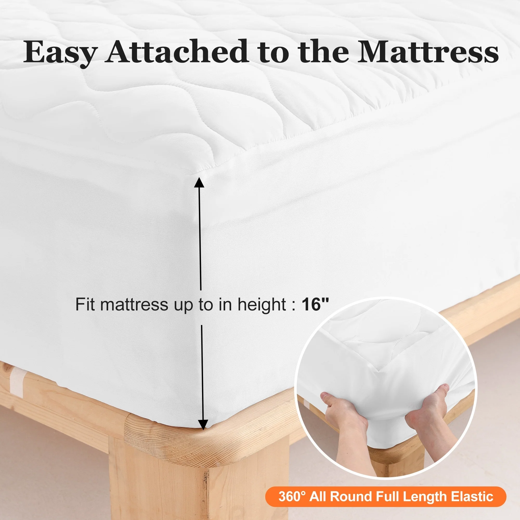 Ultrasonic Quilting Waterproof Mattress Protector Pad Cover - White