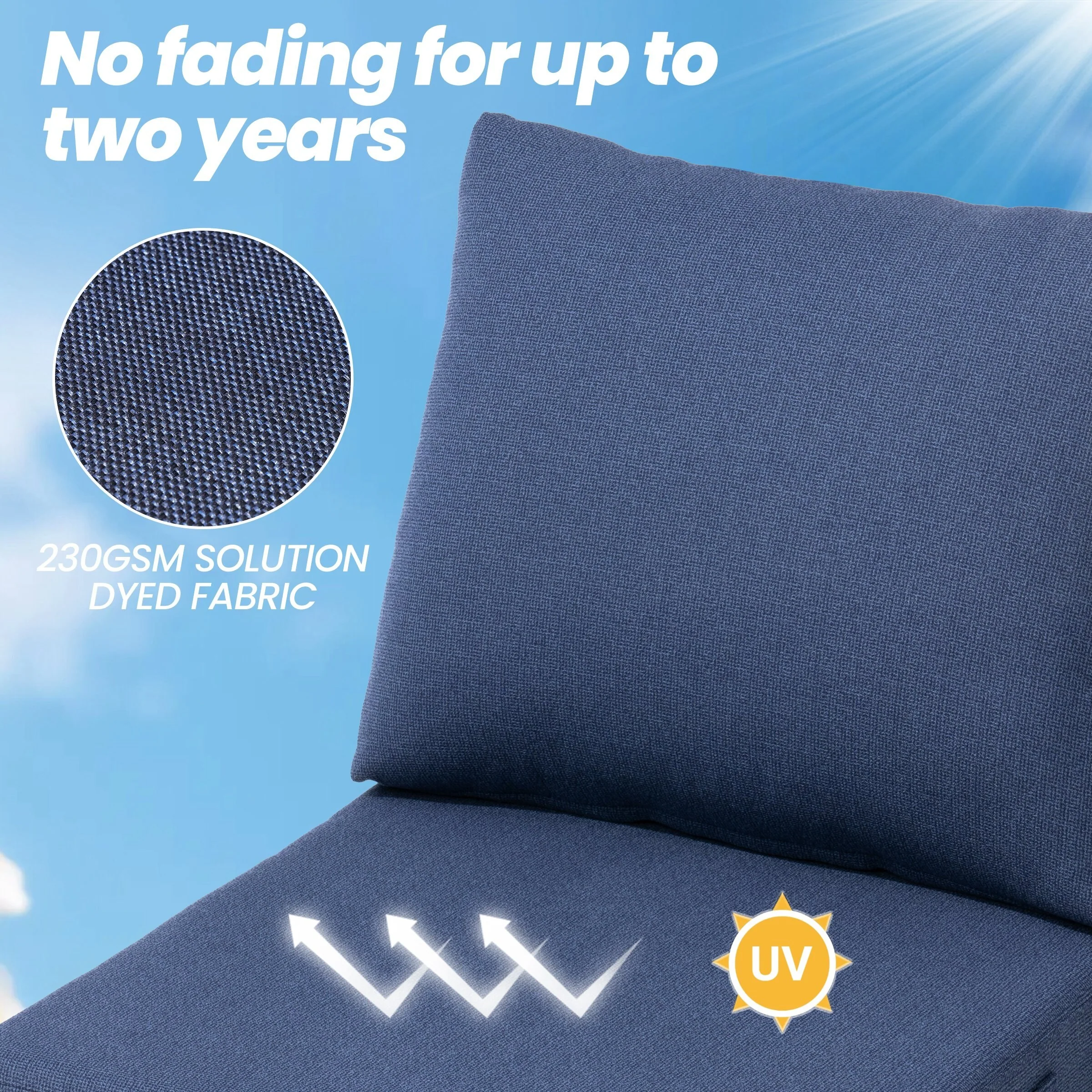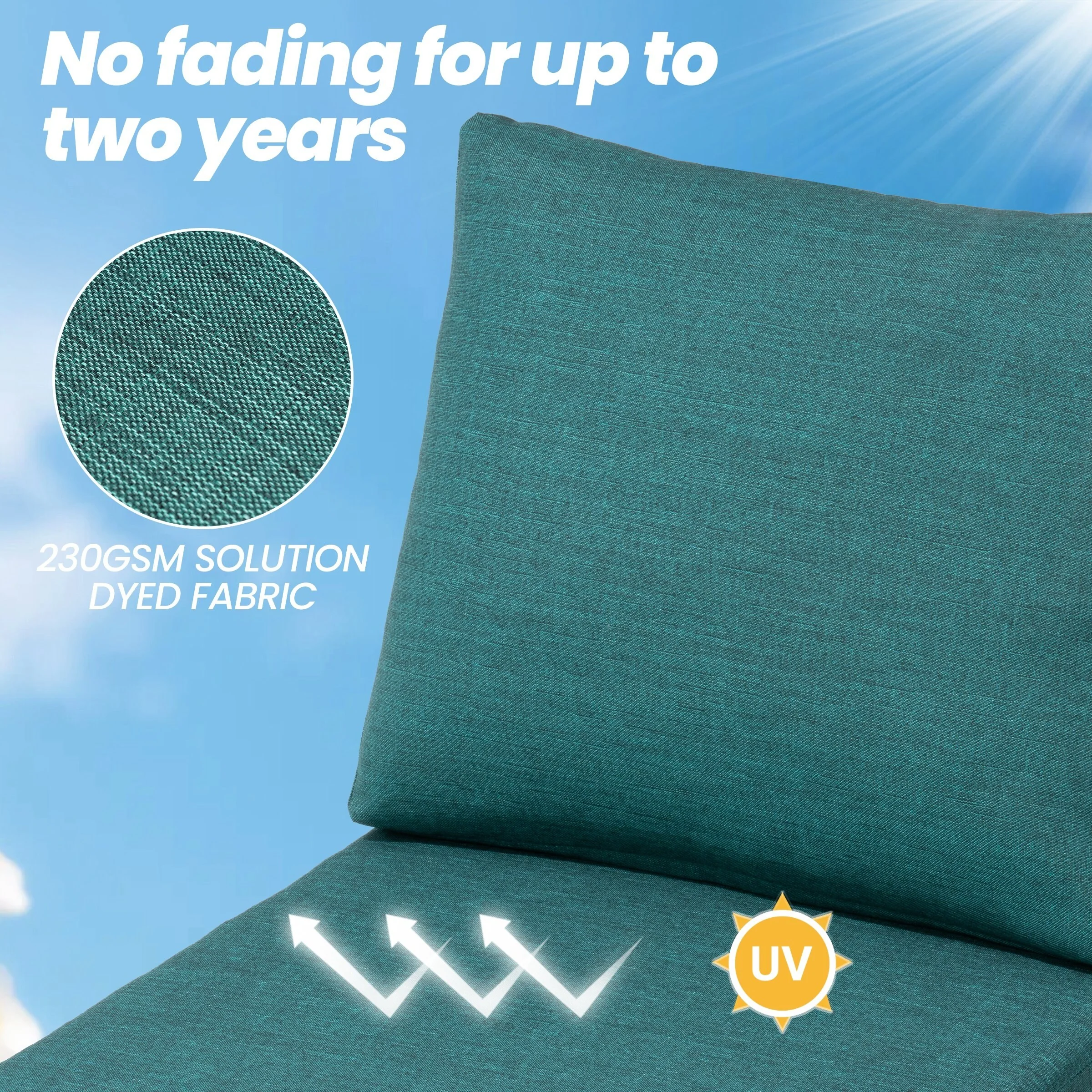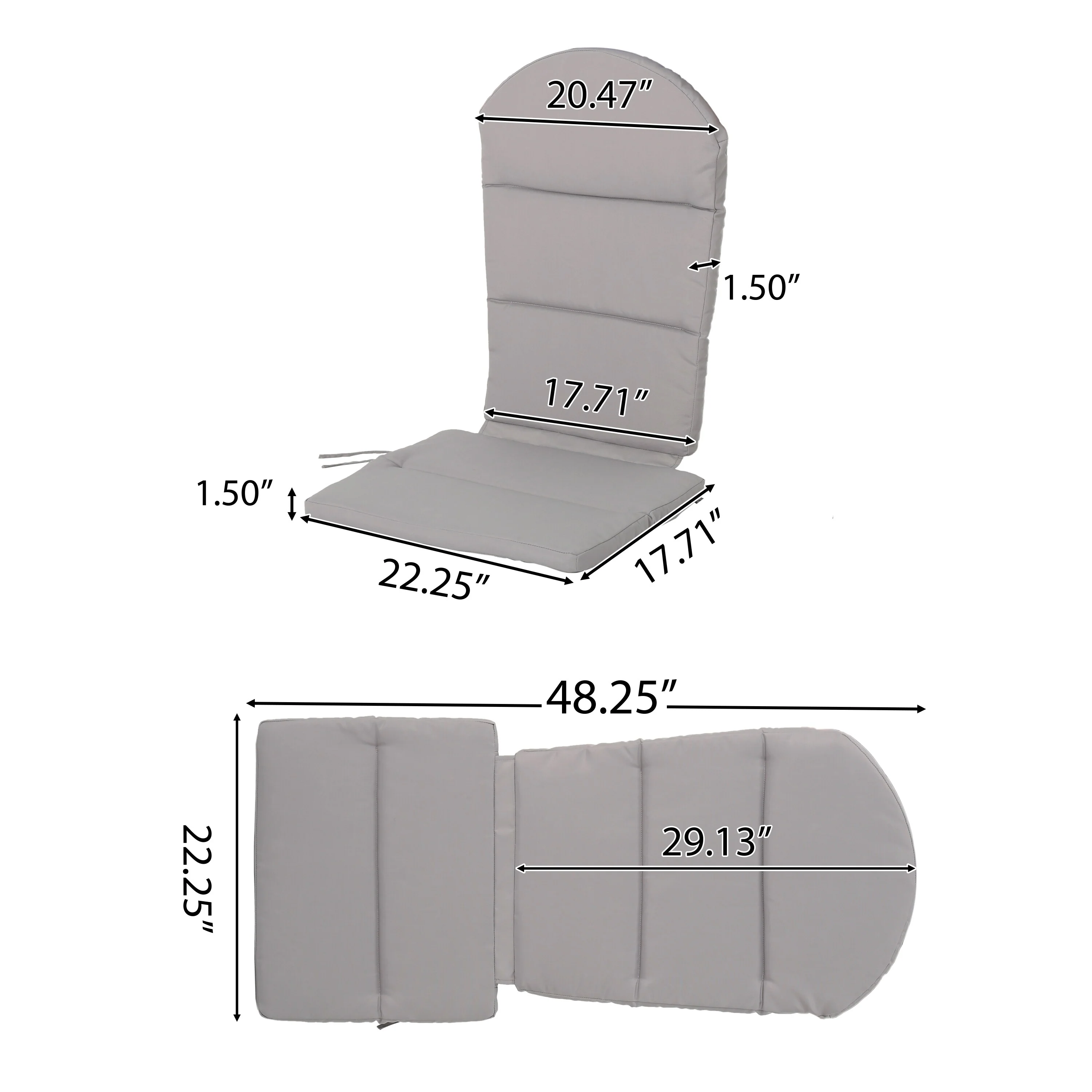 Outdoor Reclining Chair Cushions with Headrest High Density Foam Weather Resistant Includes Ties