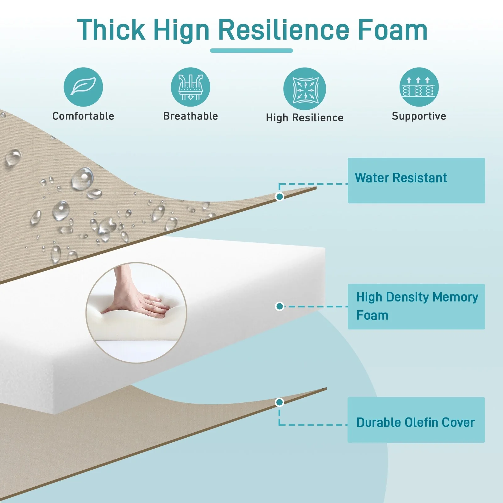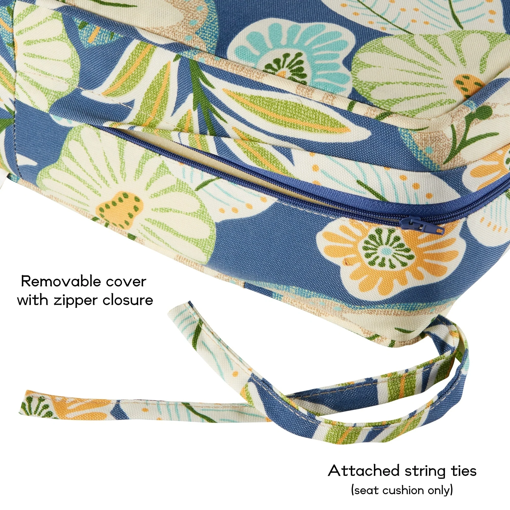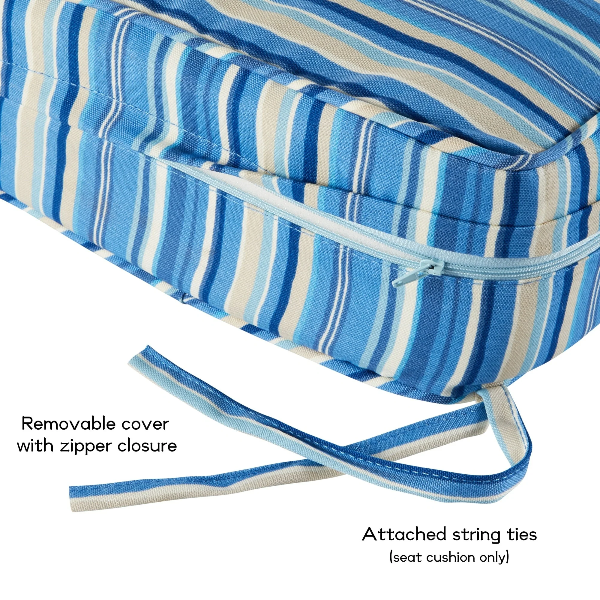 Outdoor Reclining Chair Cushions with Headrest High Density Foam Weather Resistant Includes Ties