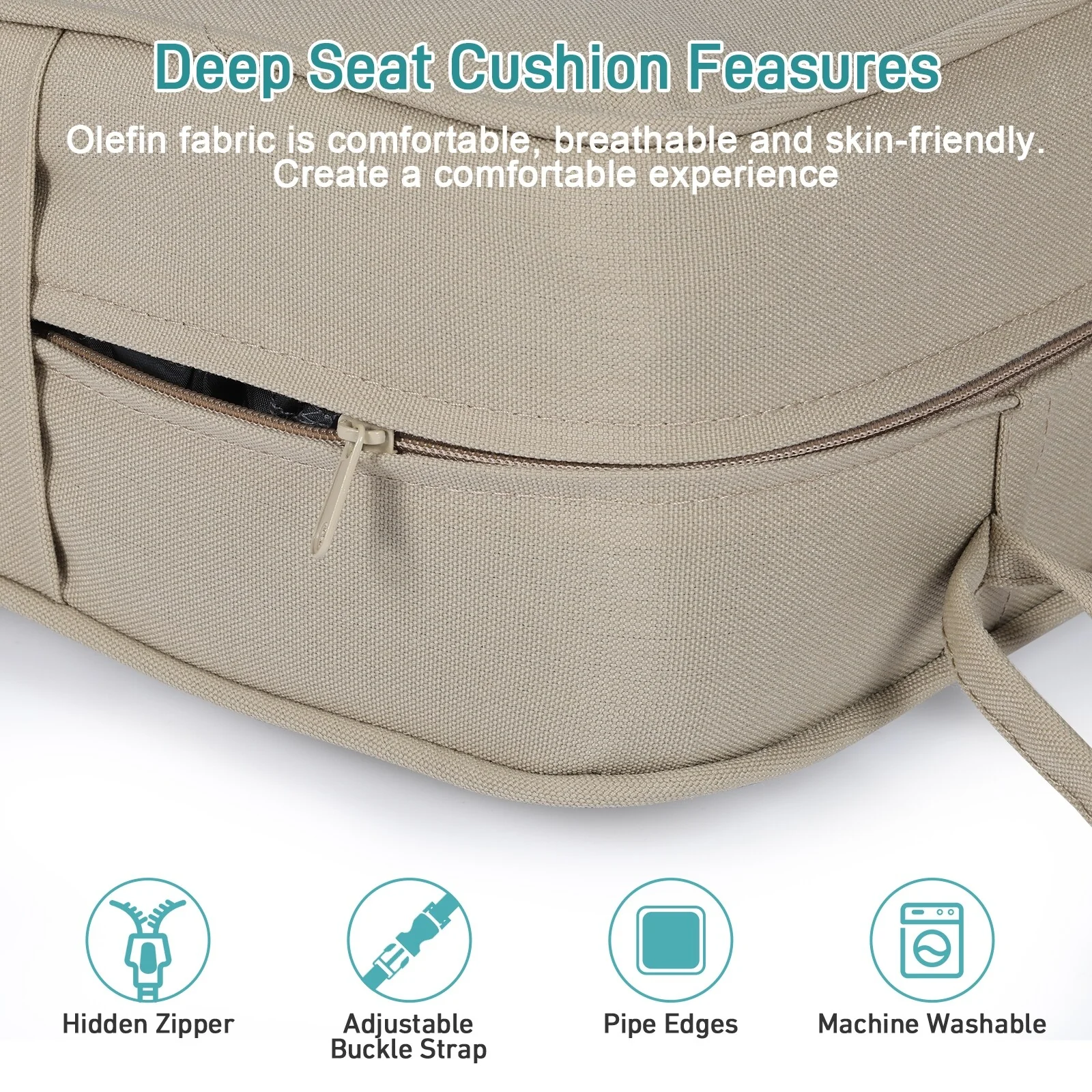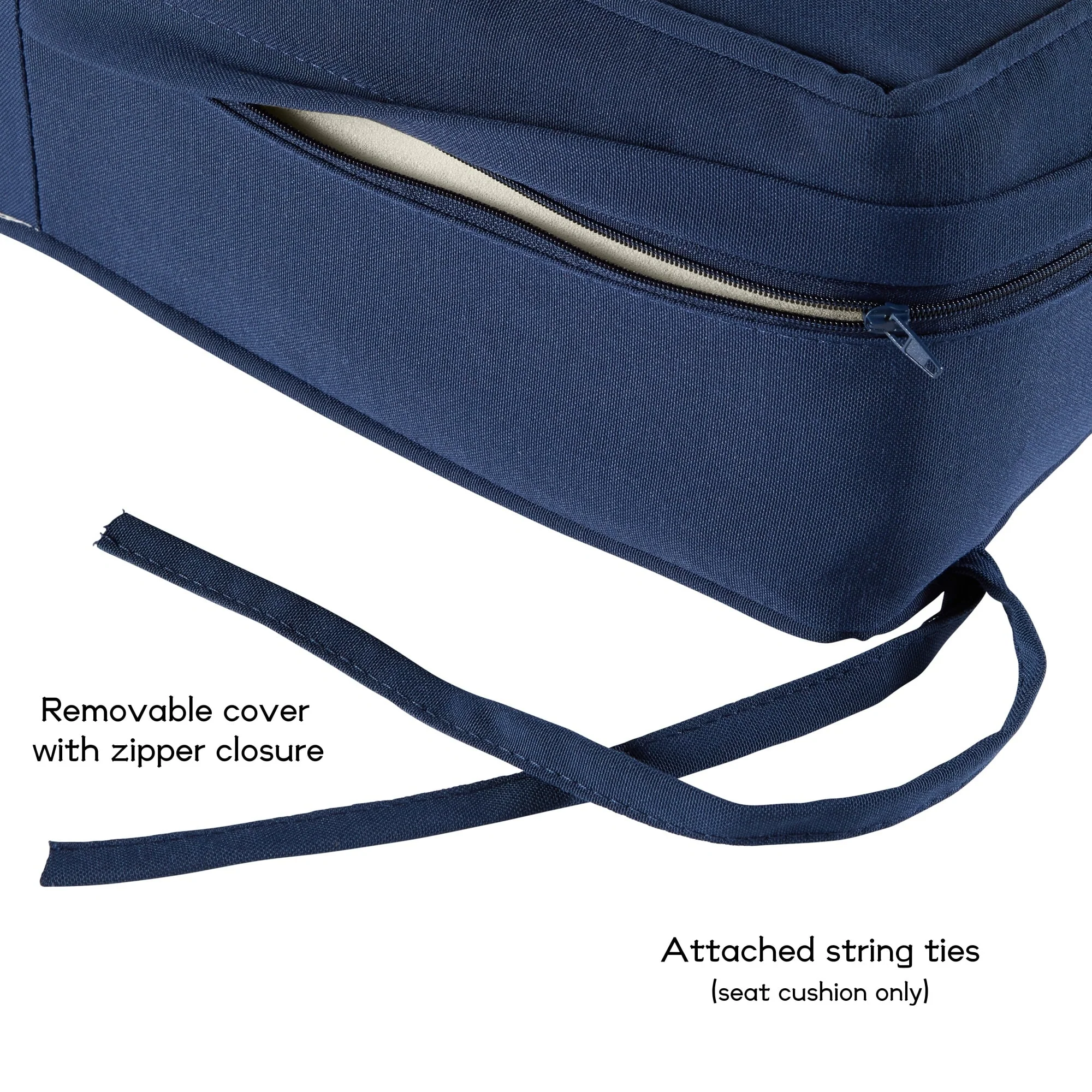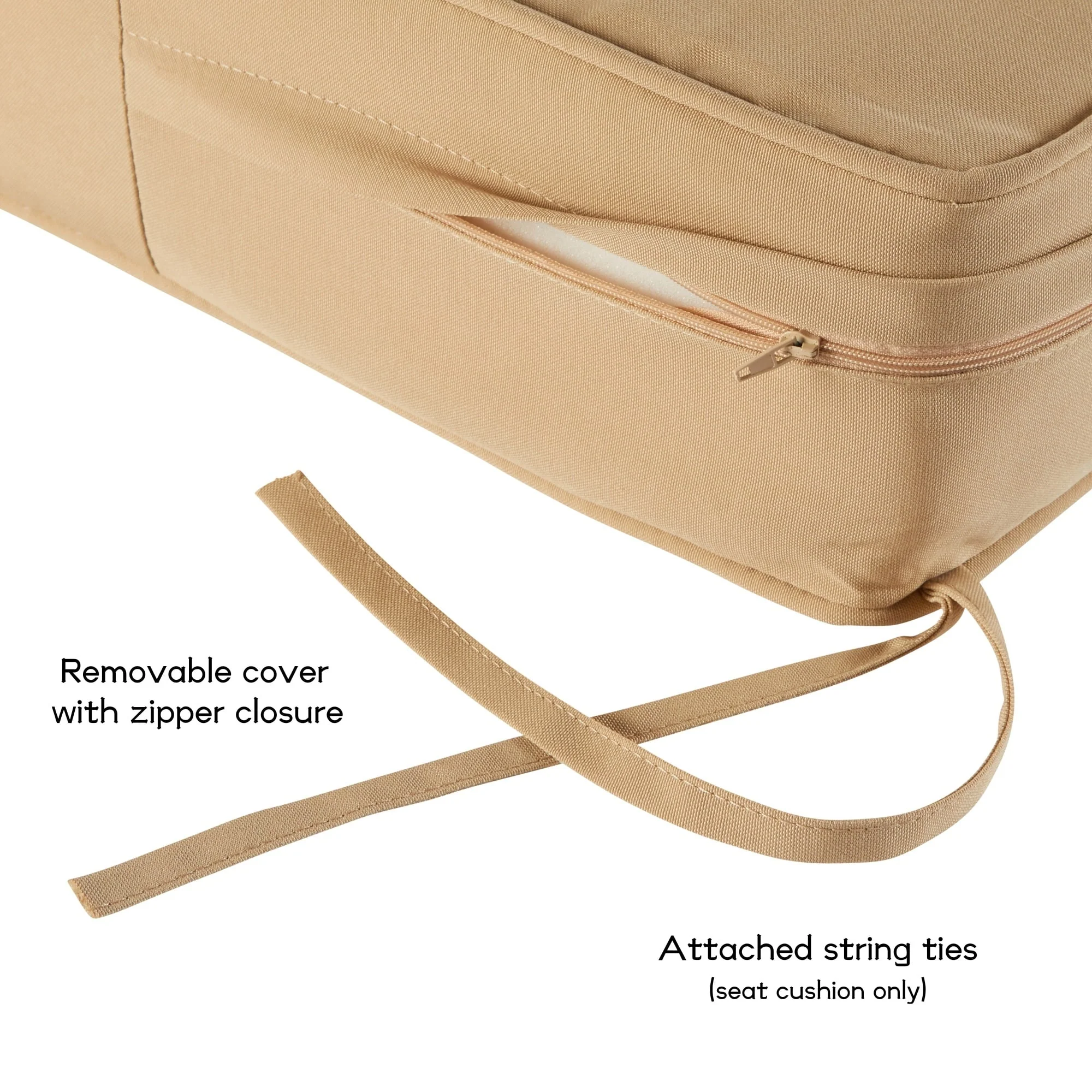 21" x 38" Beige Solid Outdoor Chair Cushion with Ties and Loop - 38'' L x 21'' W x 3.5'' H