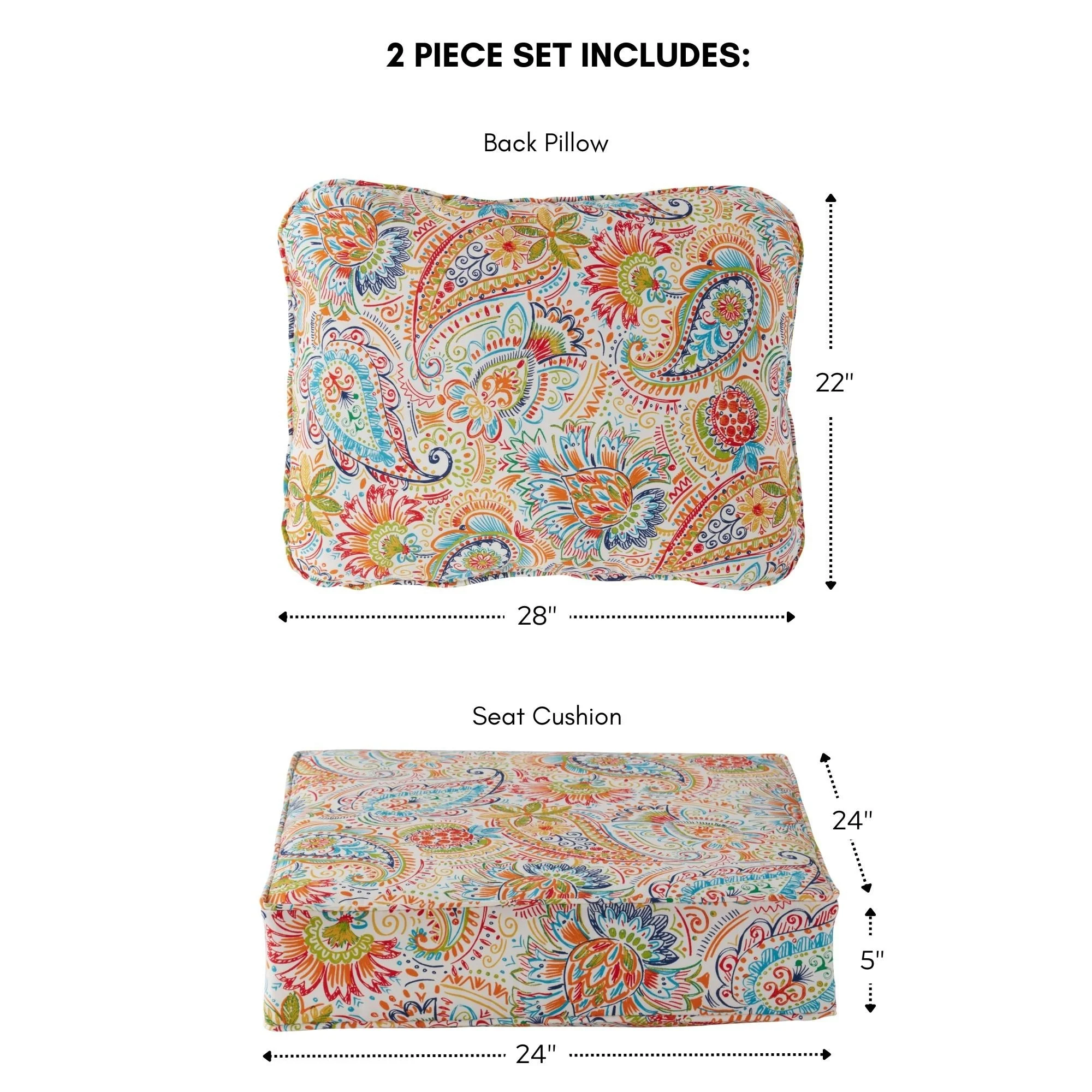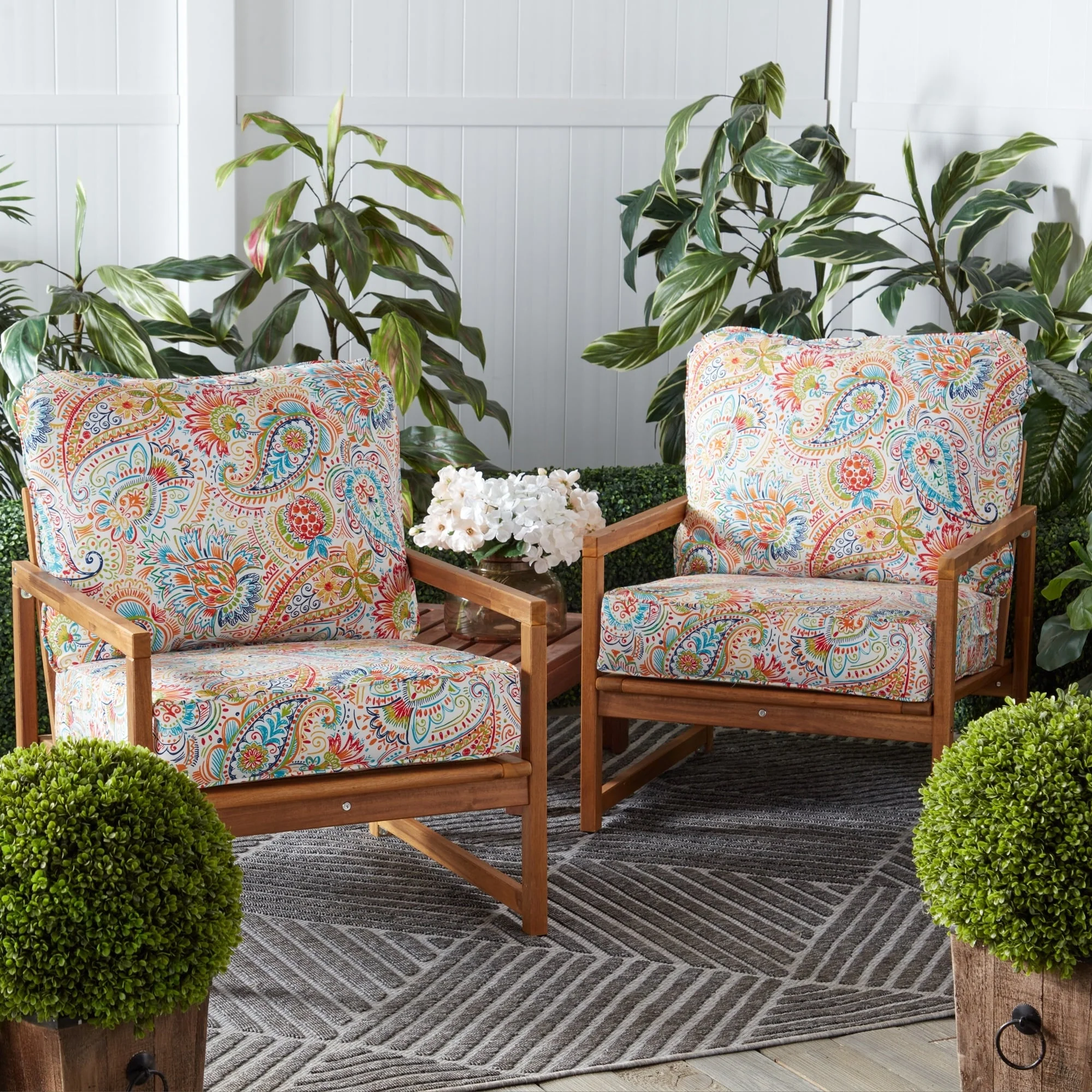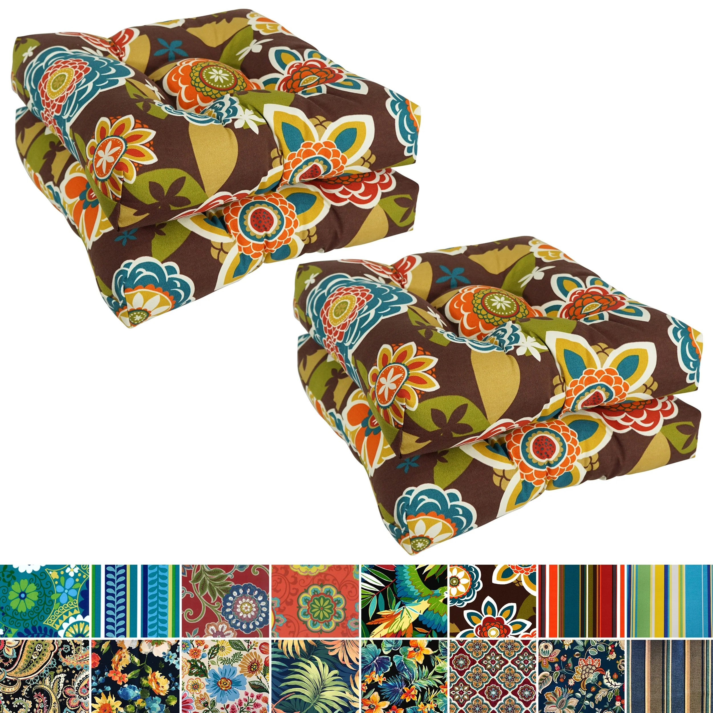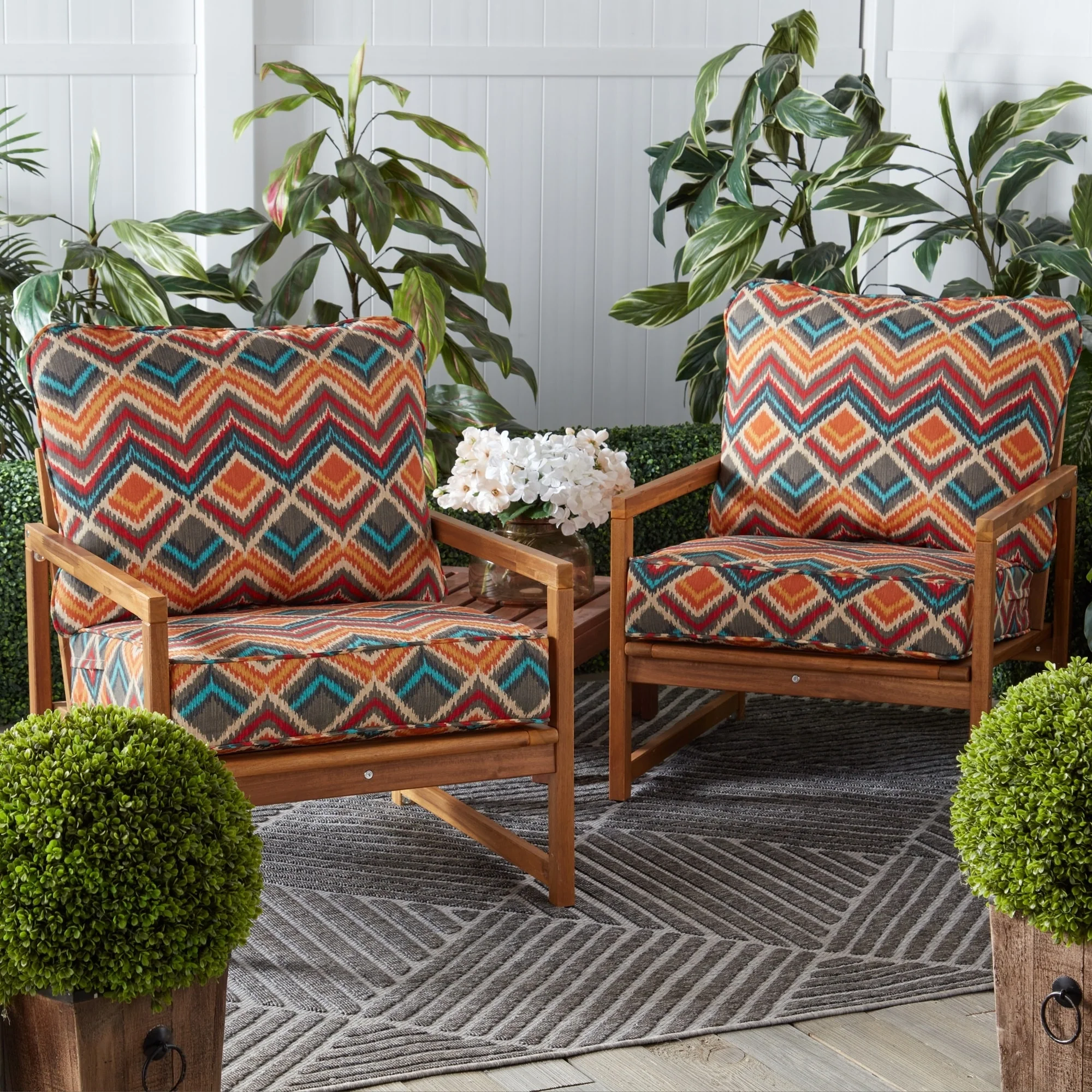 Pillow Perfect Outdoor Copeland Fiesta Rounded Corners Seat Cushion (Set of 2) - 15.5 X 18.5 X 3 - 15.5 X 18.5 X 3