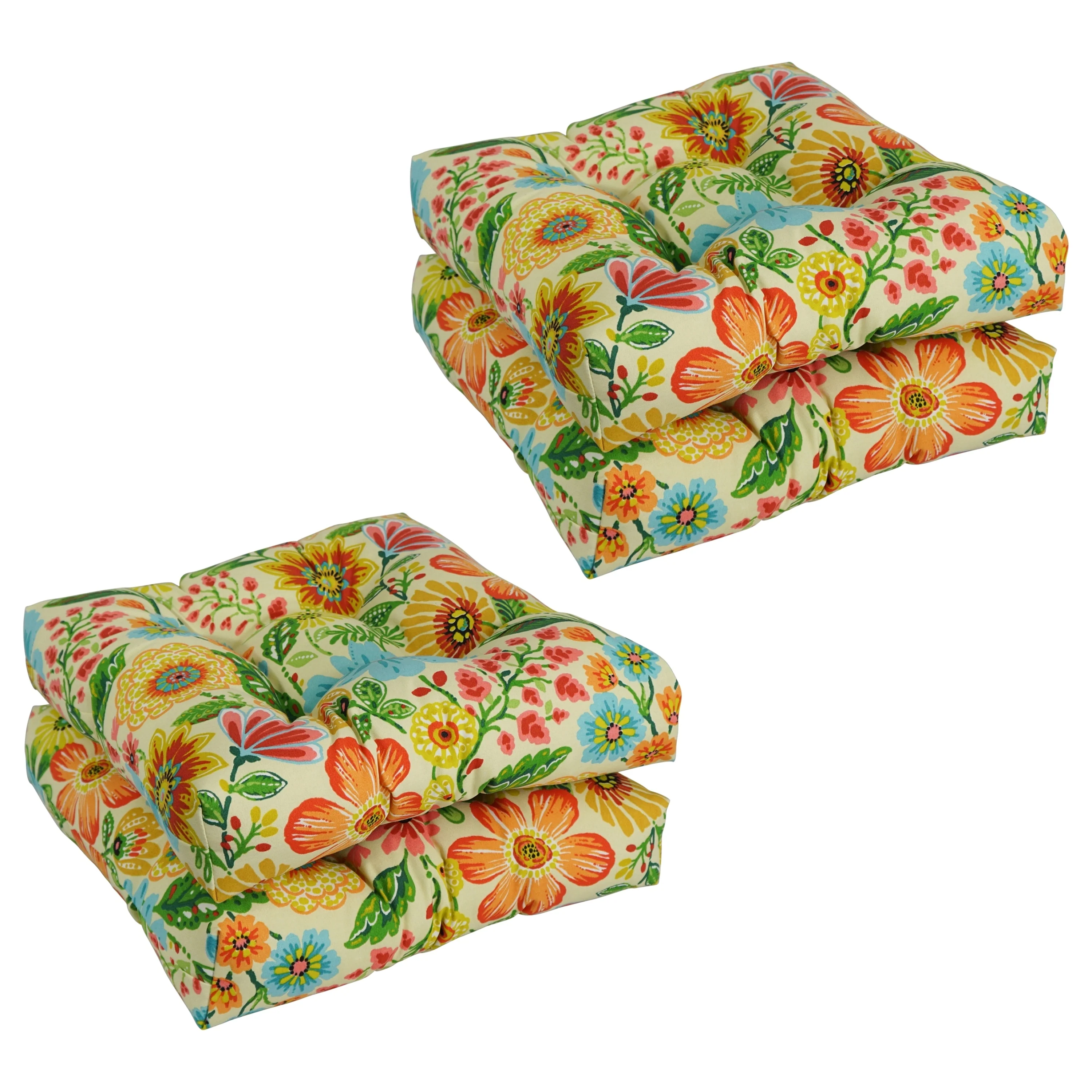 19-inch Square Tufted Indoor/Outdoor Chair Cushions (Set of 4) - 19" x 19"