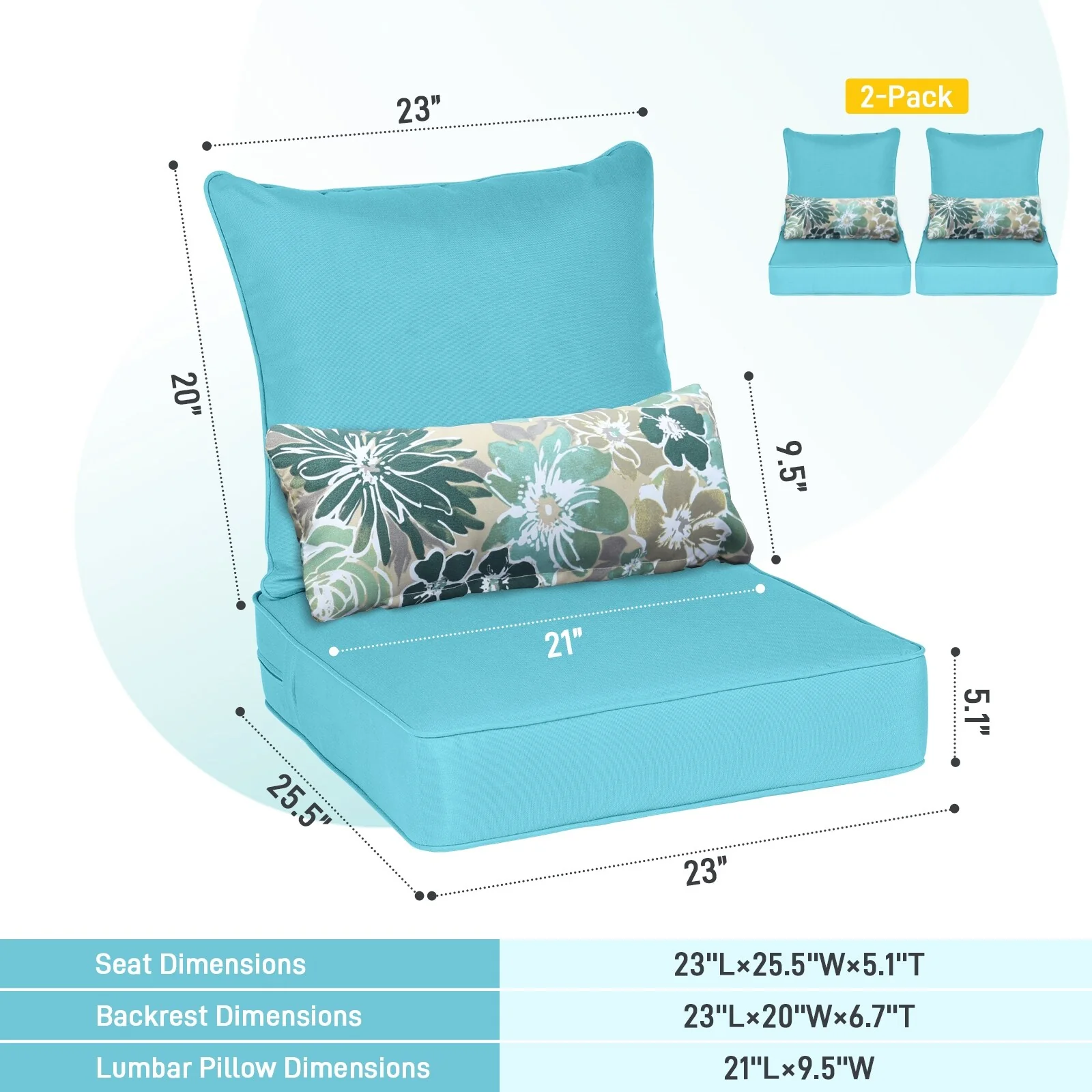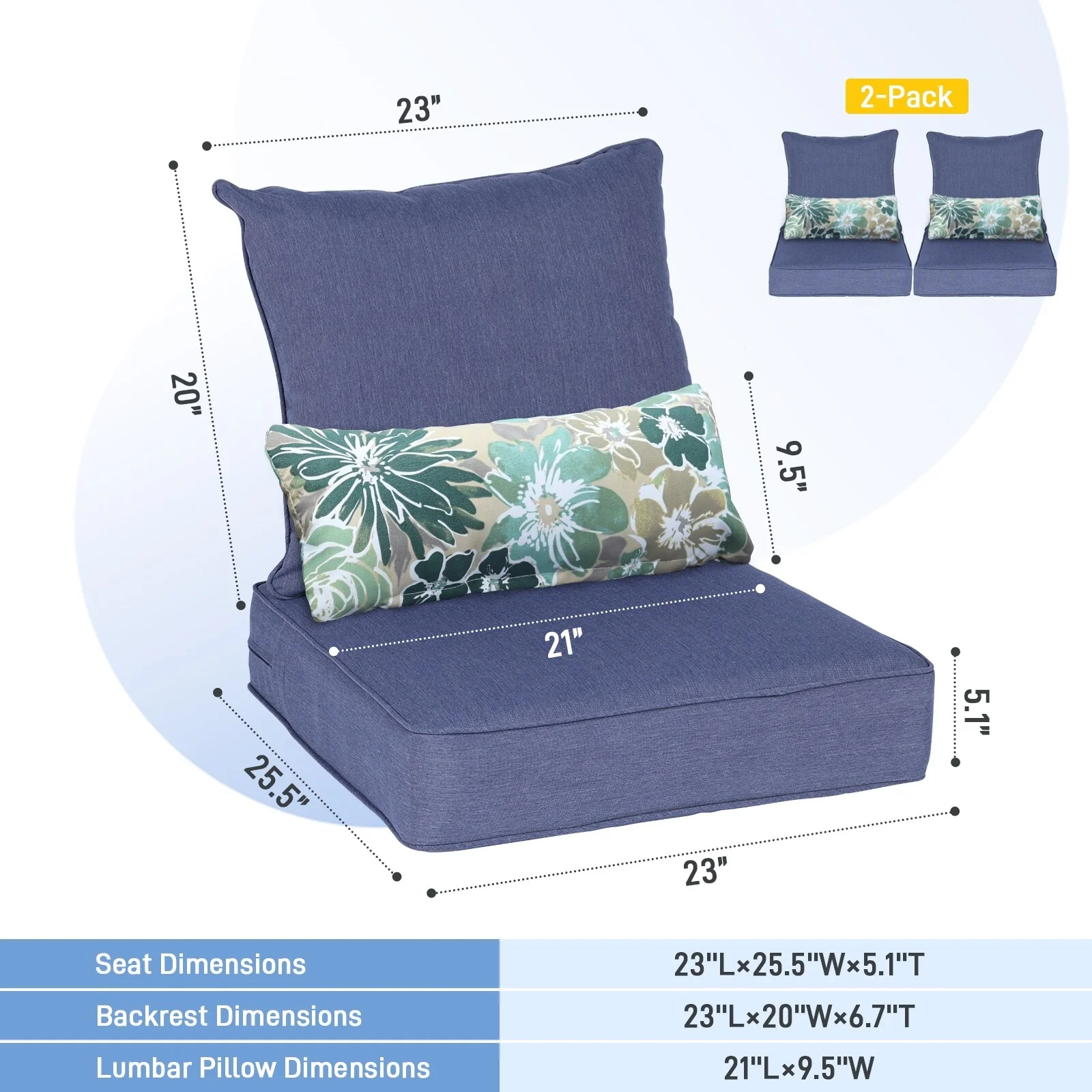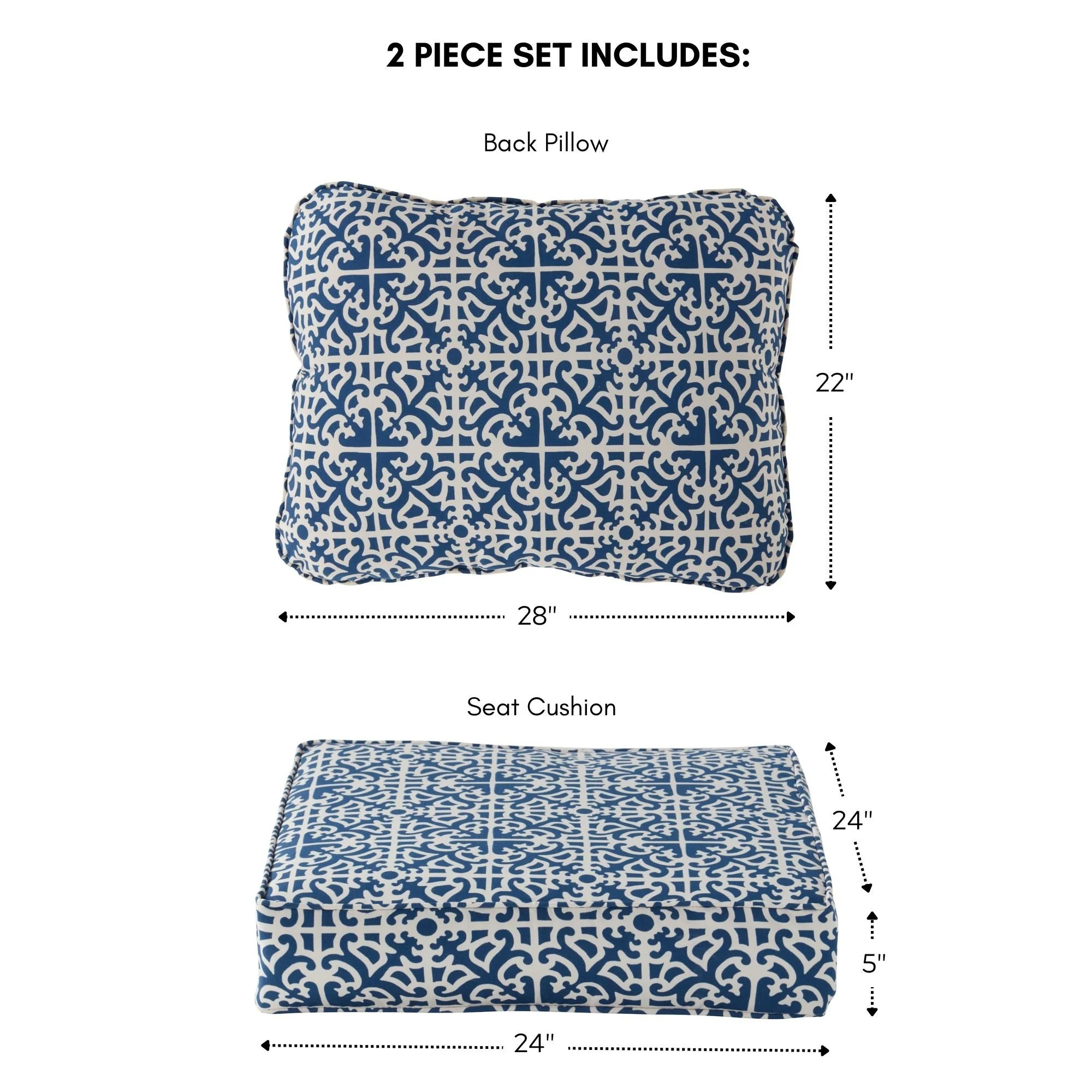 24" x 24" Outdoor Deep Seat Chair Cushion Set