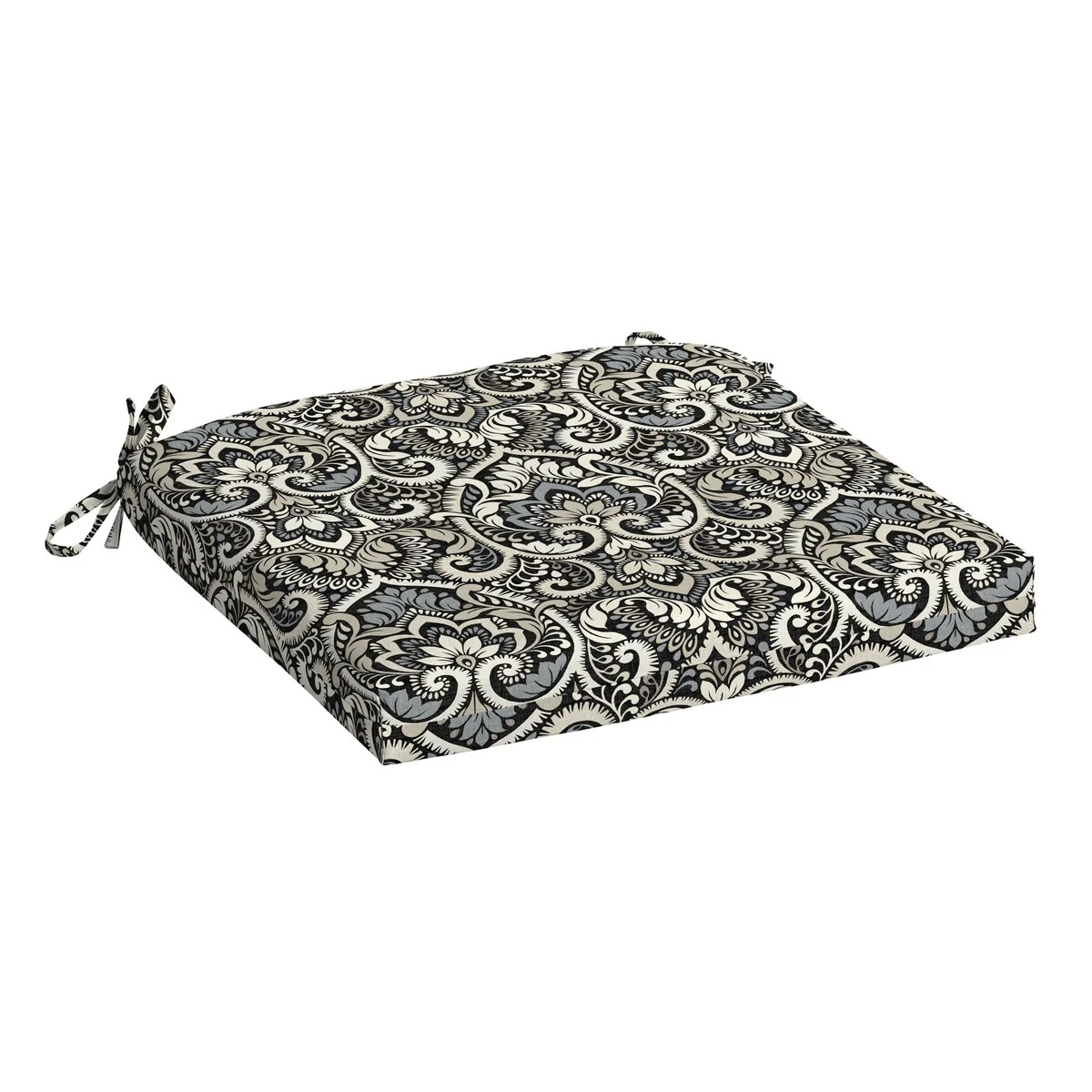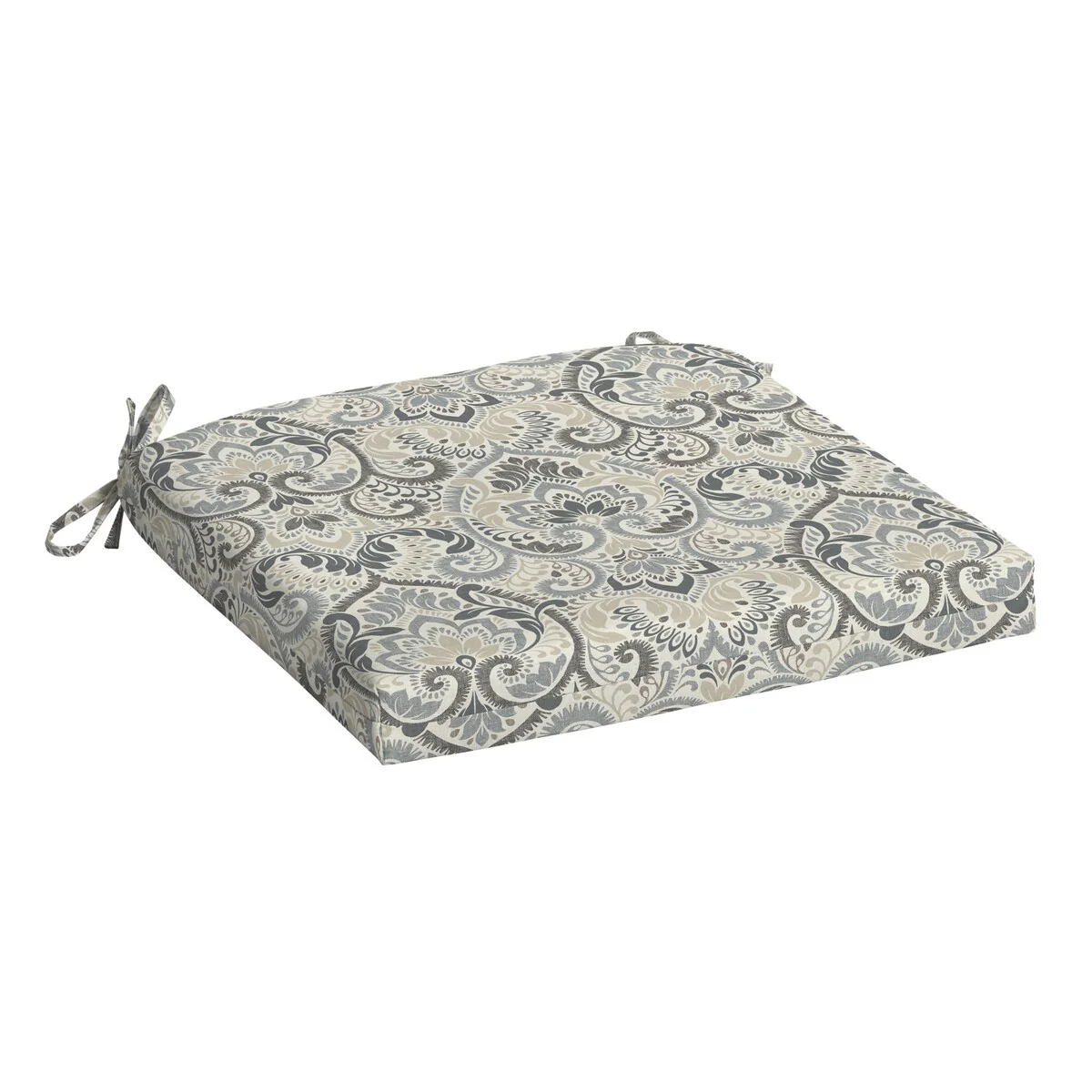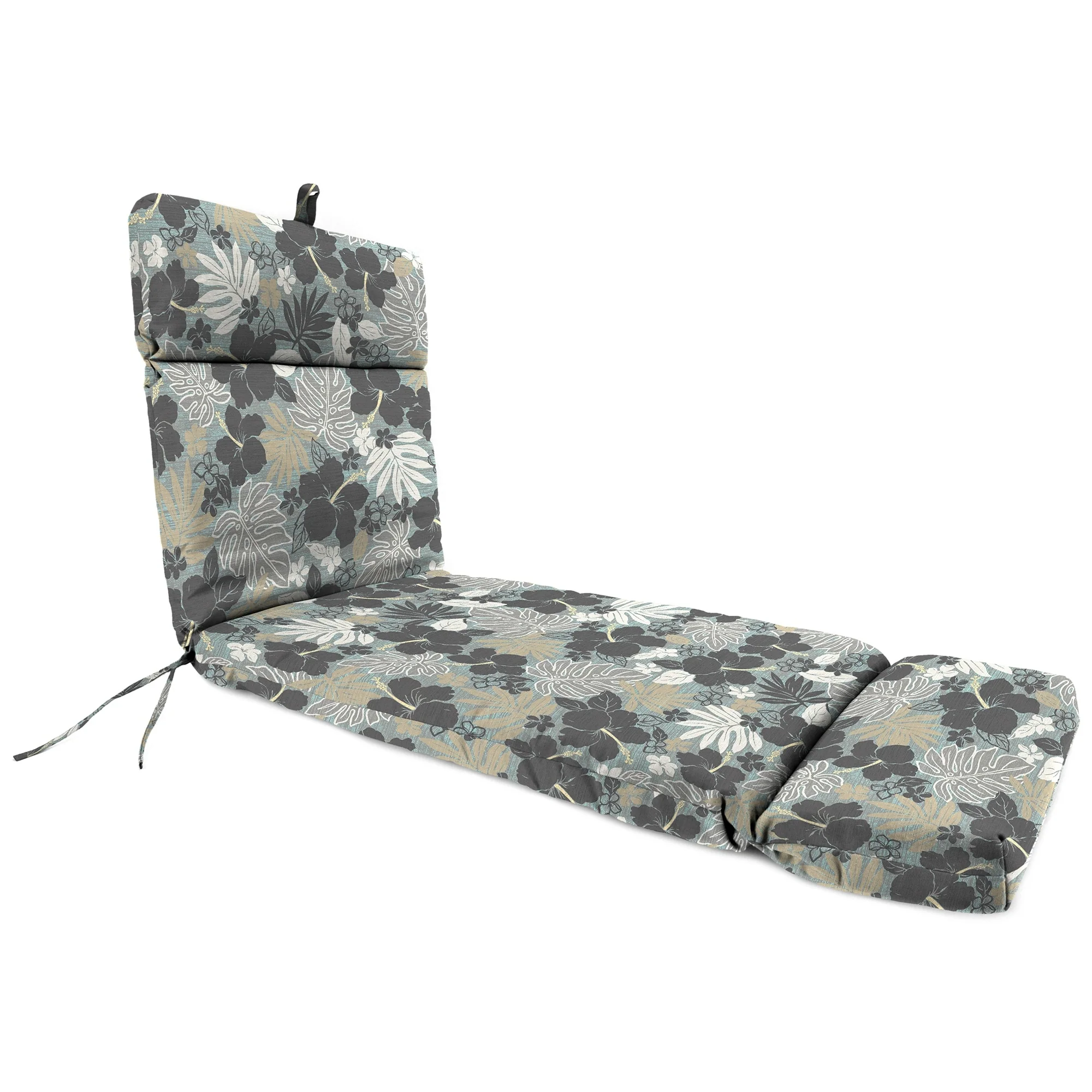 72" x 22" Grey Floral Outdoor Chaise Lounge Cushion with Ties and Loop - 72'' L x 22'' W x 3.5'' H