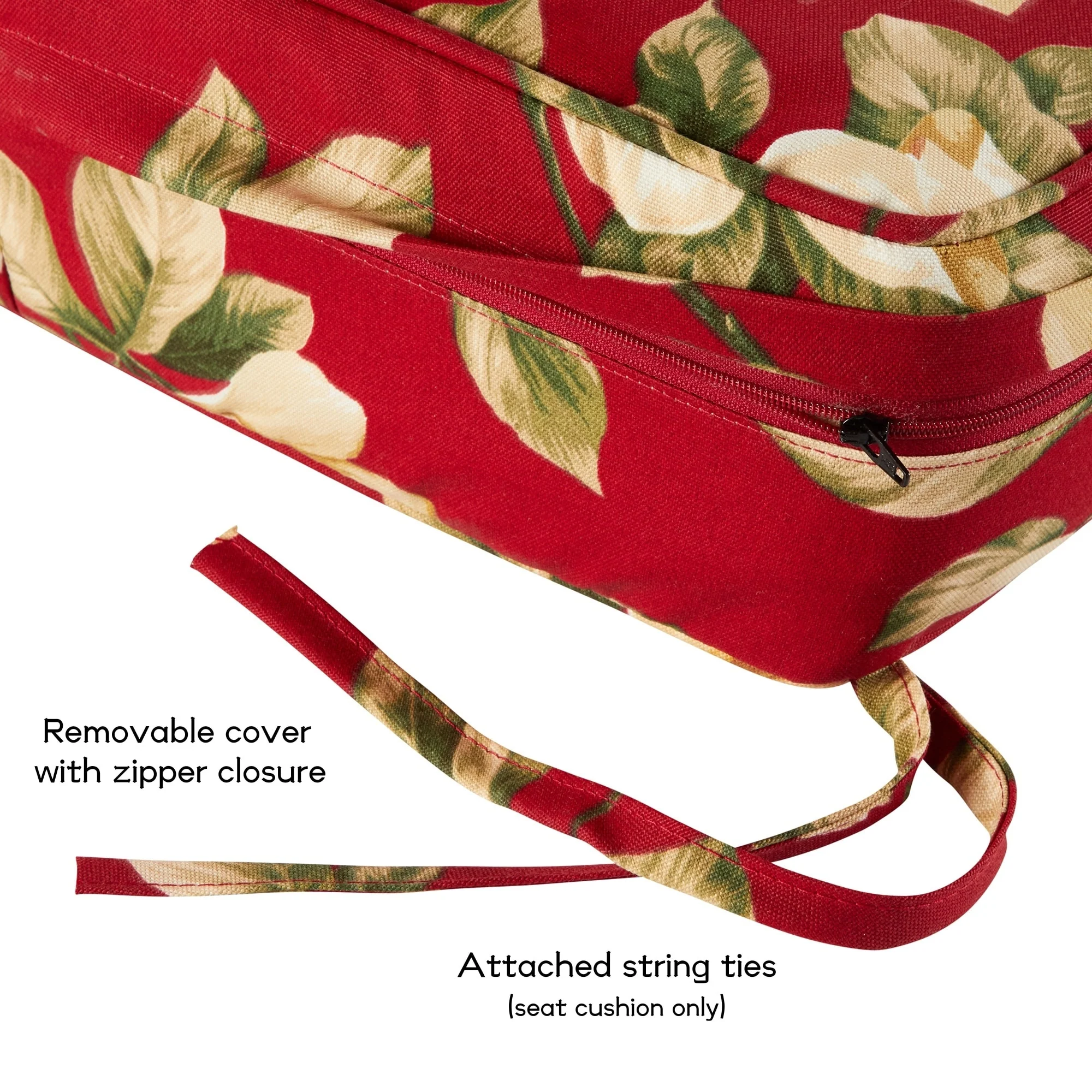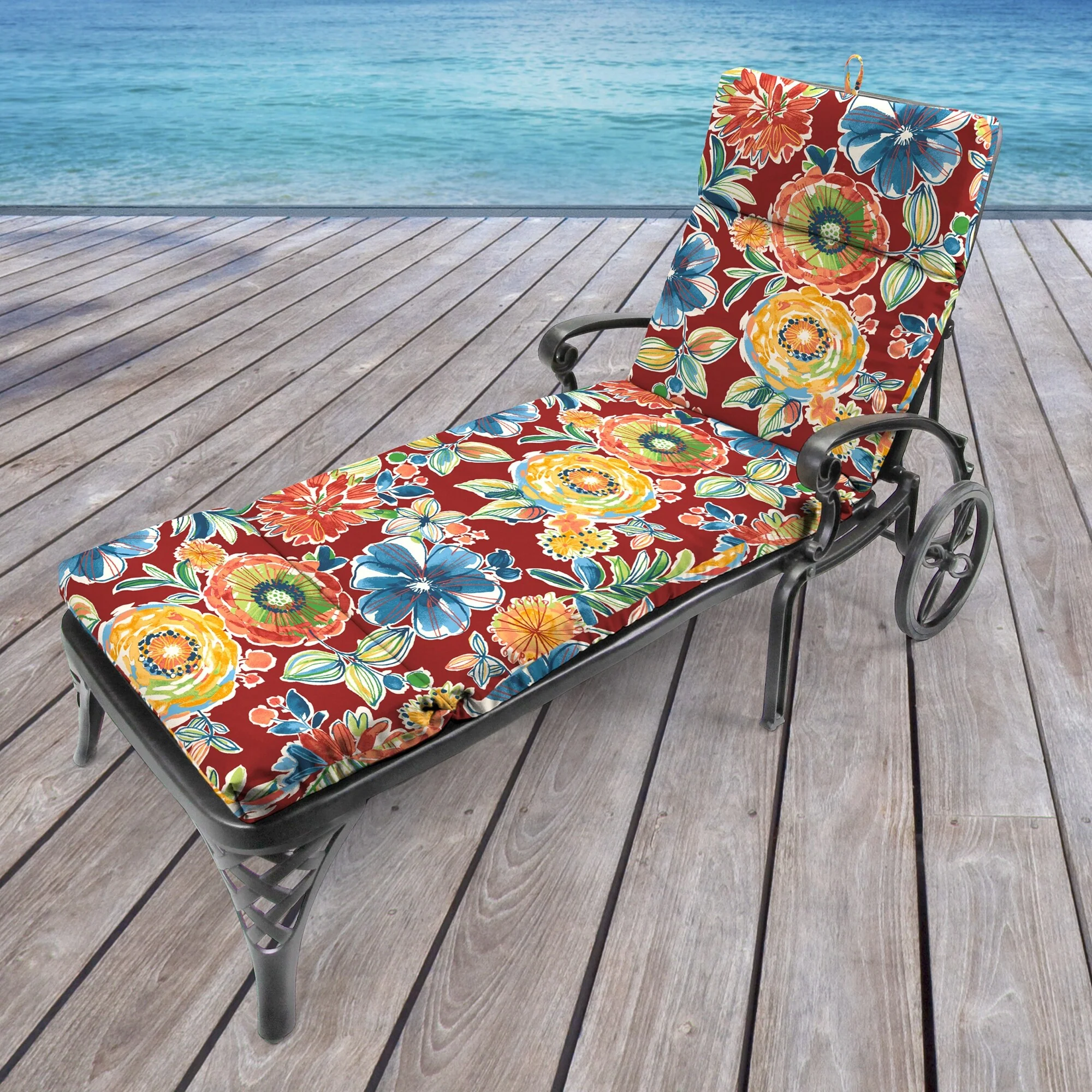 72" x 22" Red Floral Outdoor Chaise Lounge Cushion with Ties and Loop - 72'' L x 22'' W x 3.5'' H