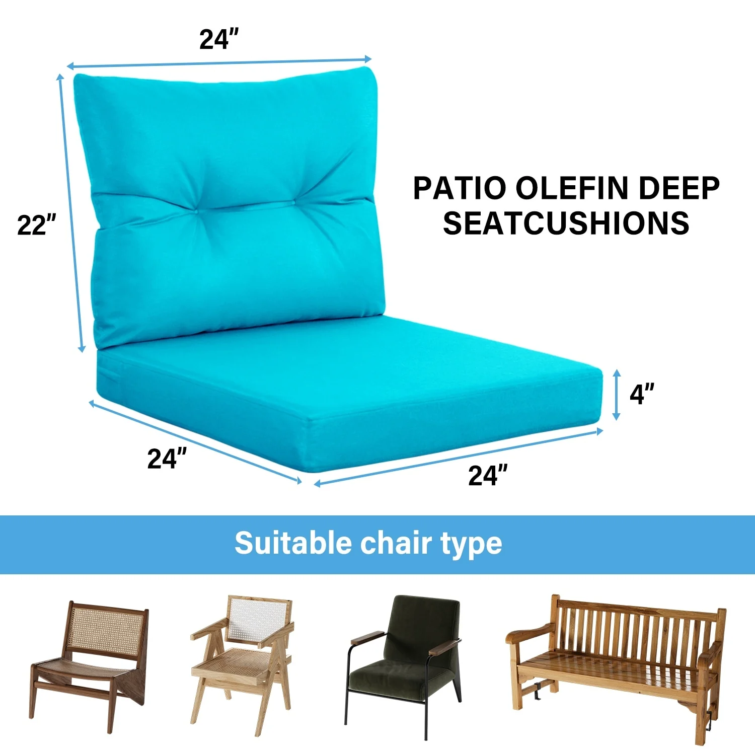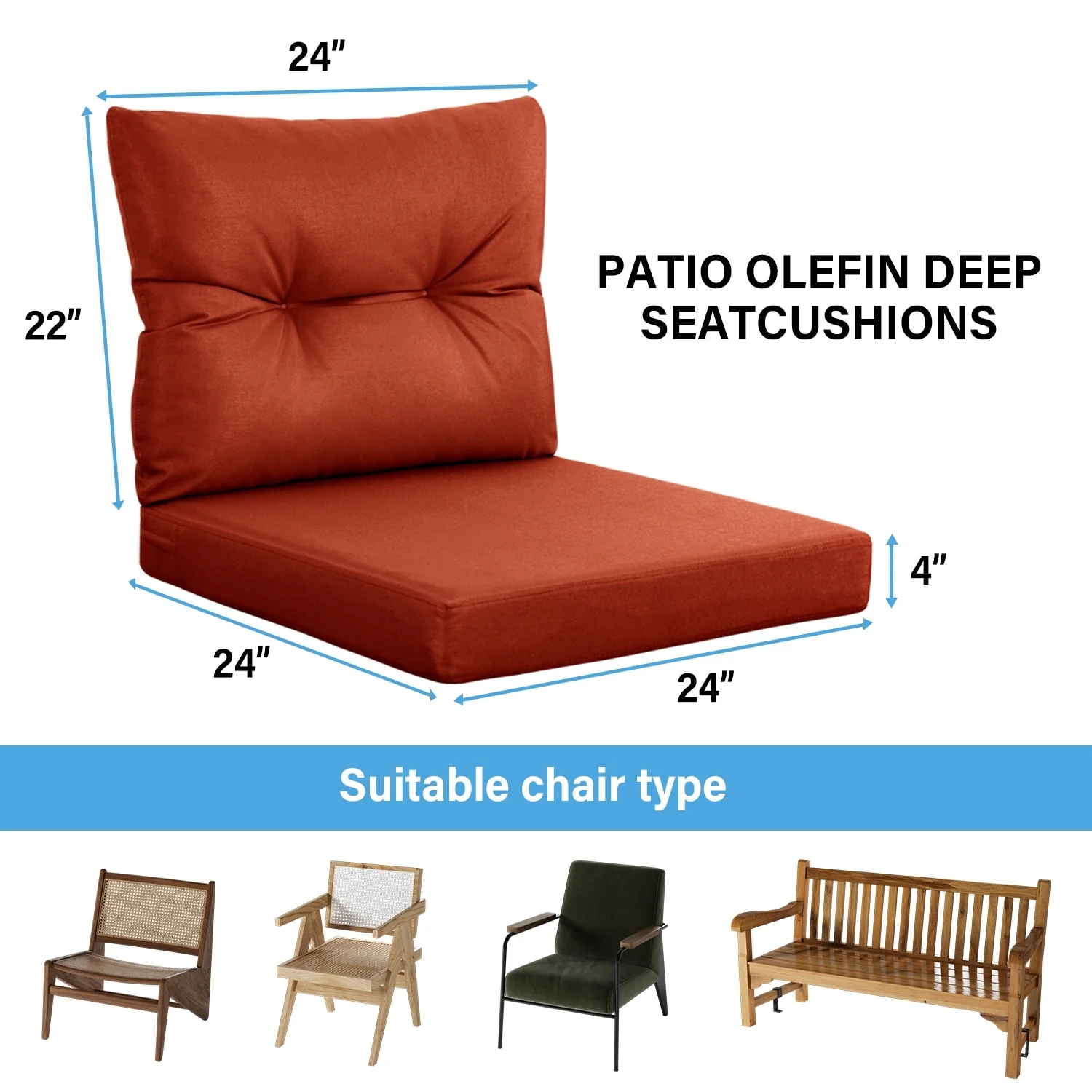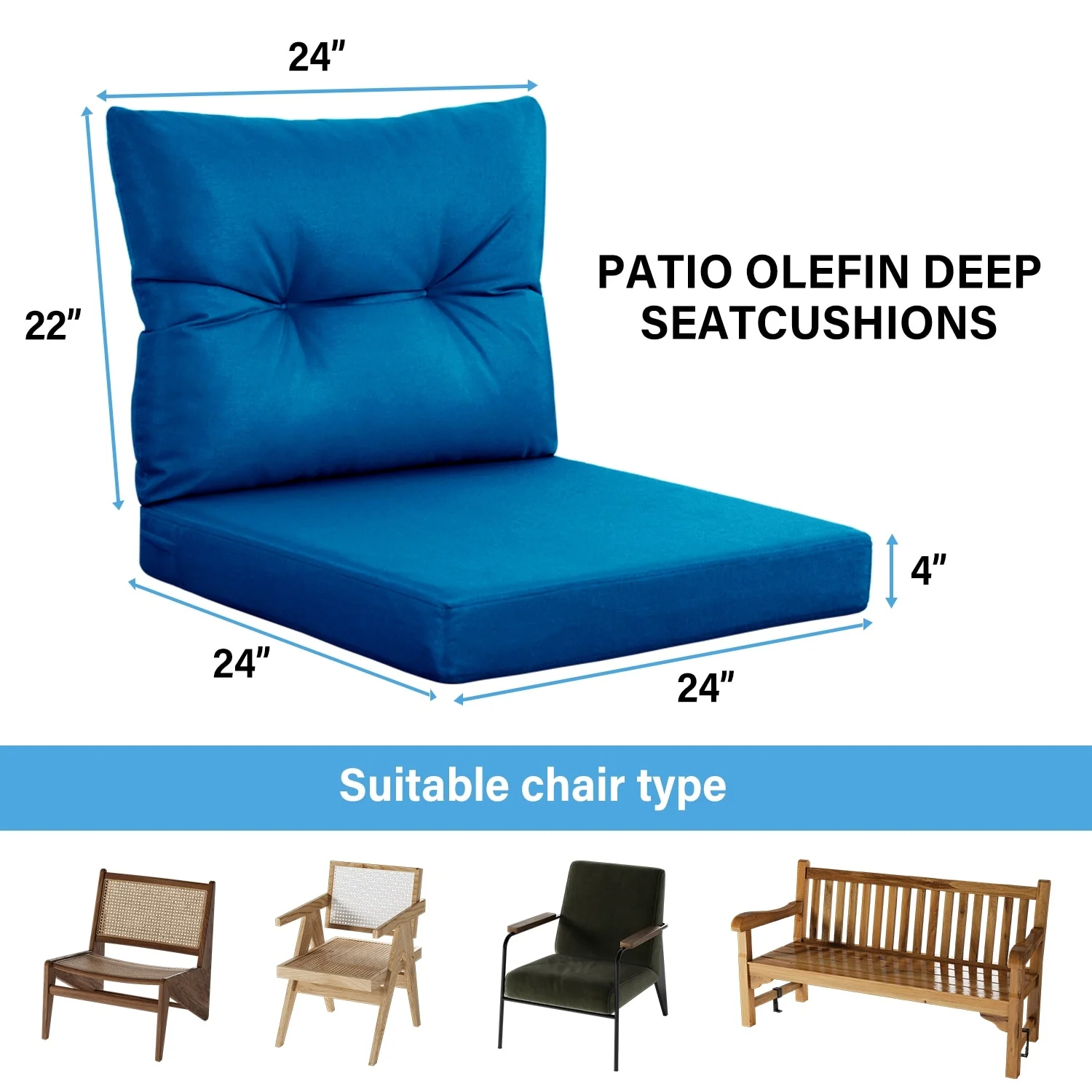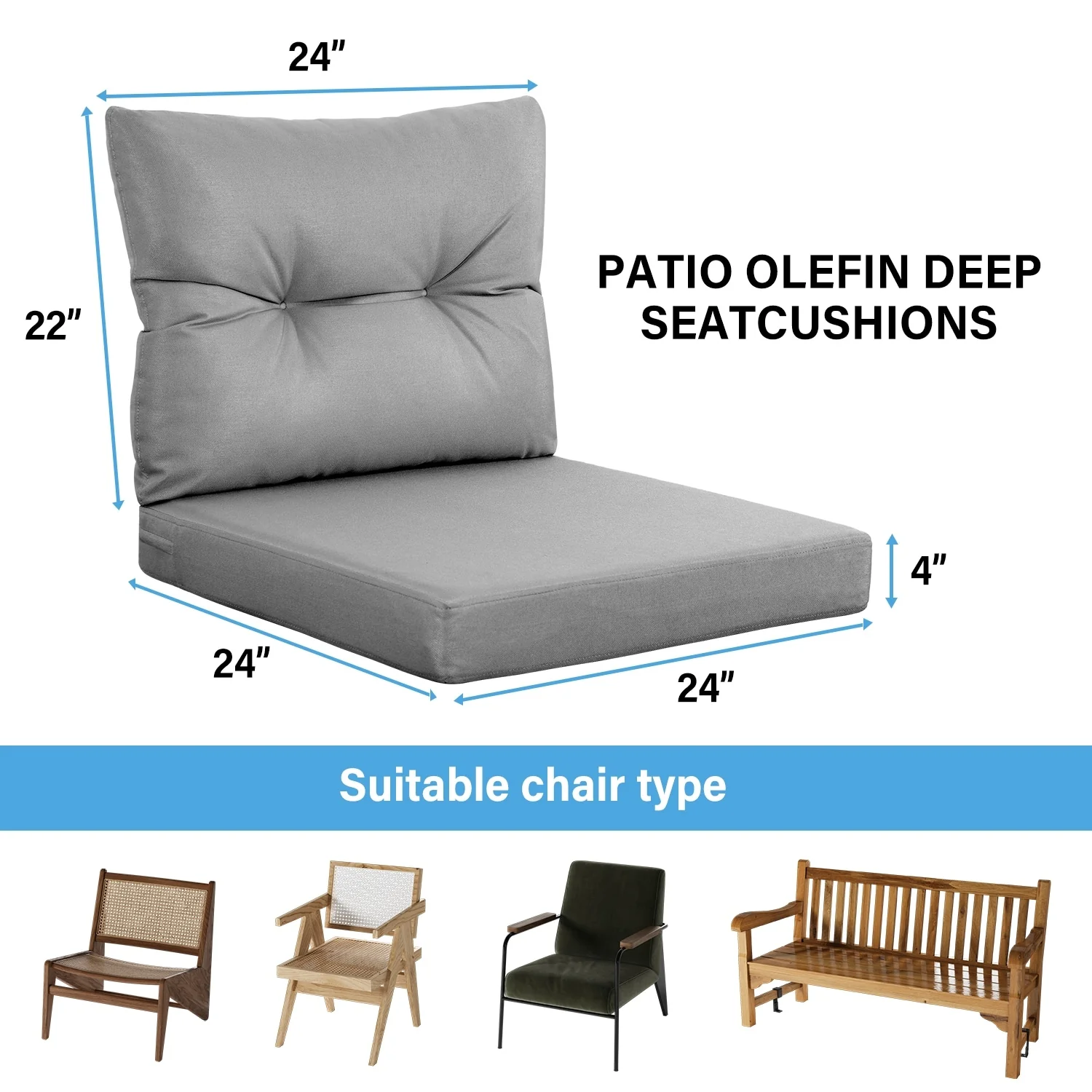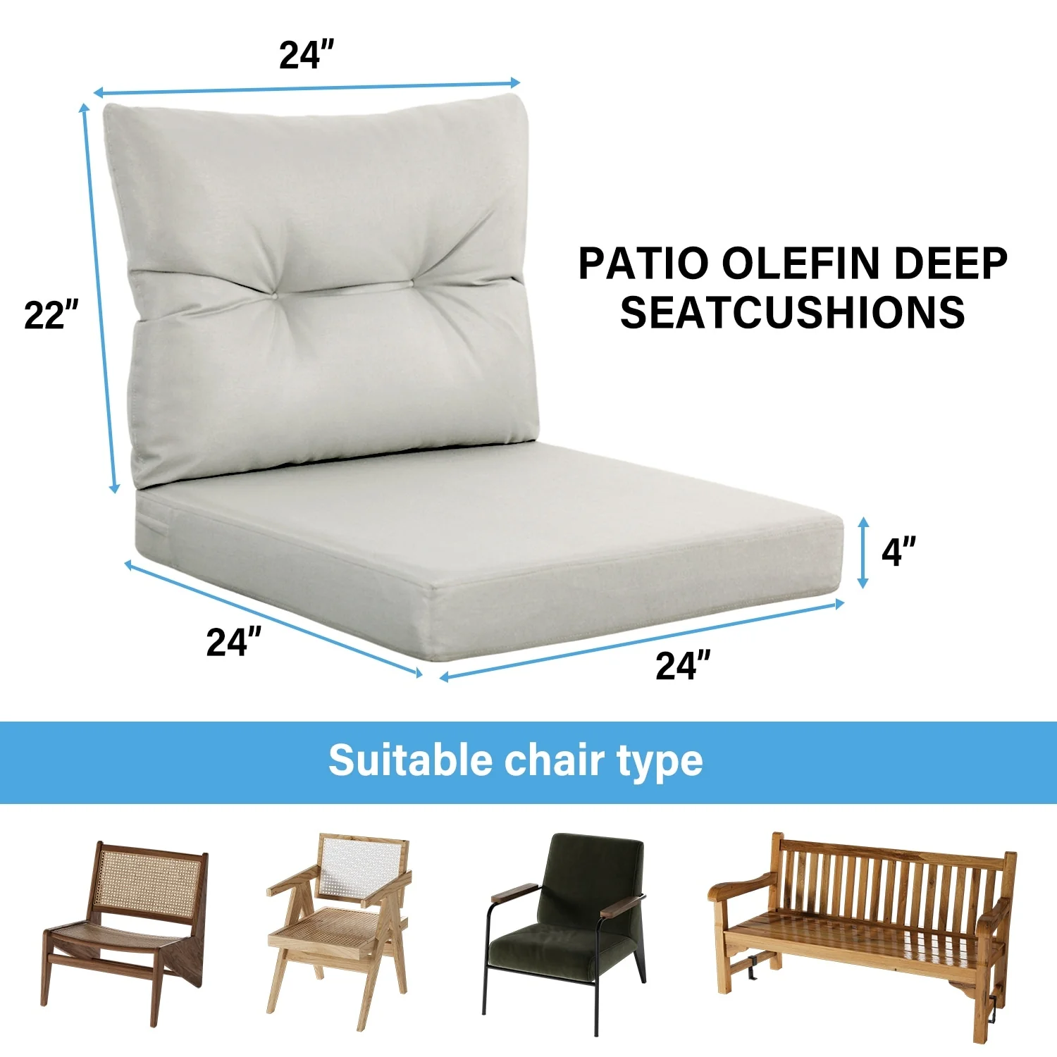 22 in x 24 in Outdoor Chair Deep Seat Replacement Cushion - N/A