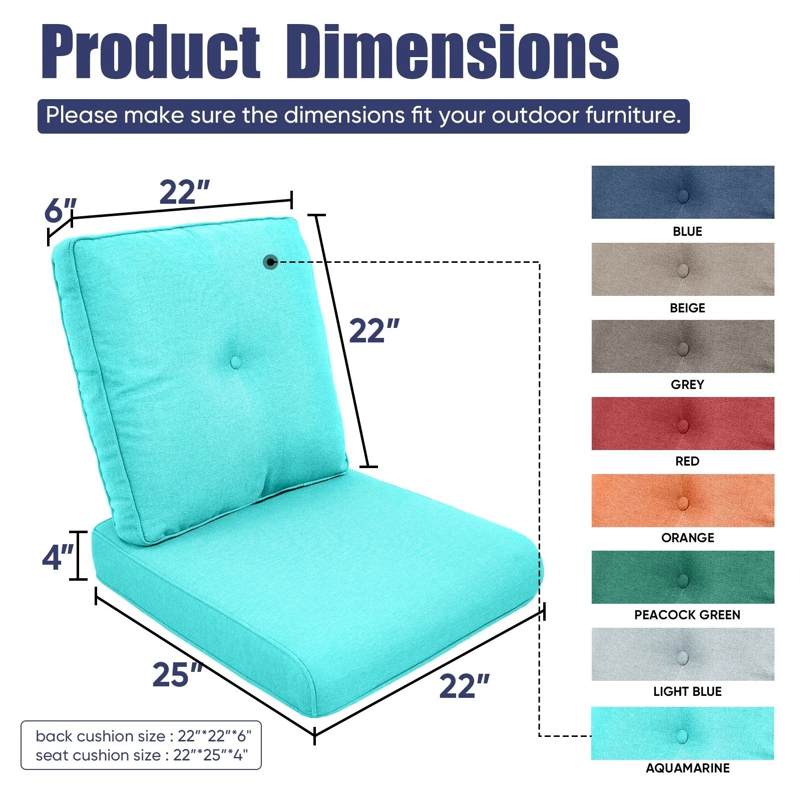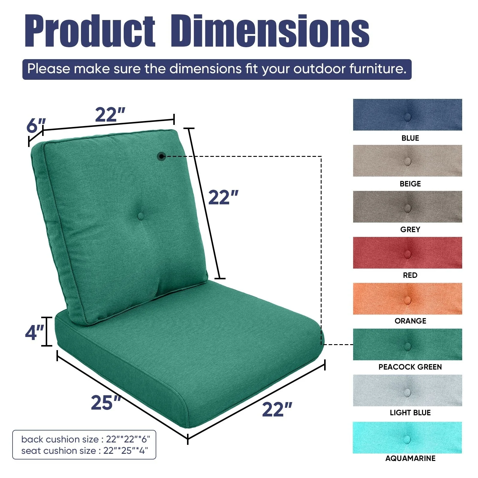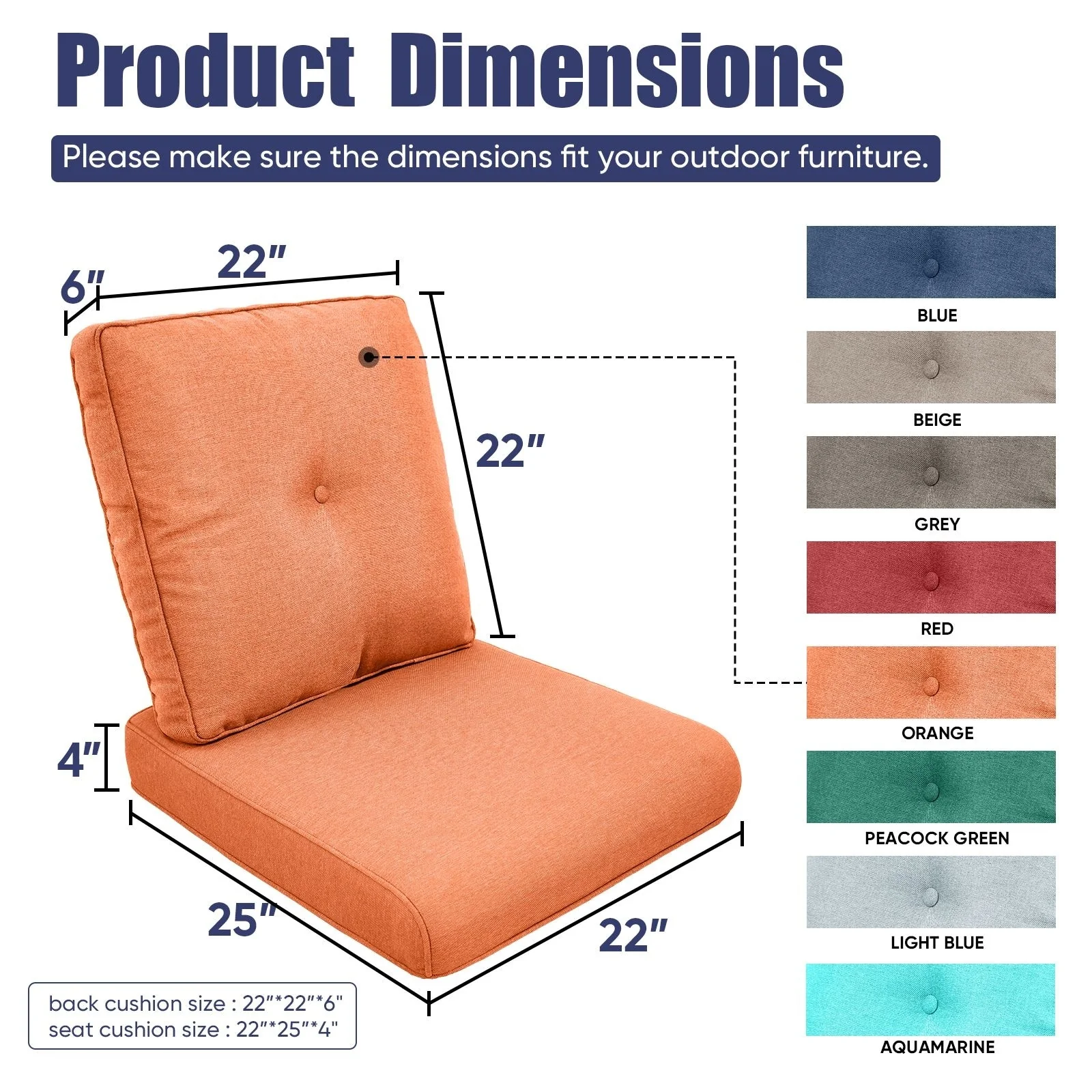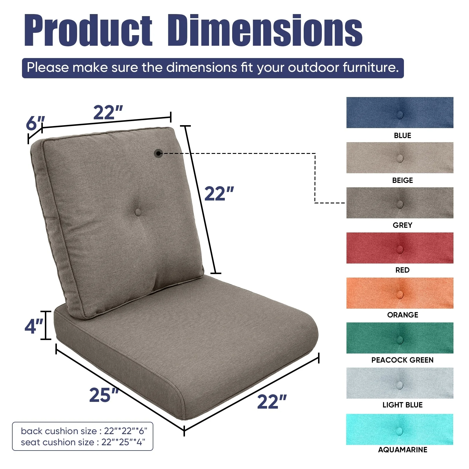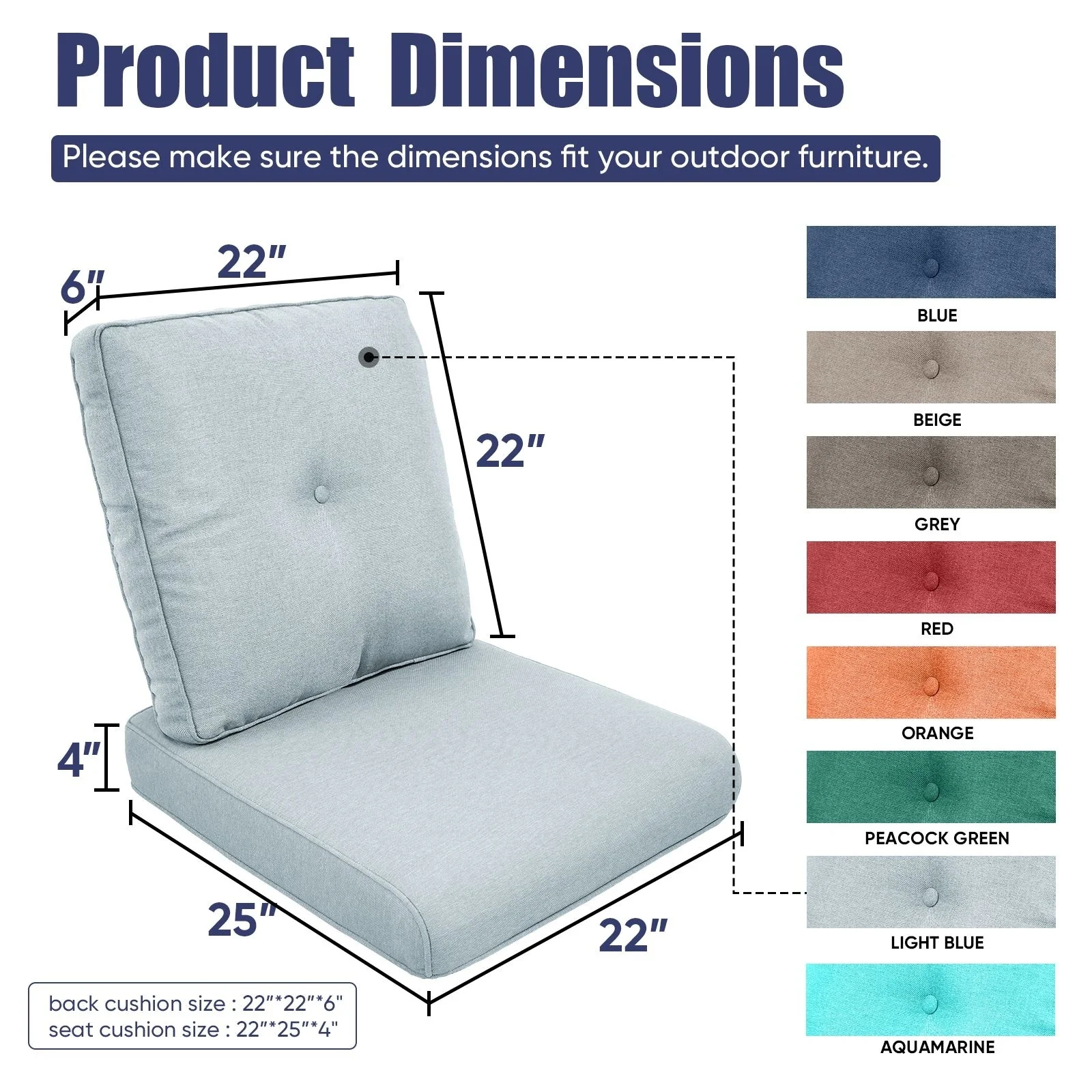 22 in x 24 in Outdoor Chair Deep Seat Replacement Cushion - N/A