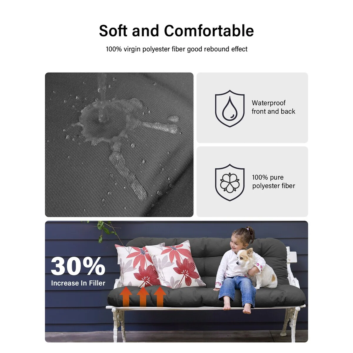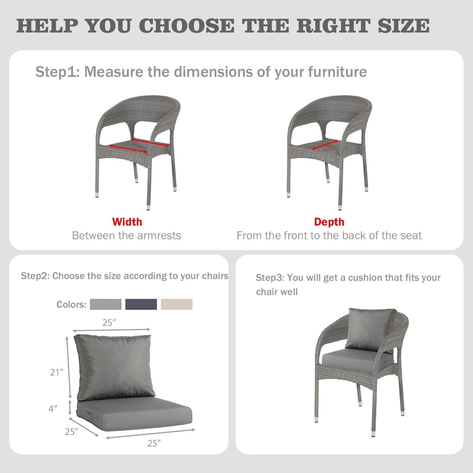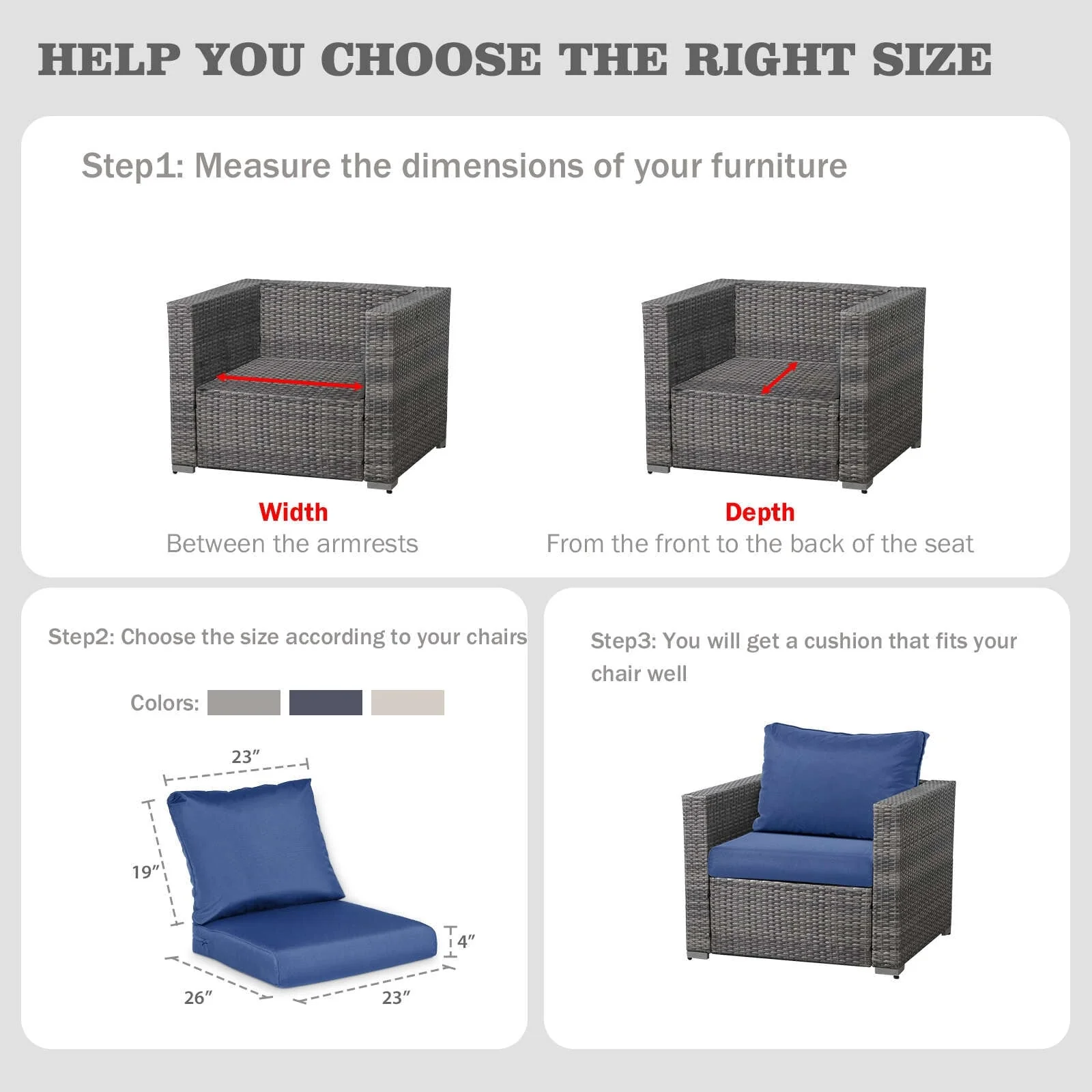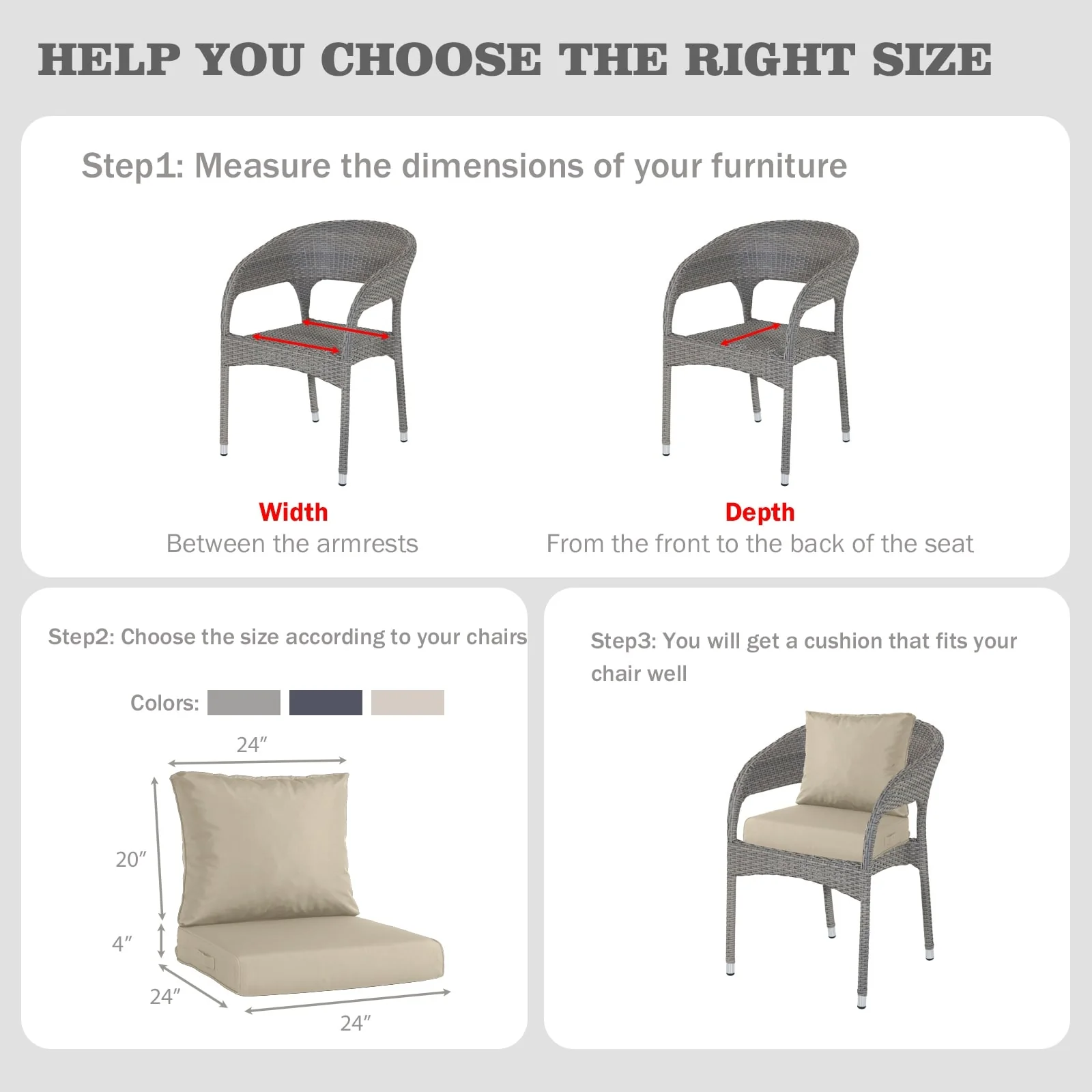 WINSOON 24x24 Inch Outdoor Deep Seat Cushion Set,Waterproof and Resistant