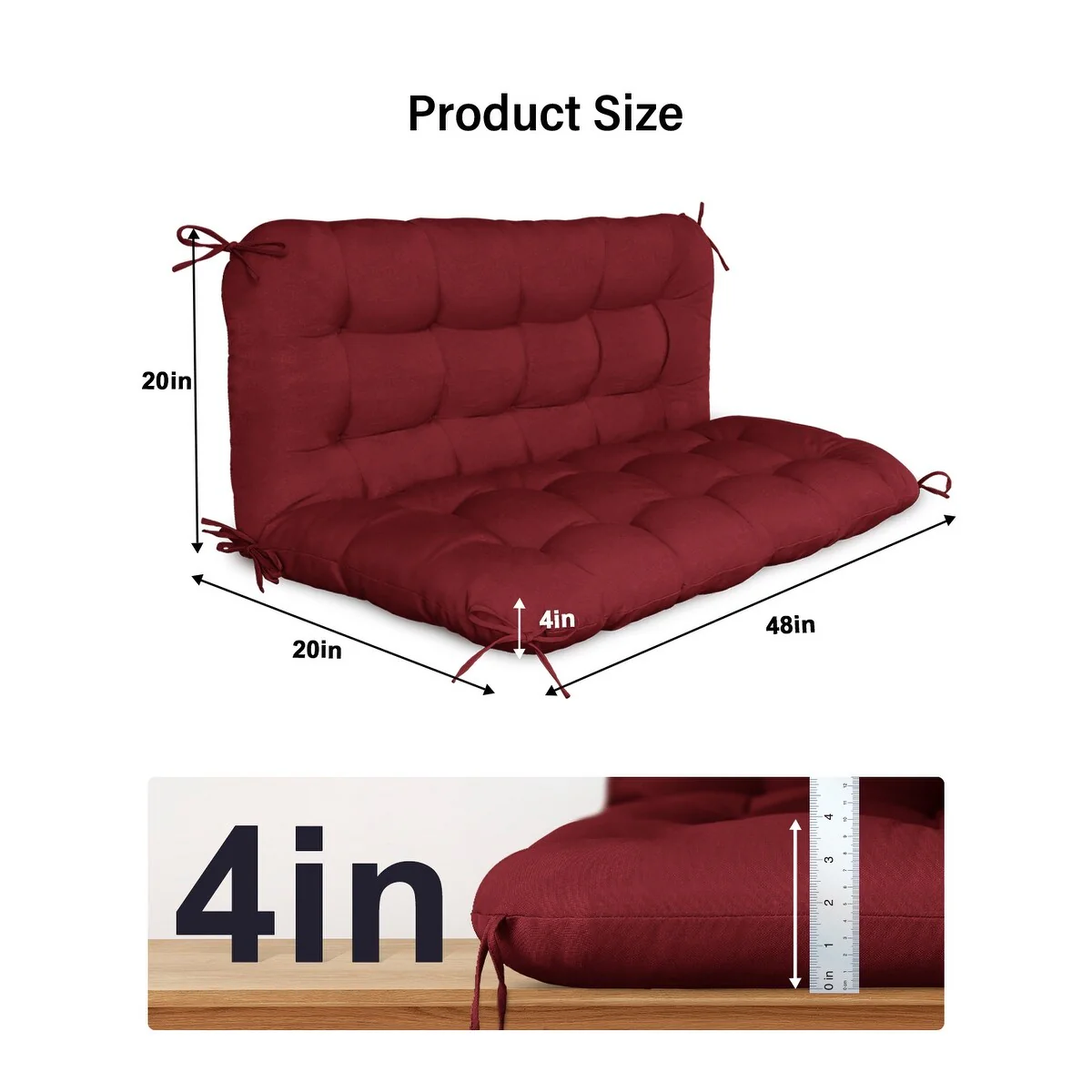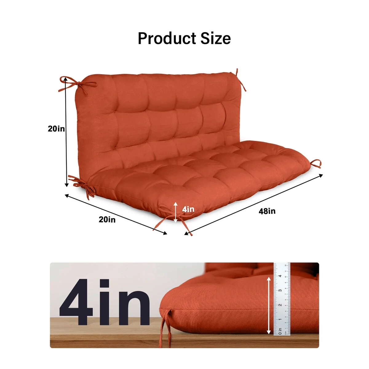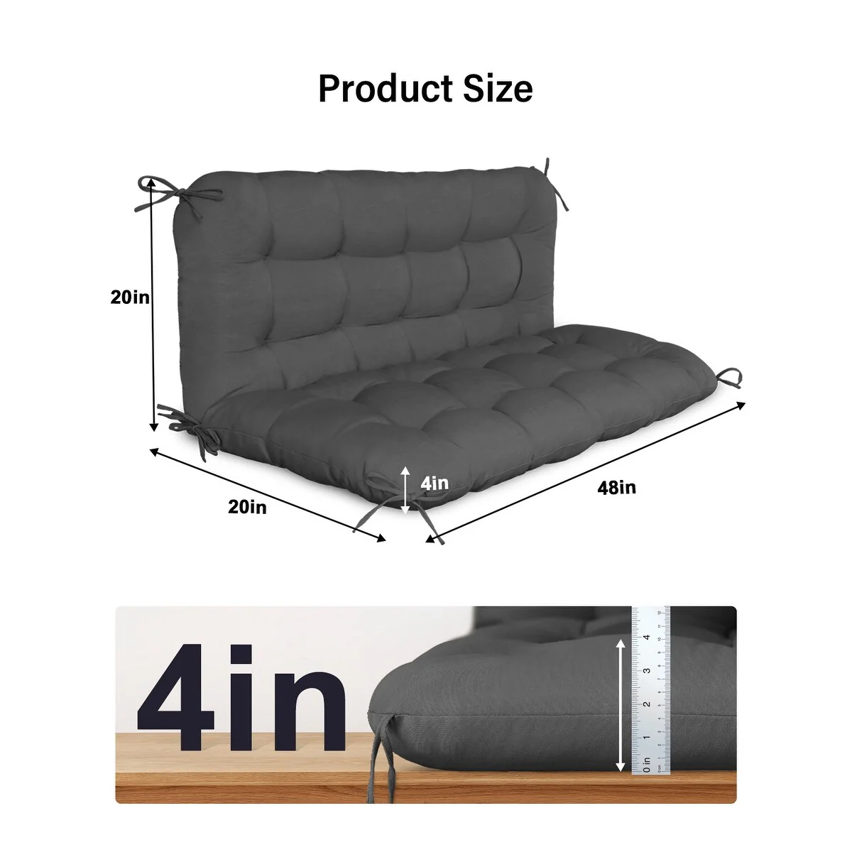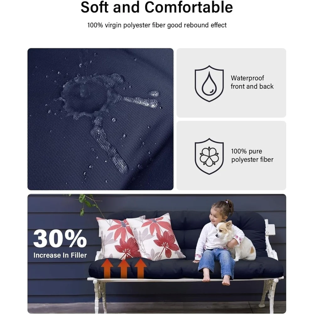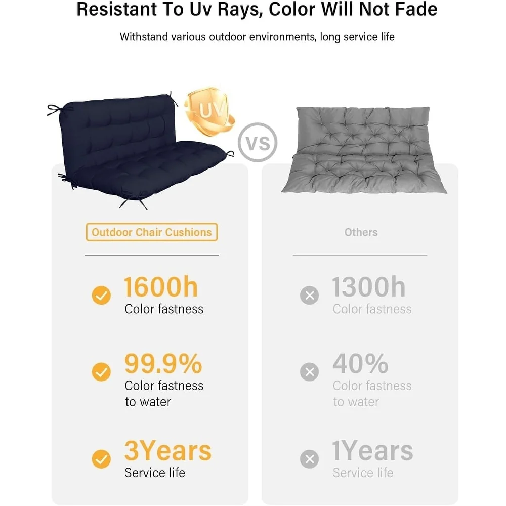 WINSOON 48x40x4 Inch Porch Swing Cushion, Outdoor Swing Bench Cushion with Backrest, Waterproof Bench Cushion