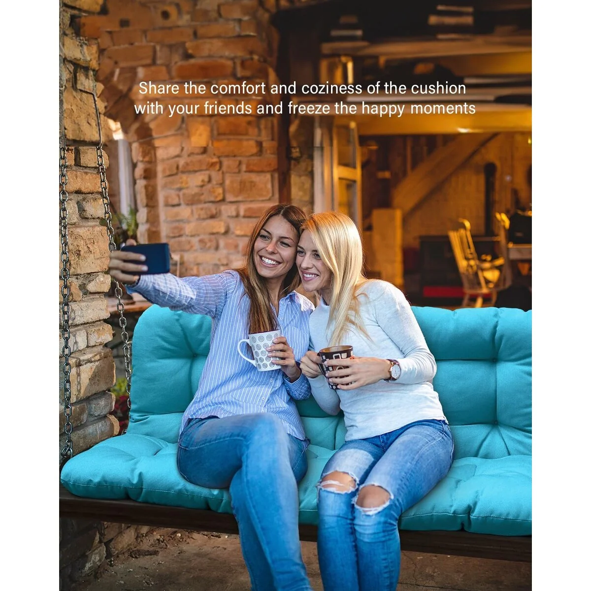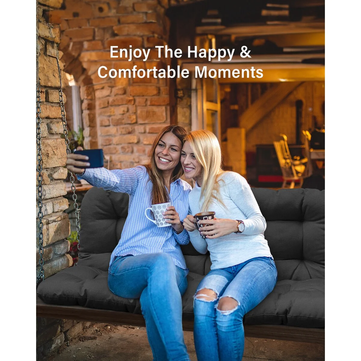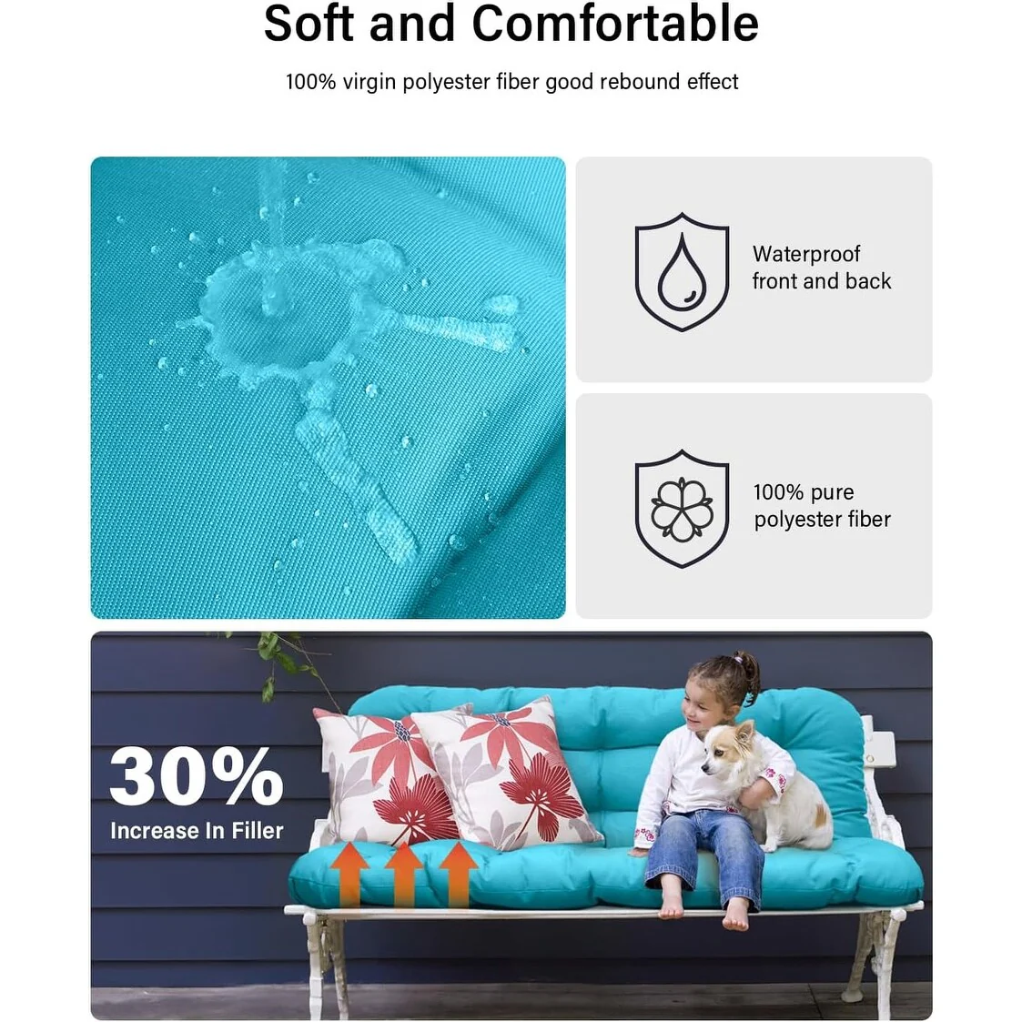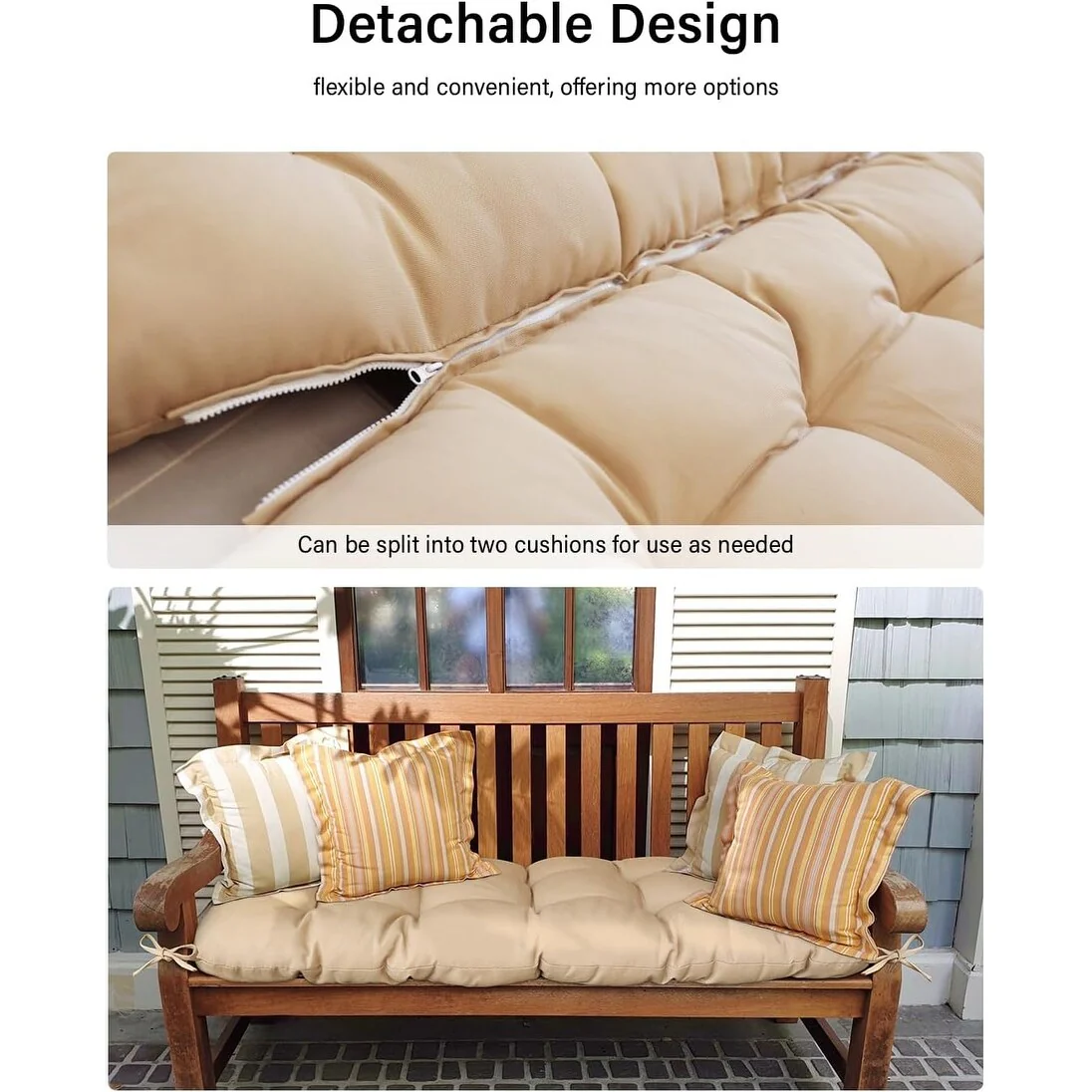 WINSOON 48x40x4 Inch Porch Swing Cushion, Outdoor Swing Bench Cushion with Backrest, Waterproof Bench Cushion