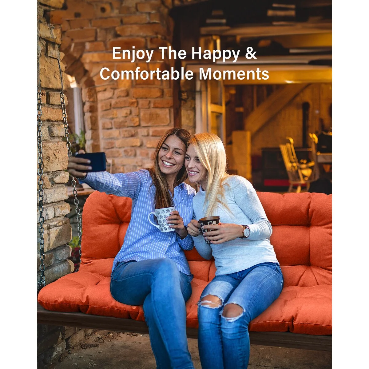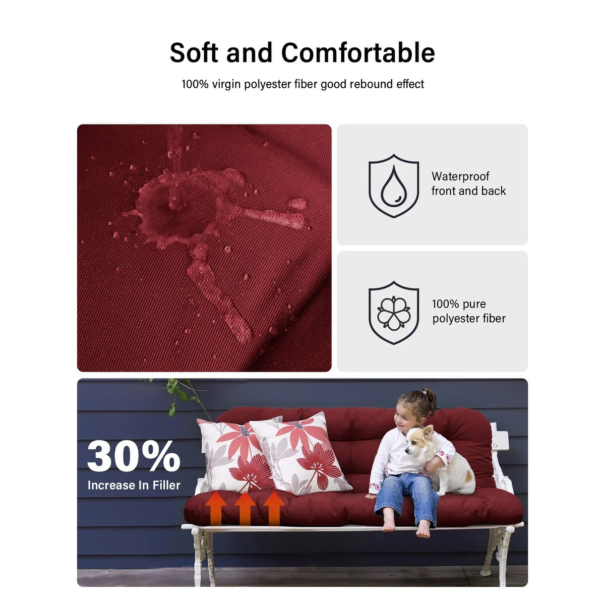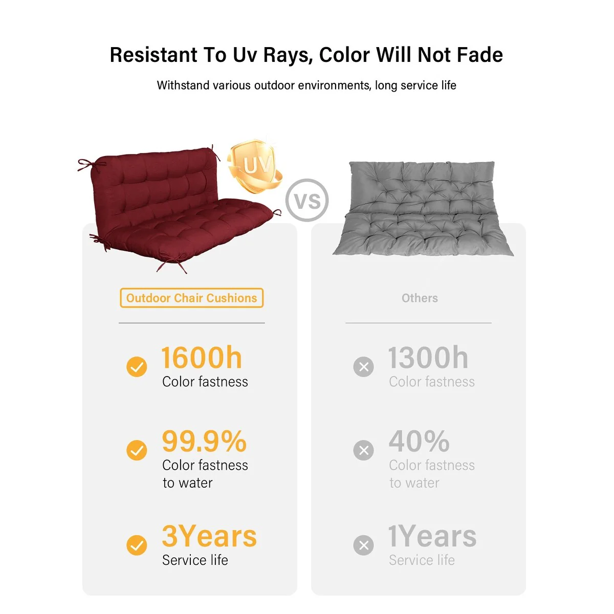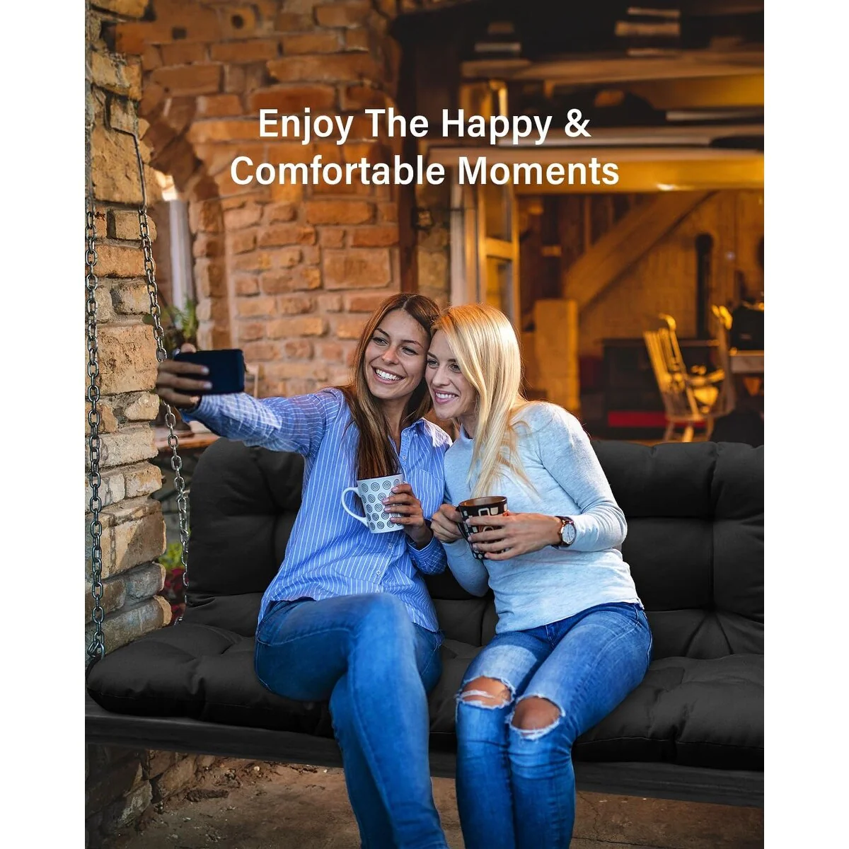 WINSOON 48x40x4 Inch Porch Swing Cushion, Outdoor Swing Bench Cushion with Backrest, Waterproof Bench Cushion
