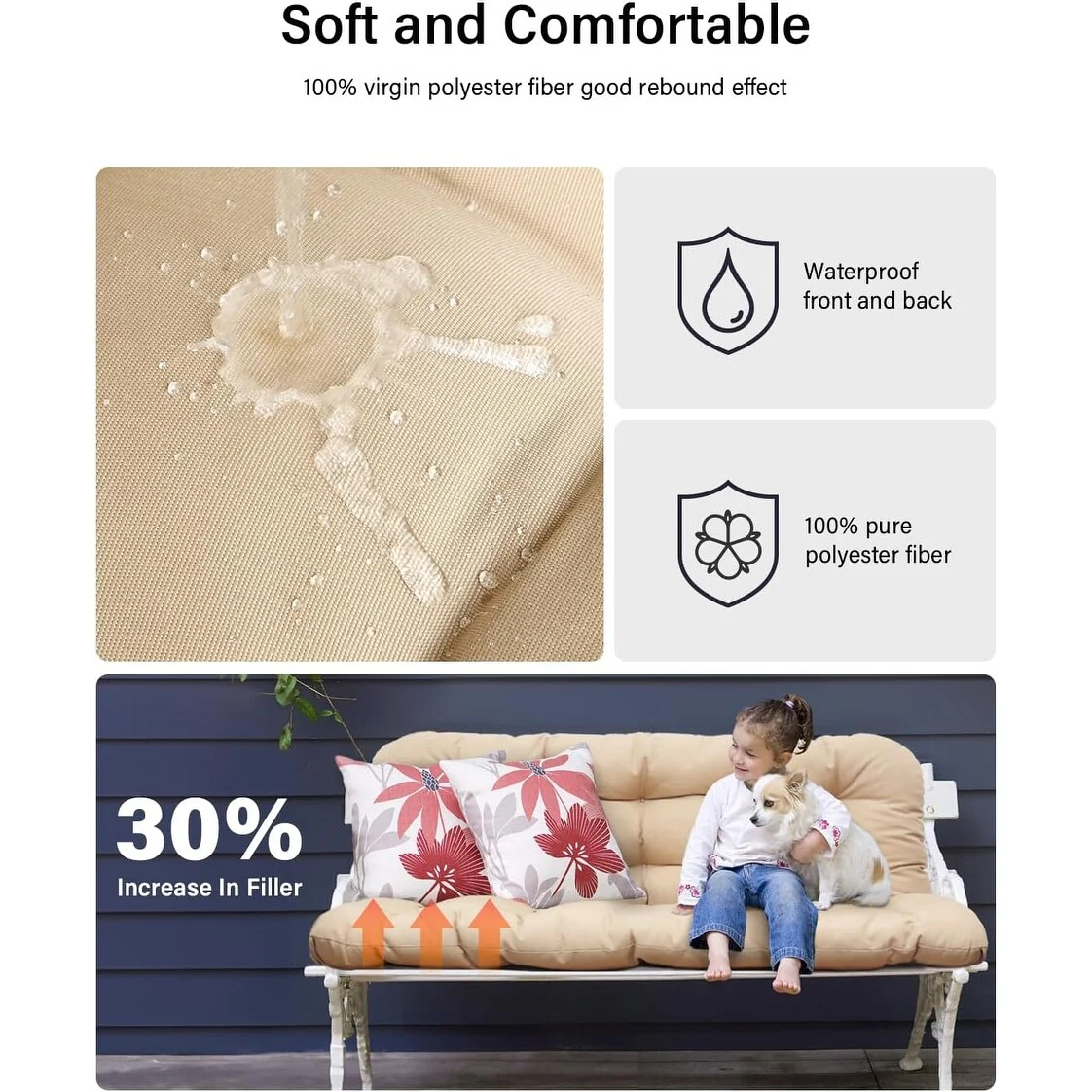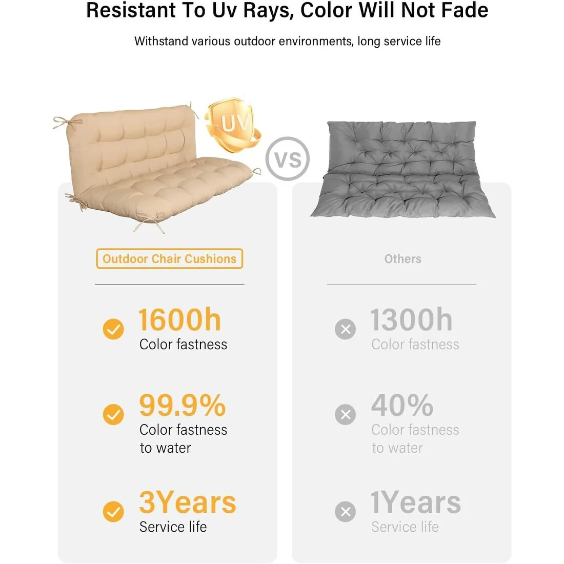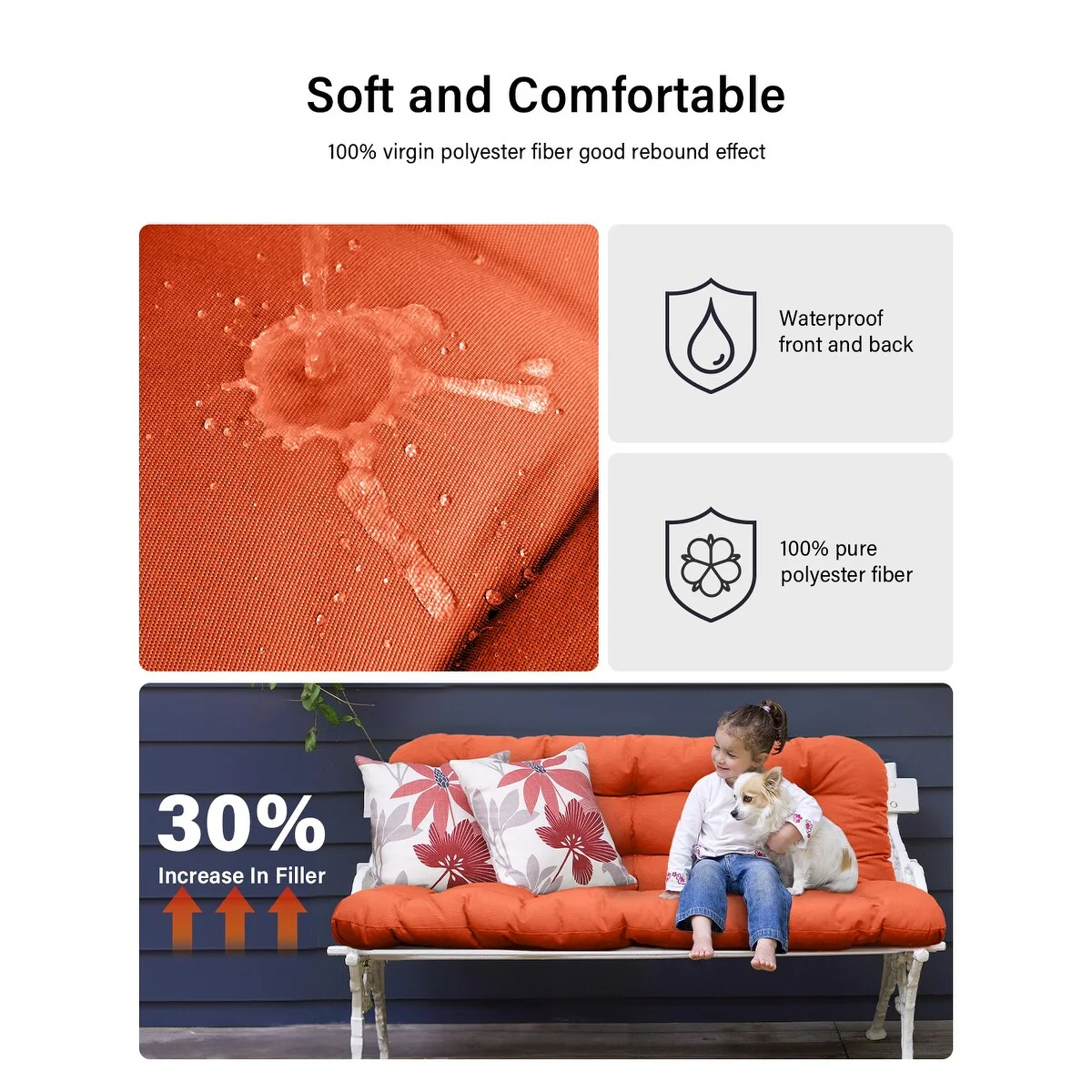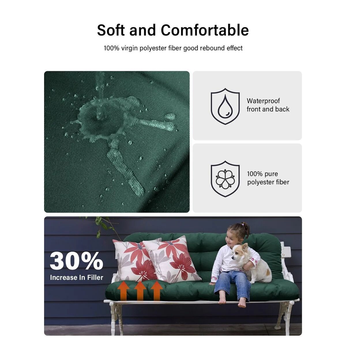 WINSOON 48x40x4 Inch Porch Swing Cushion, Outdoor Swing Bench Cushion with Backrest, Waterproof Bench Cushion