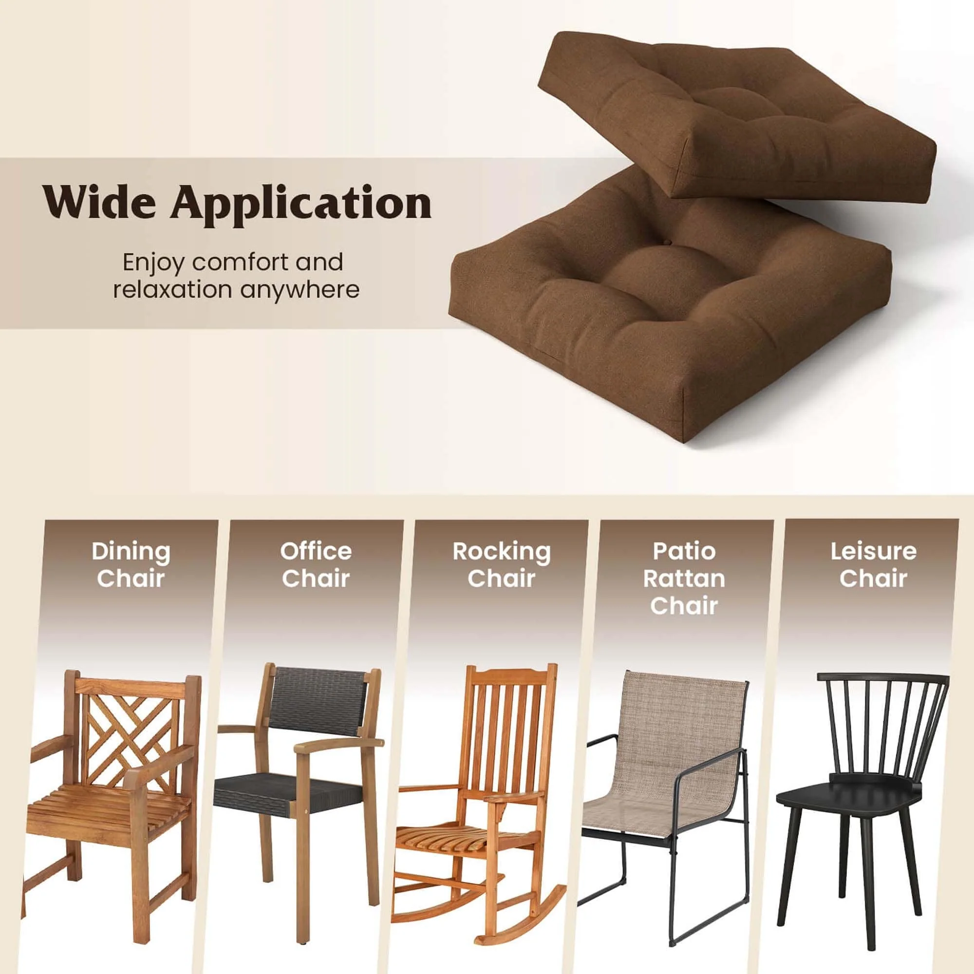 Costway 2 PCS 21'' x 21'' Patio Chair Seat Cushion Pads Indoor/Outdoor