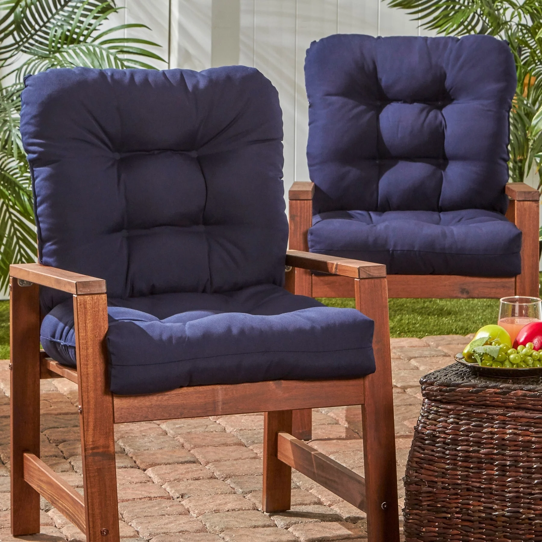 19-inch Rounded Back Indoor/Outdoor Chair Cushions (Set of 2) - 19" x 19"