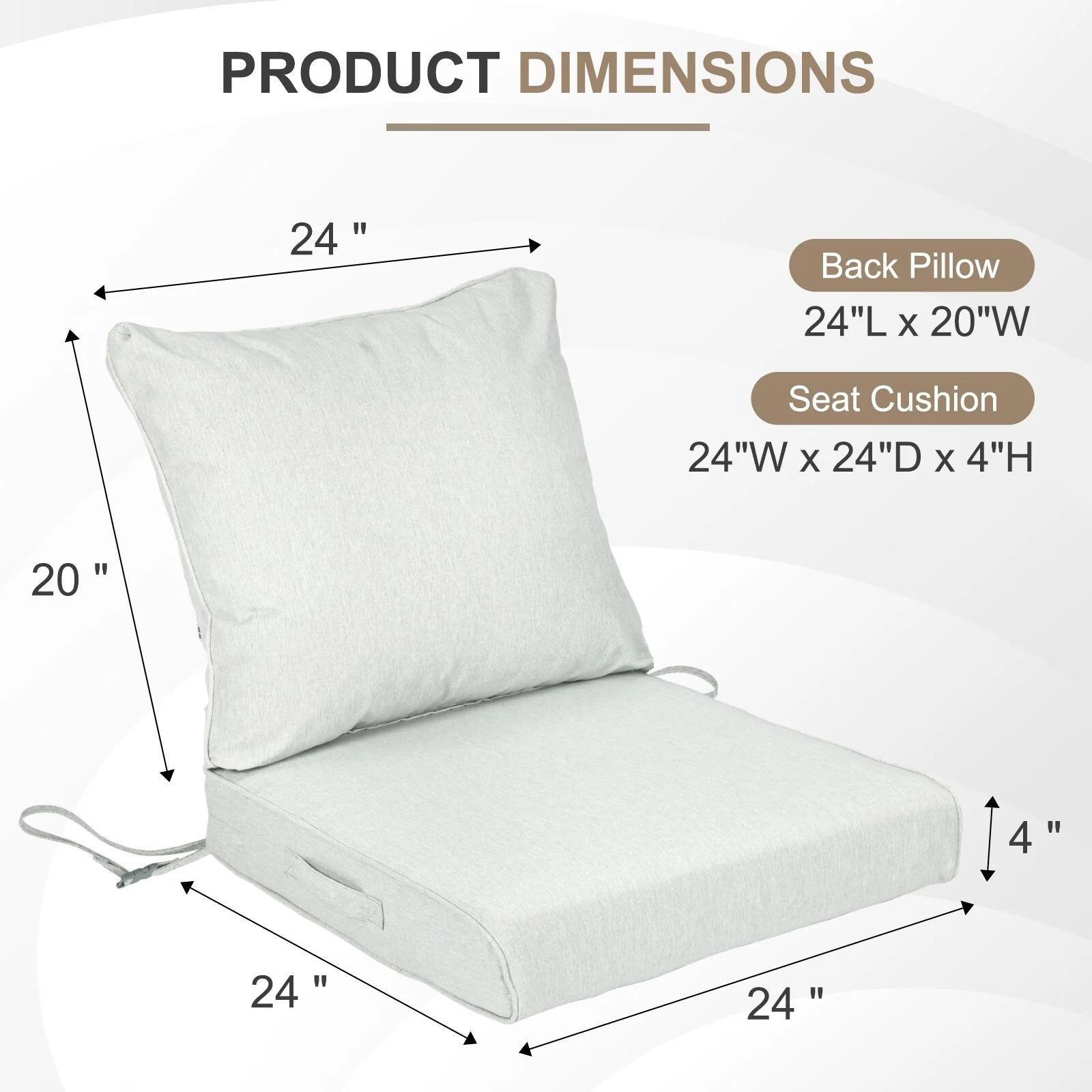 Pocassy 6 Inch Patio Chair Cushions Set 24x24x6 Inch Indoor/Outdoor Seat Cushion
