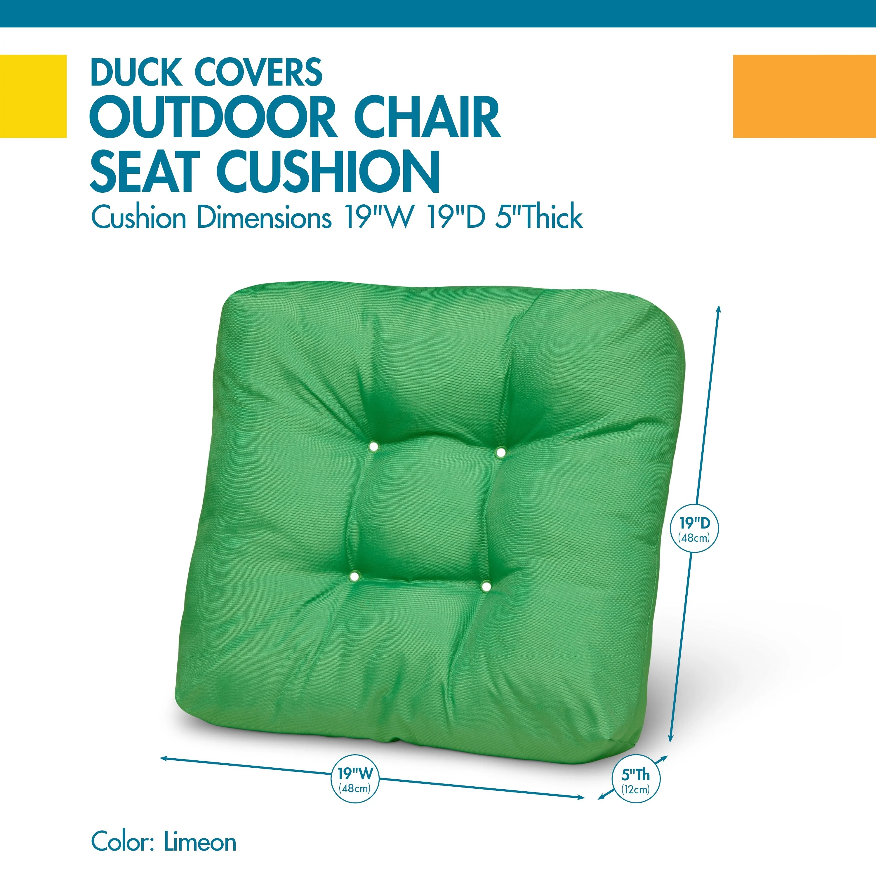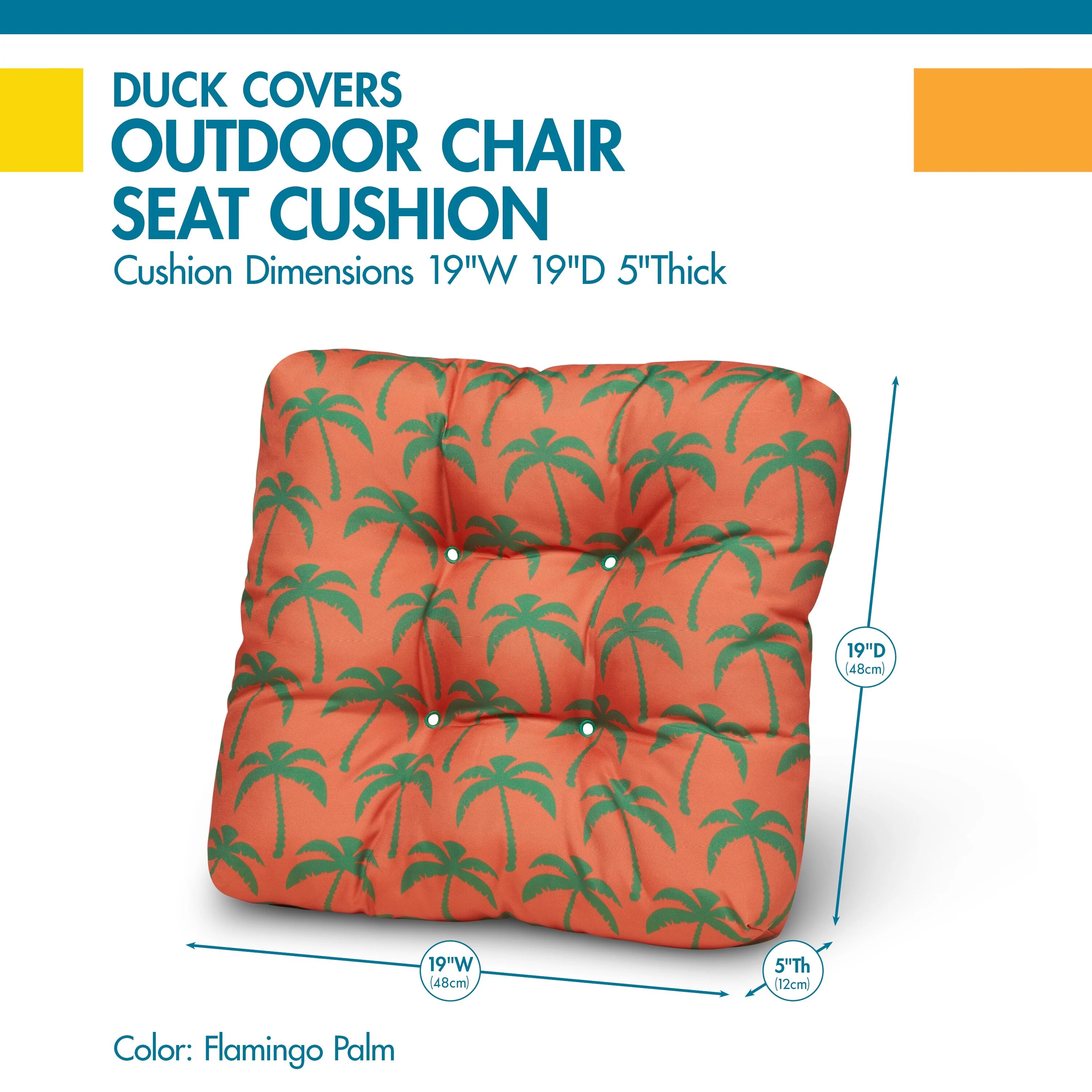 Sunbrella 19" x 17" Outdoor Seat Cushion with Ties - Set of 2 - 19" W x 17" L x 2" H