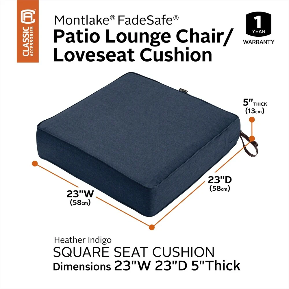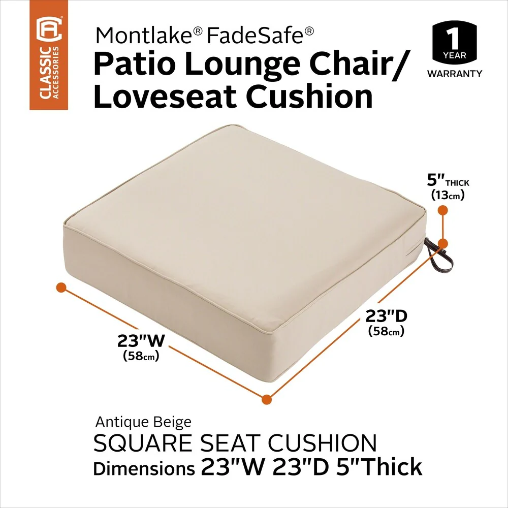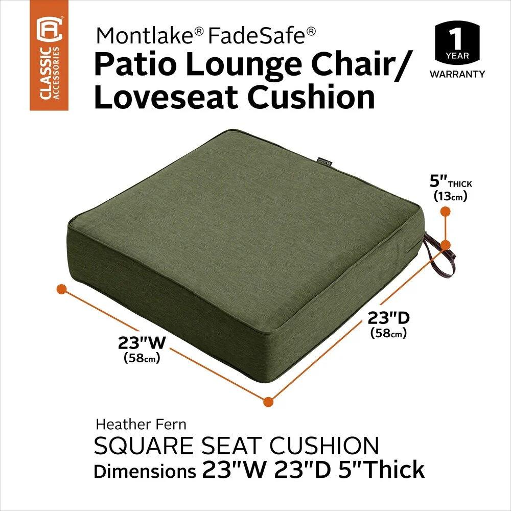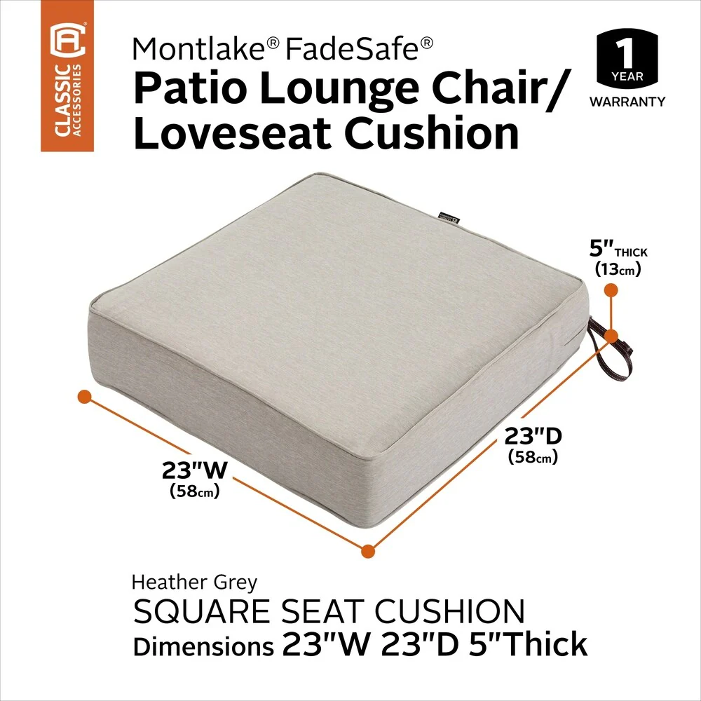 Classic Accessories Montlake Water-Resistant 23 x 23 x 5 Inch Patio Seat Cushion