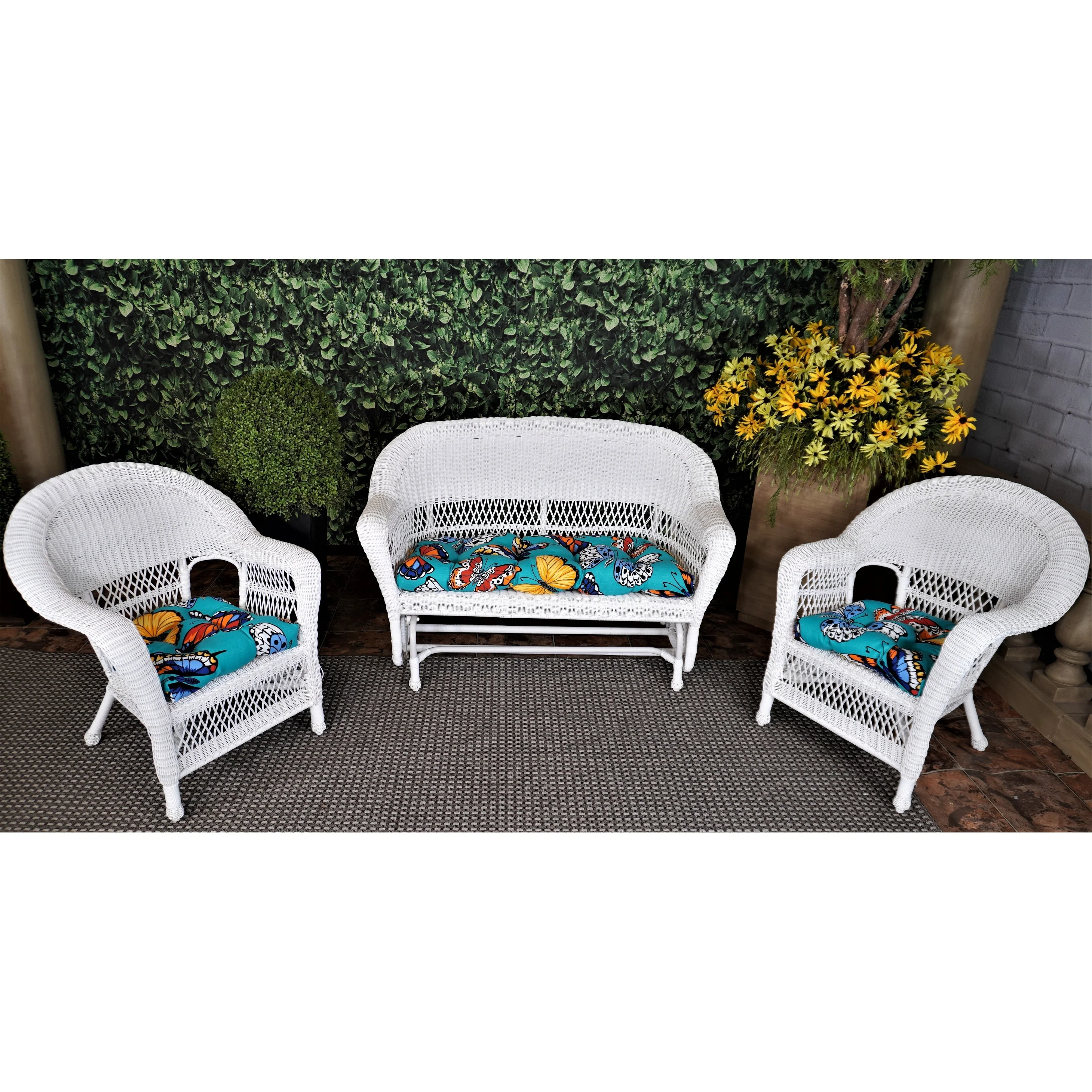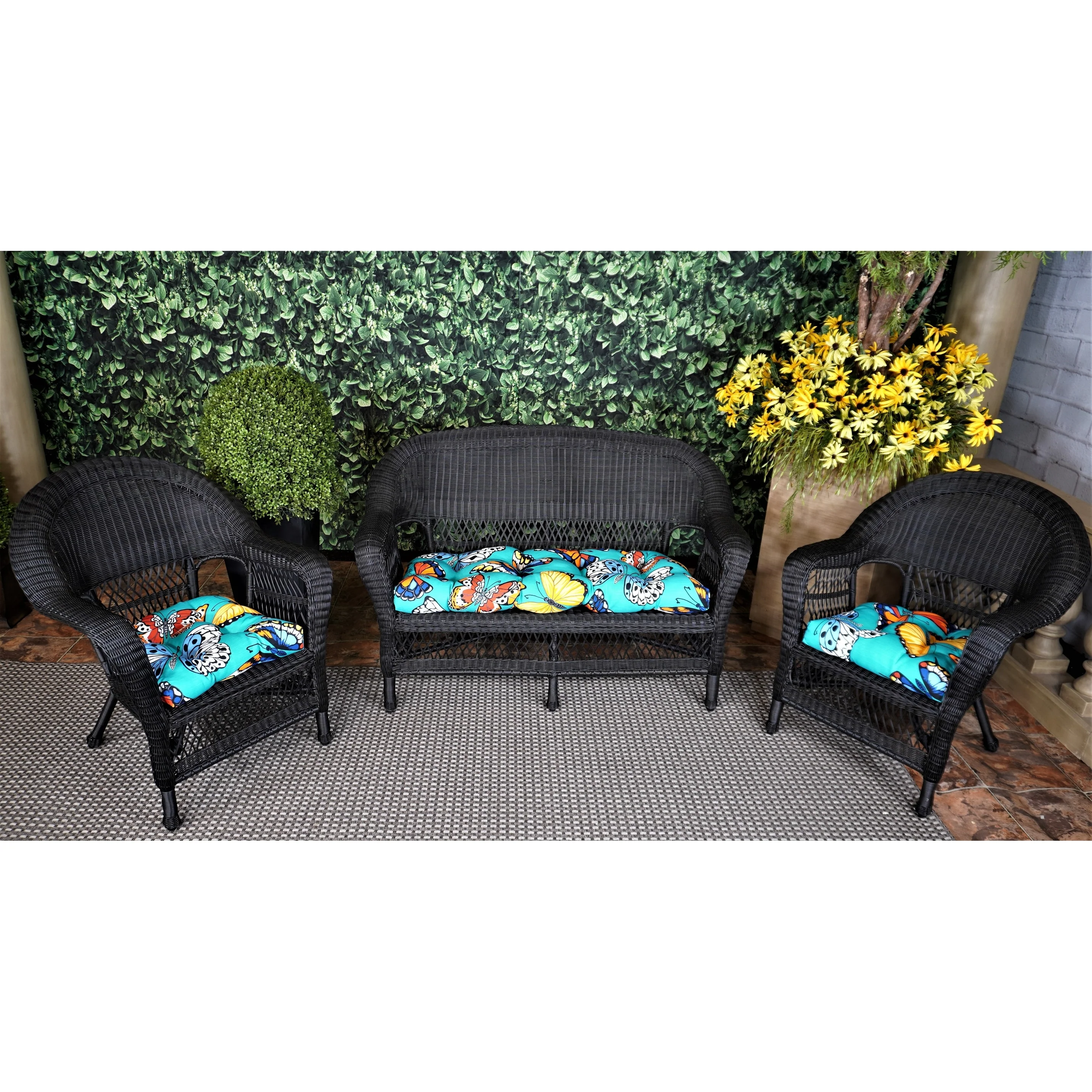 Outdoor Butterfly Garden Turquoise 3 Piece Cushion Set - 19