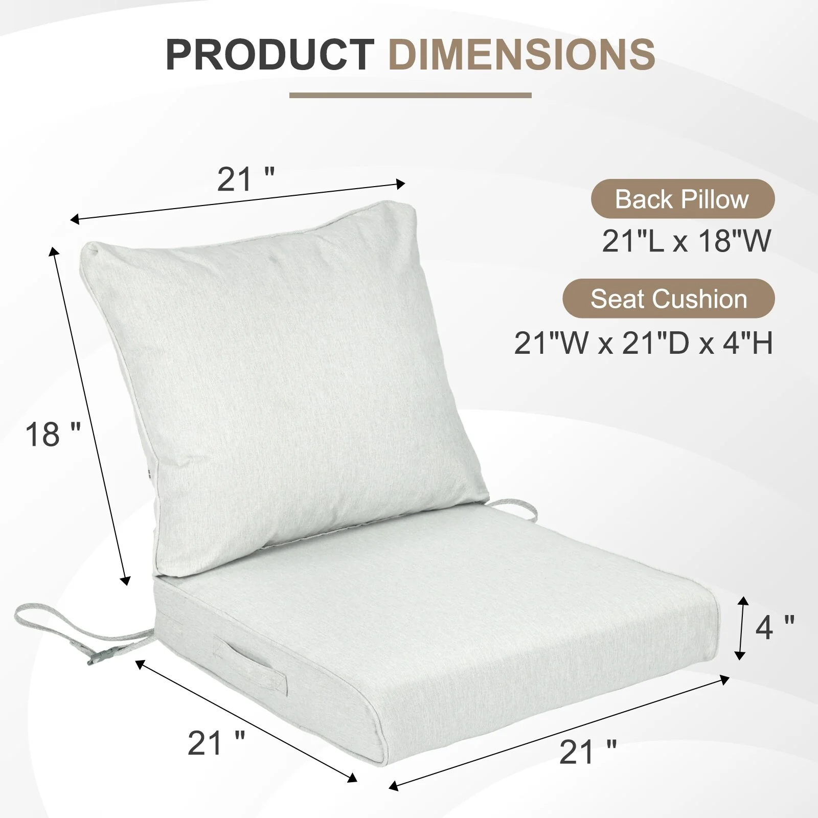 Aoodor Outdoor Chair Cushion Soft and Fade-resistant Polyester Set of 4 - 21''x21''