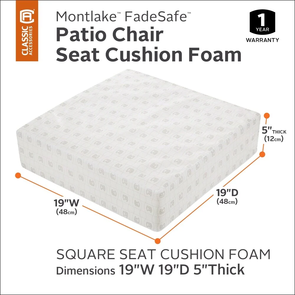 Classic Accessories Square Patio Lounge Seat Cushion Foam - 5" Thick - High-Density Foam