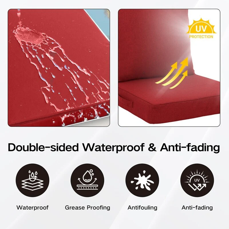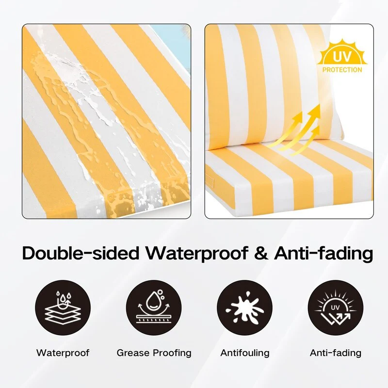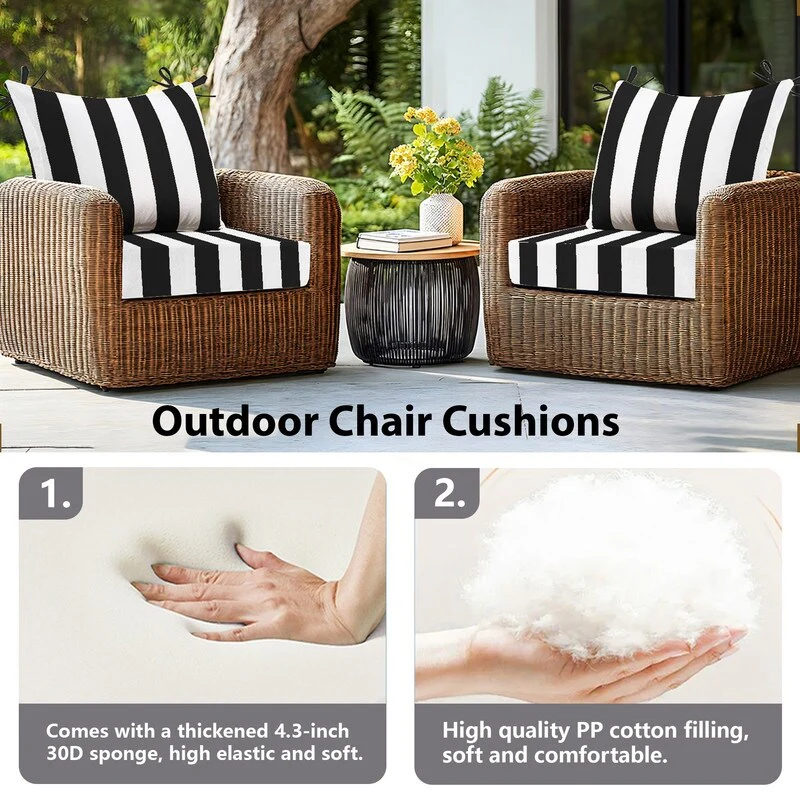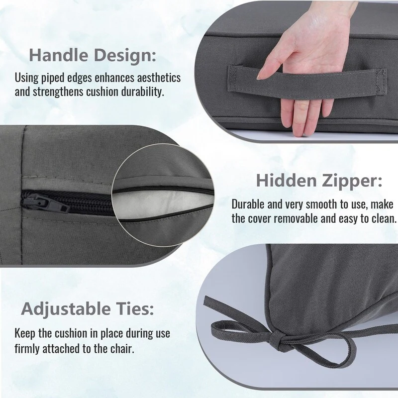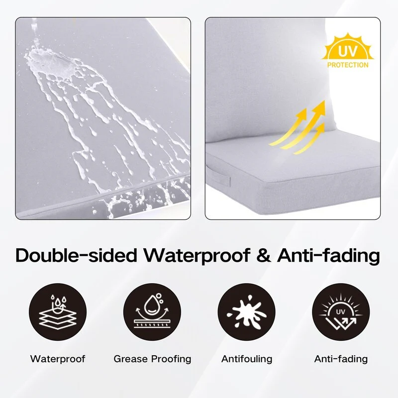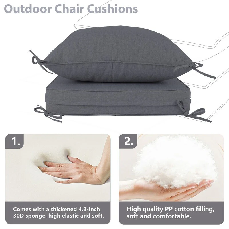 24x24 in Outdoor Deep Seat Cushion Set, Waterproof Fade Resistant, 4in Thickened Foam, Removable Cover, Adjustable Straps