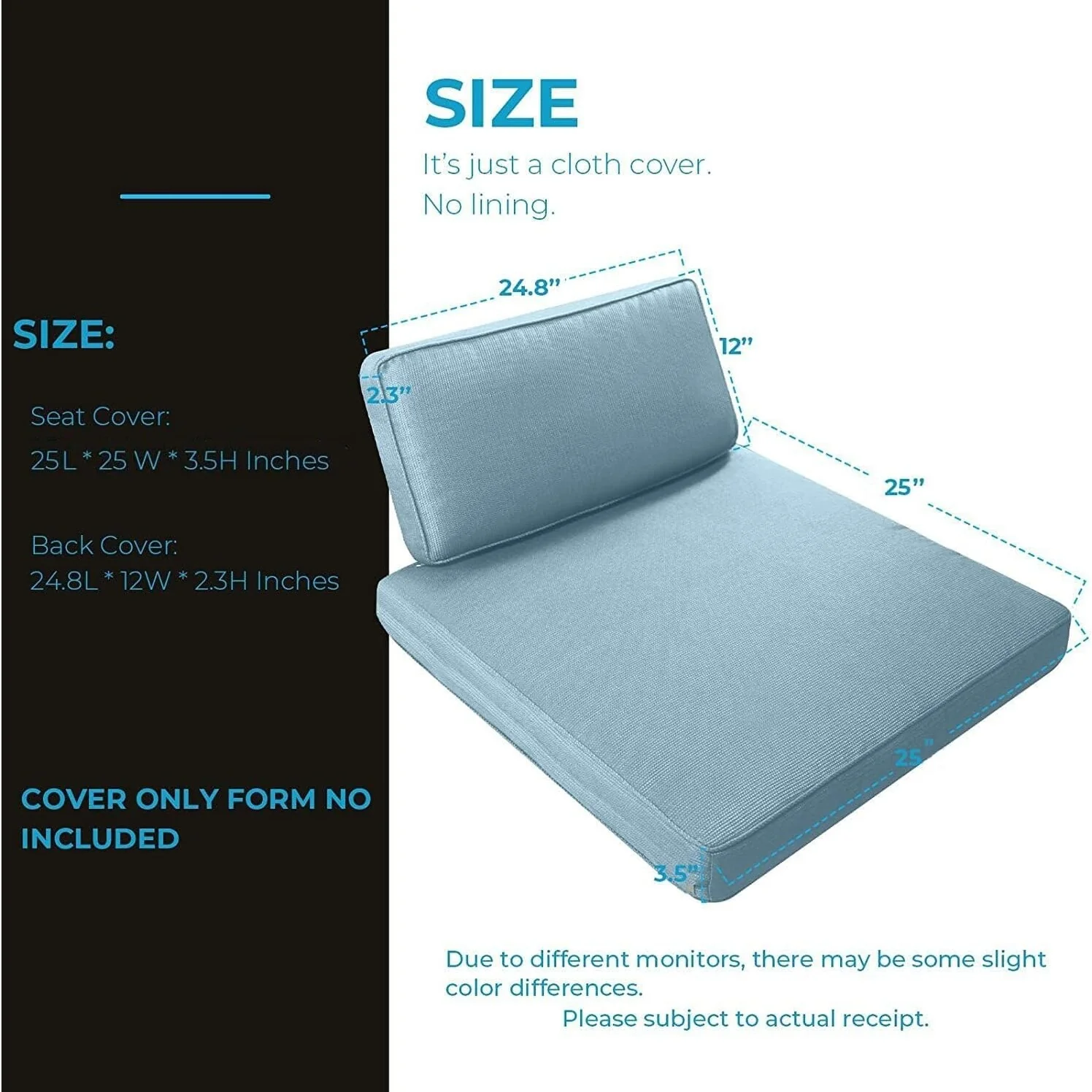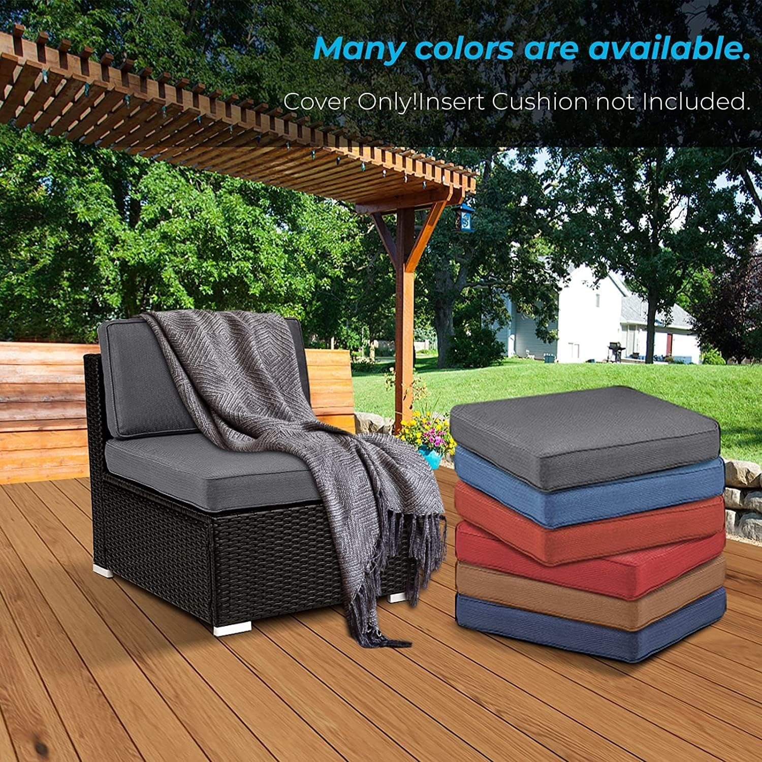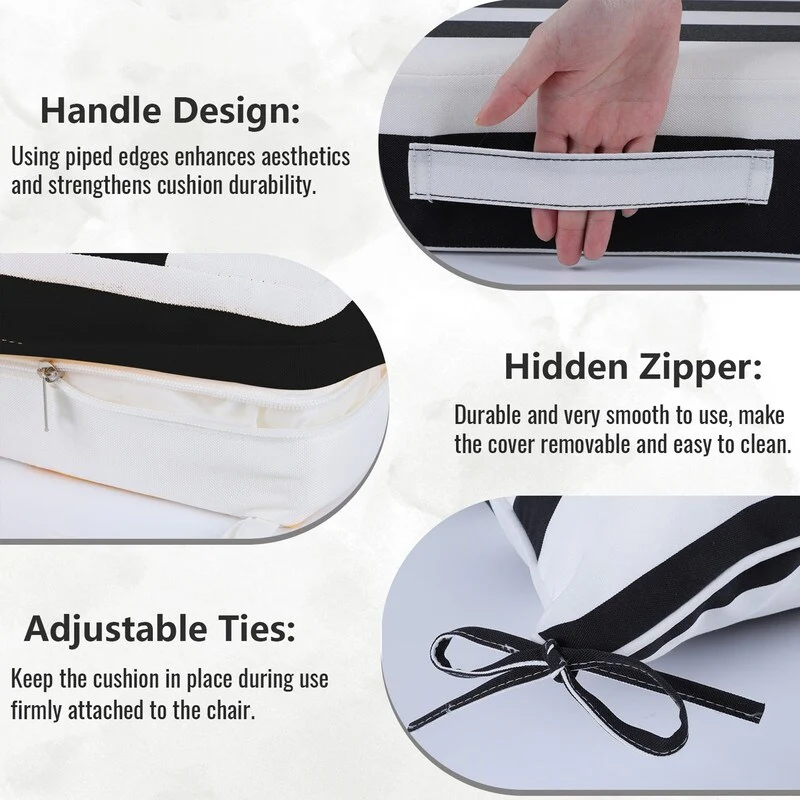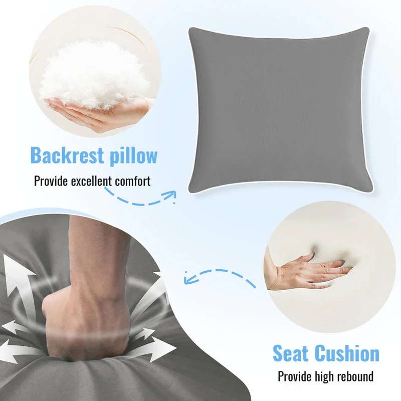 24x24 in Outdoor Deep Seat Cushion Set, Waterproof Fade Resistant, 4in Thickened Foam, Removable Cover, Adjustable Straps