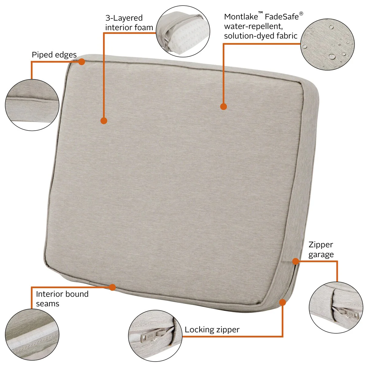 Classic Accessories Montlake Water-Resistant Outdoor Seat Cushion