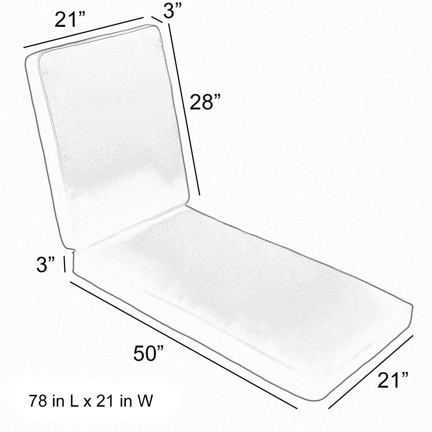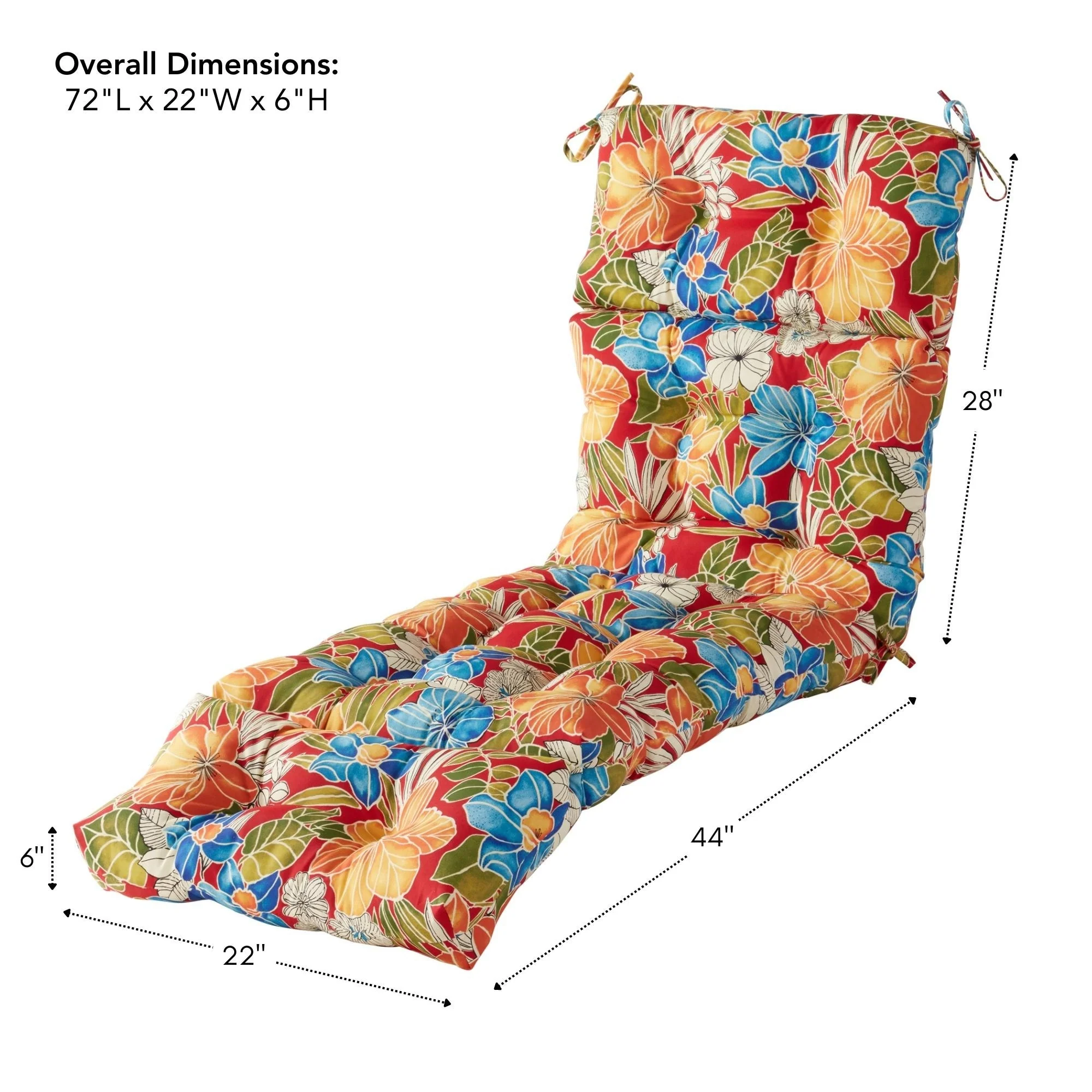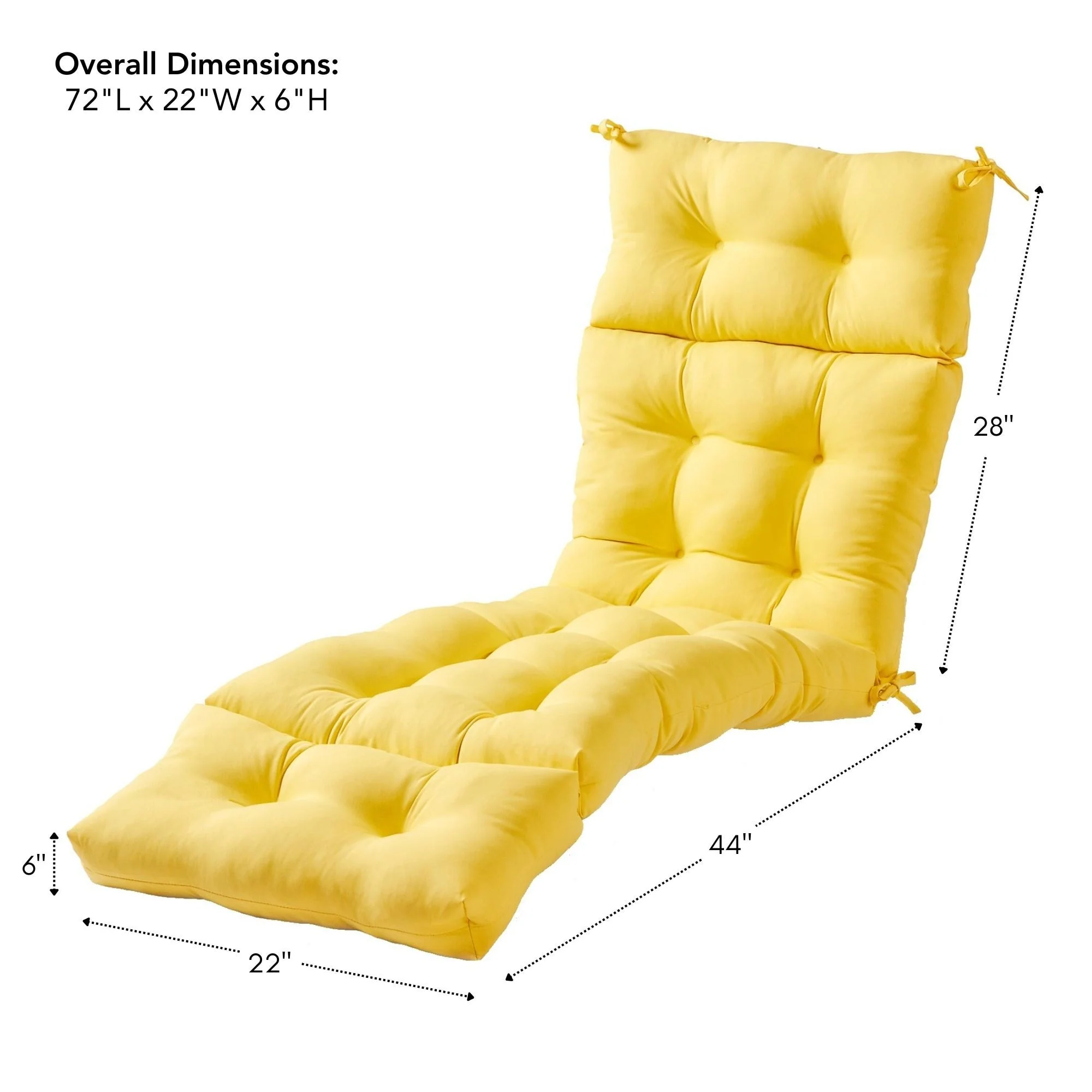 72" x 22" Outdoor Chaise Lounge Cushion with Ties and Loop - 72'' L x 22'' W x 3.5'' H