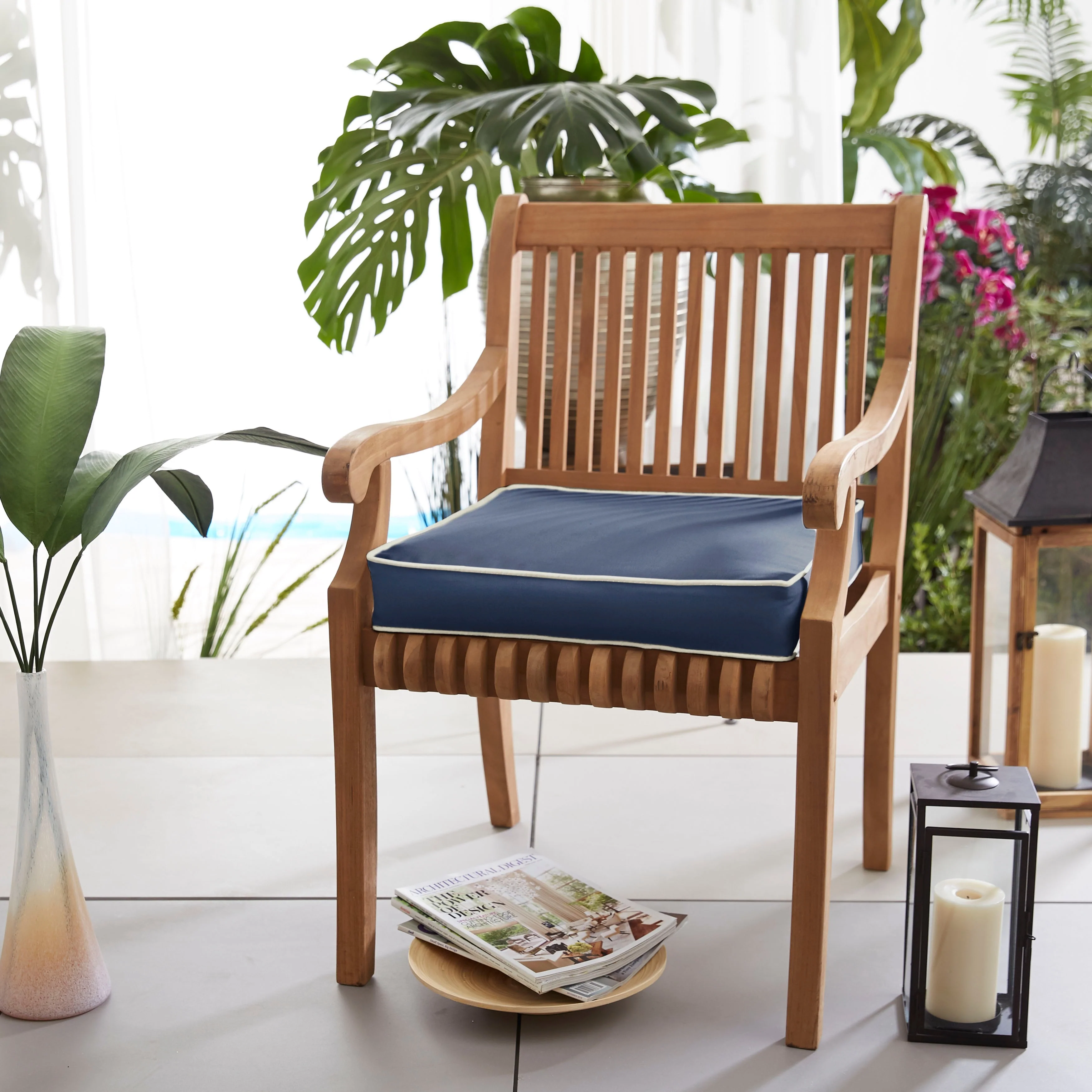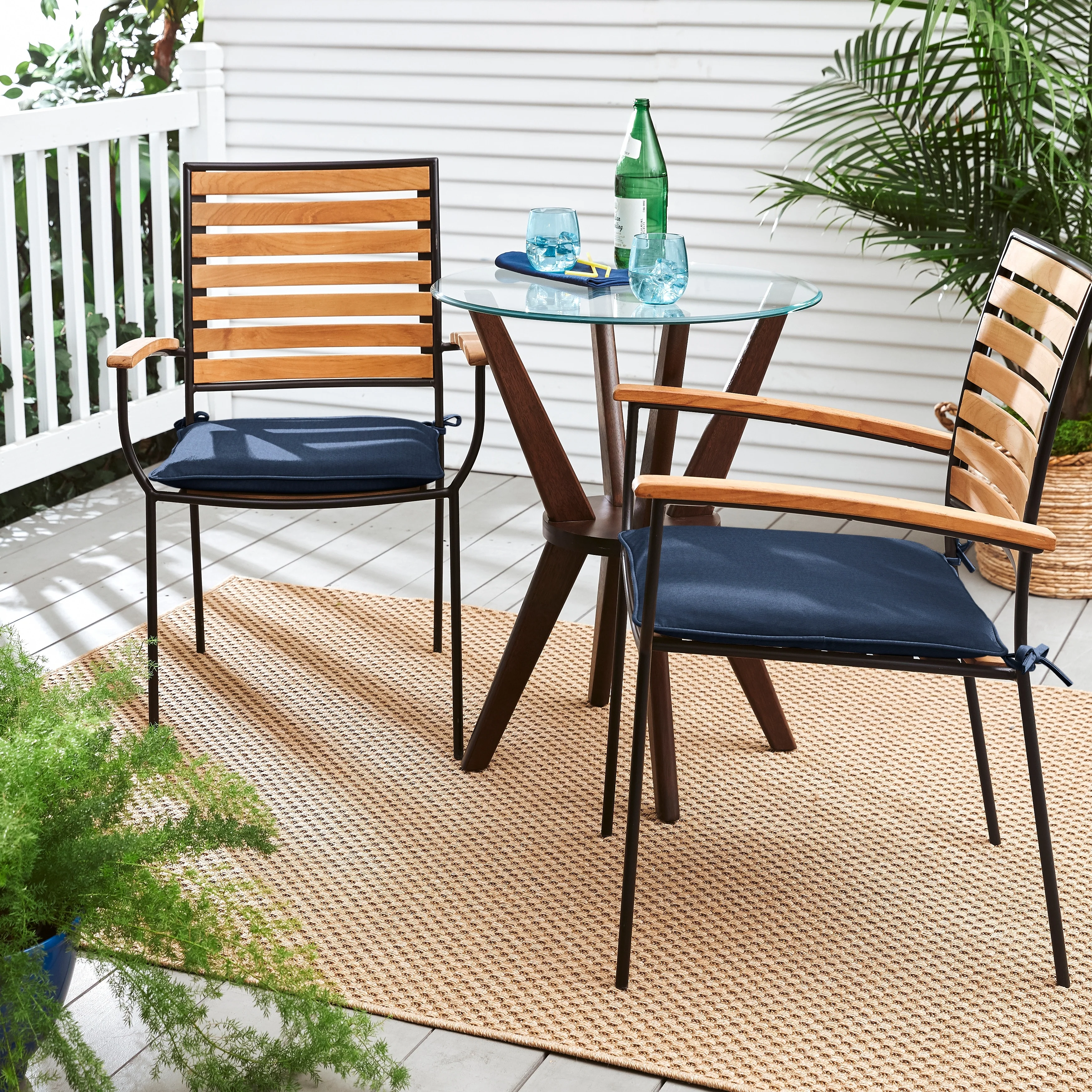 Sunbrella Indigo Blue Indoor/Outdoor Chair Pad Set, Corded