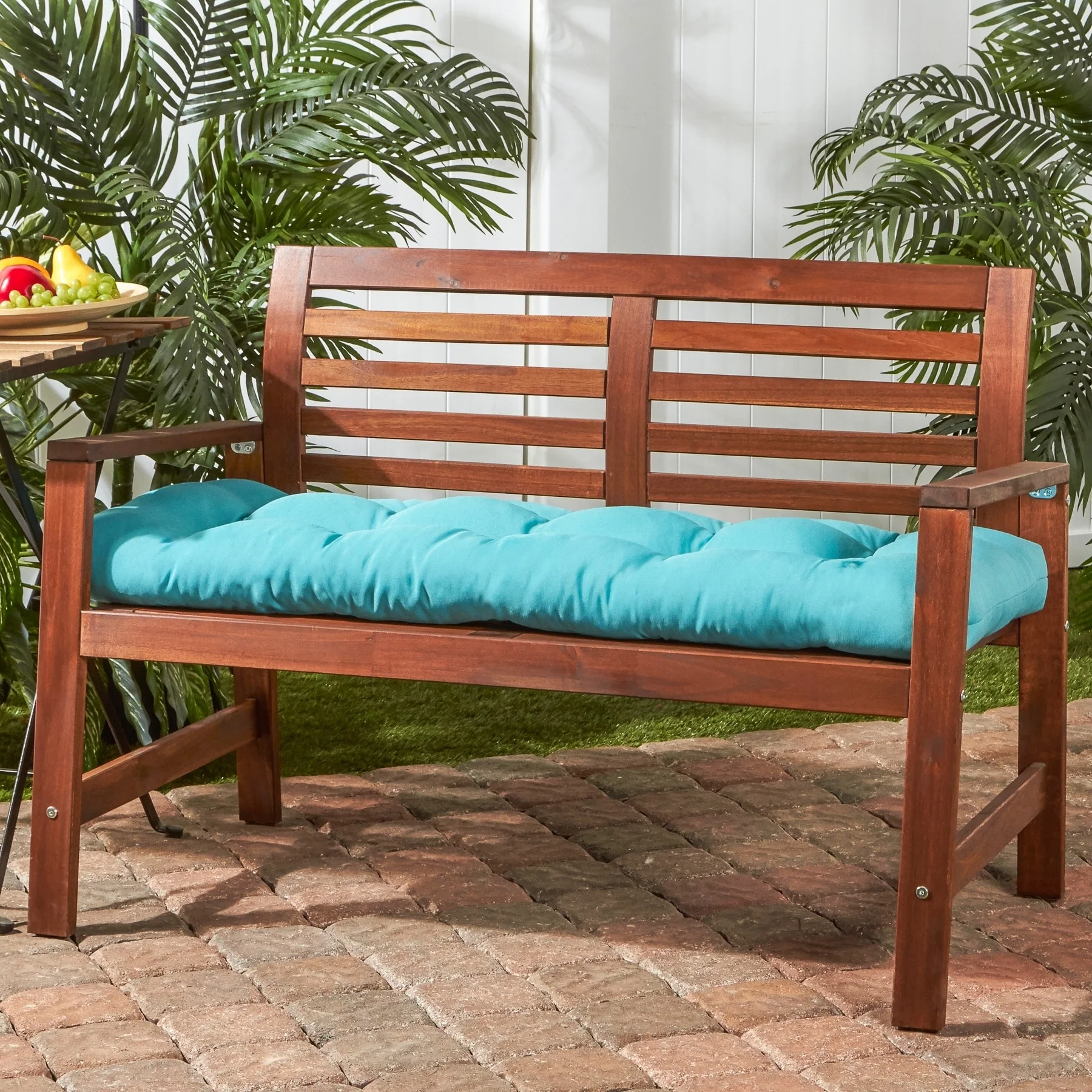 Claire Outdoor Cushion for Bench, Button Tufted Green Fabric, 47 Inch