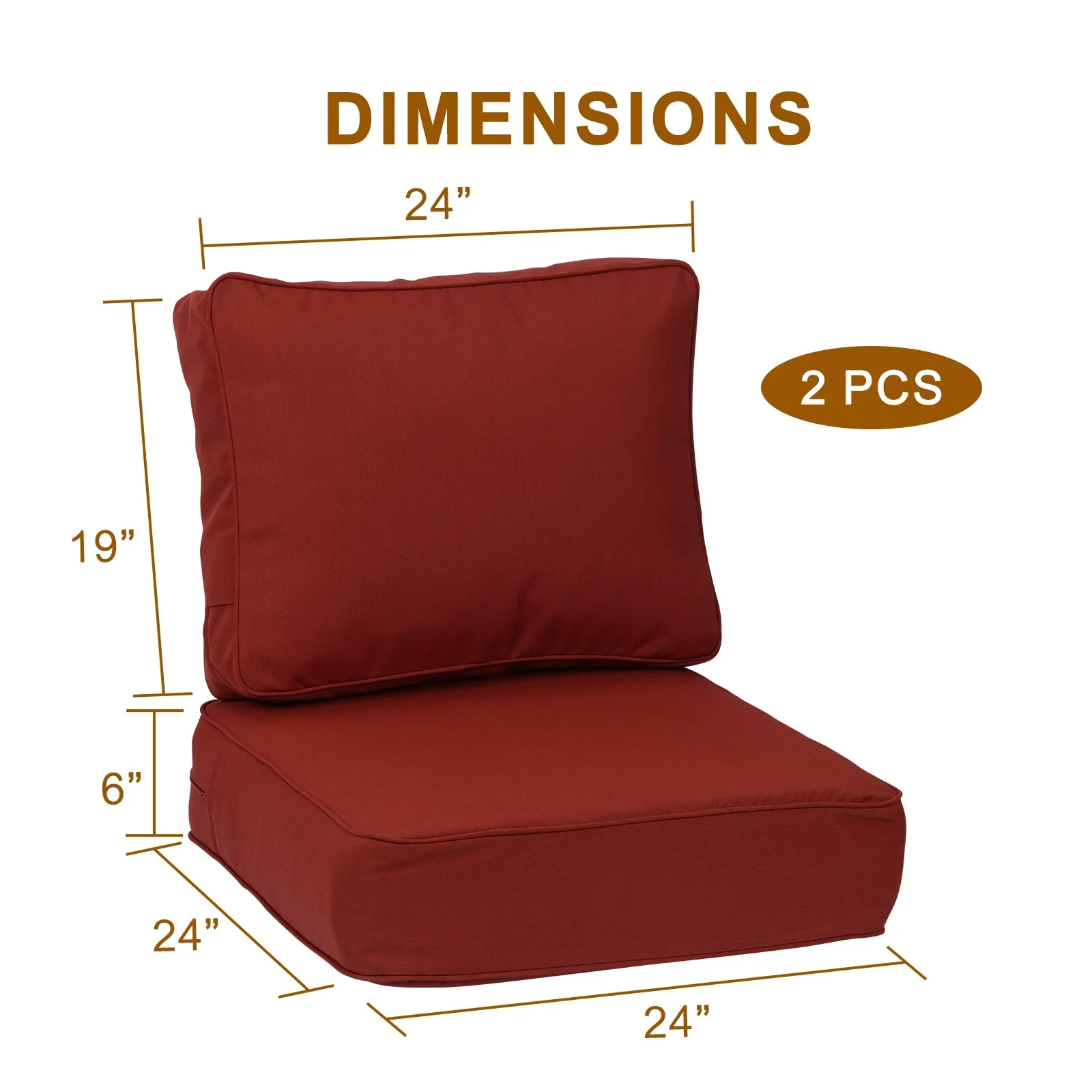 24 x 22 in. 2-Piece Deep Seating Outdoor Lounge Chair Cushions