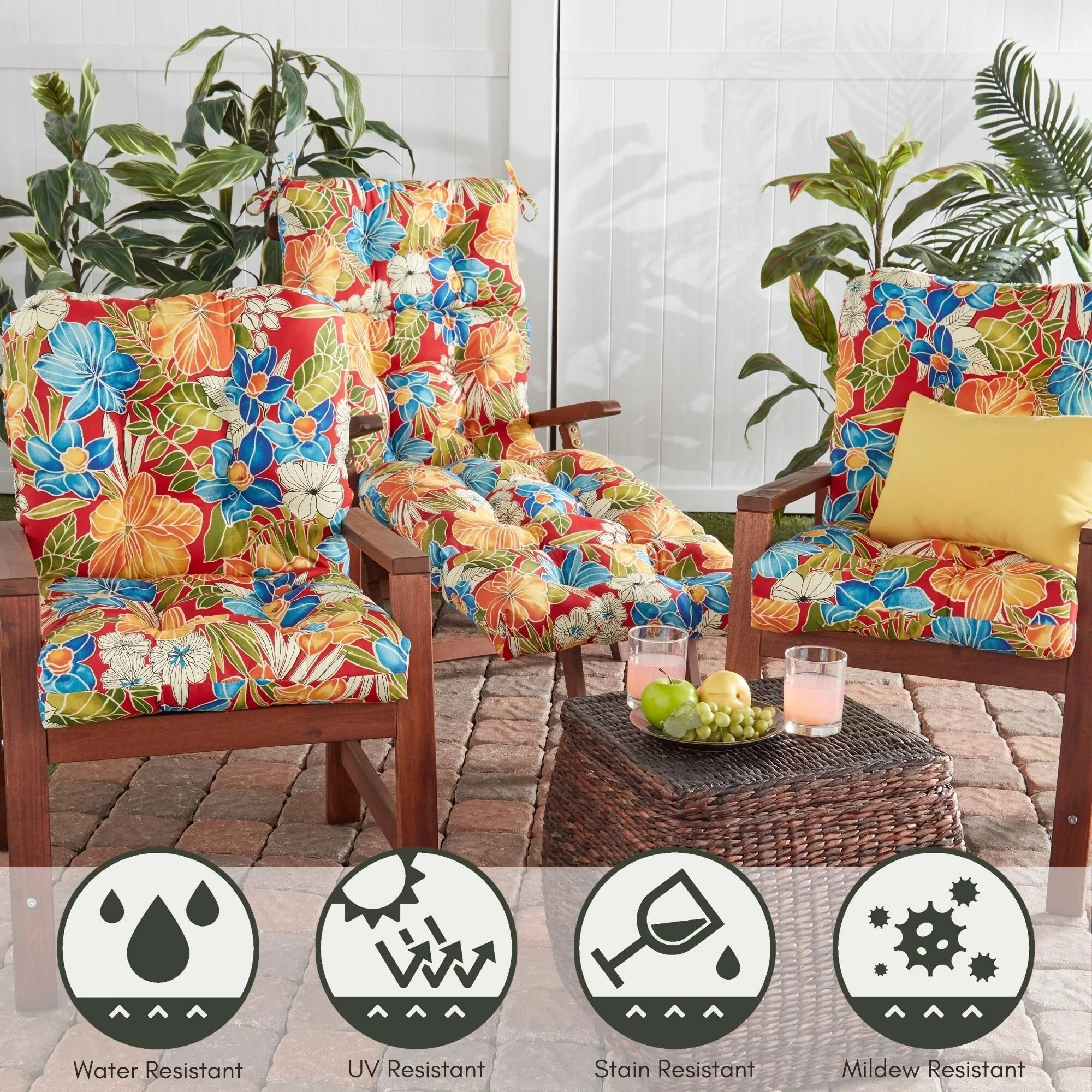 Aloha Floral Outdoor 44x22-inch High Back Chair Cushion (Set of 2) (Cushions Only)