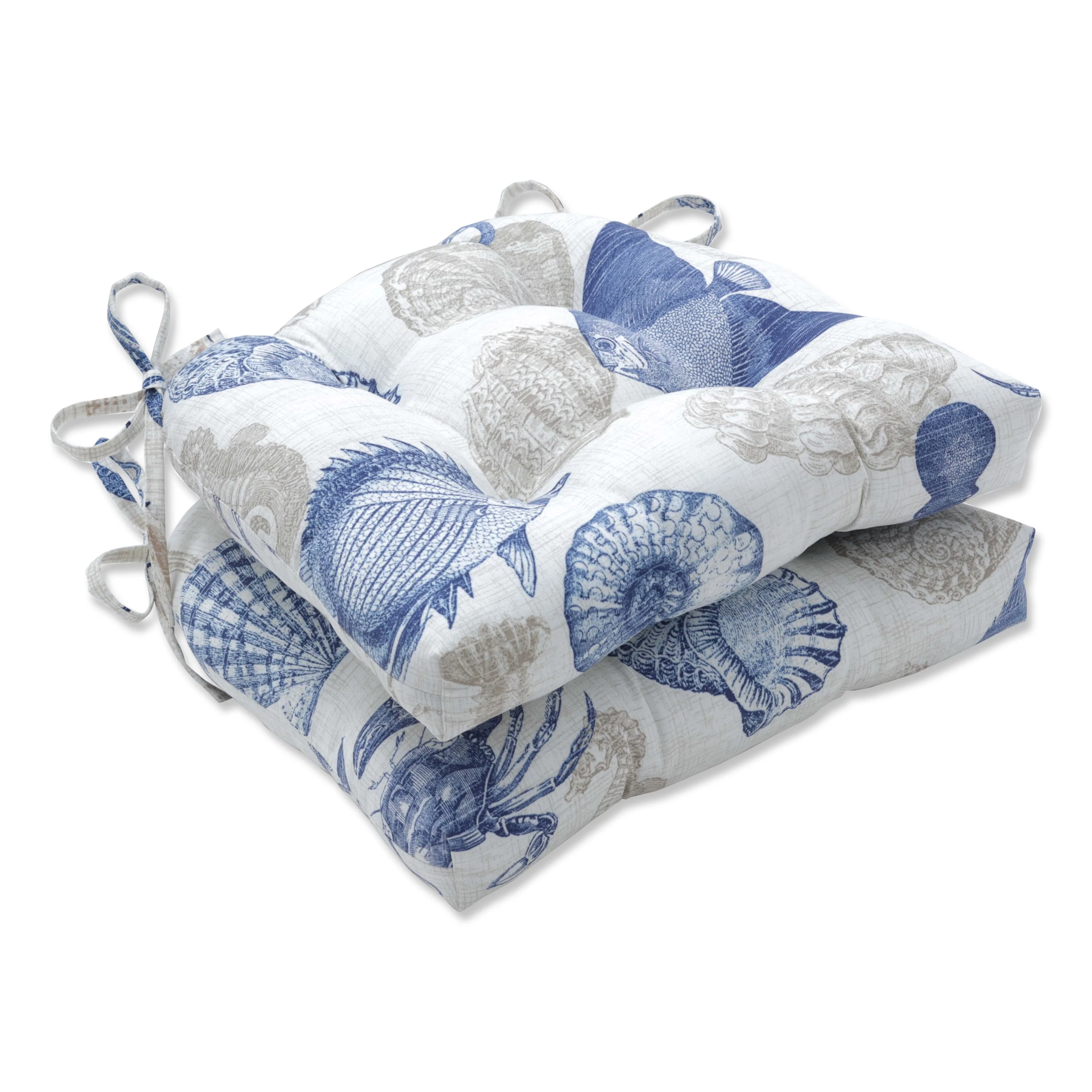 Outdoor Sealife Marine Reversible Chair Pad (Set of 2) - 15.5 X 16 X 4 - 15.5 X 16 X 4