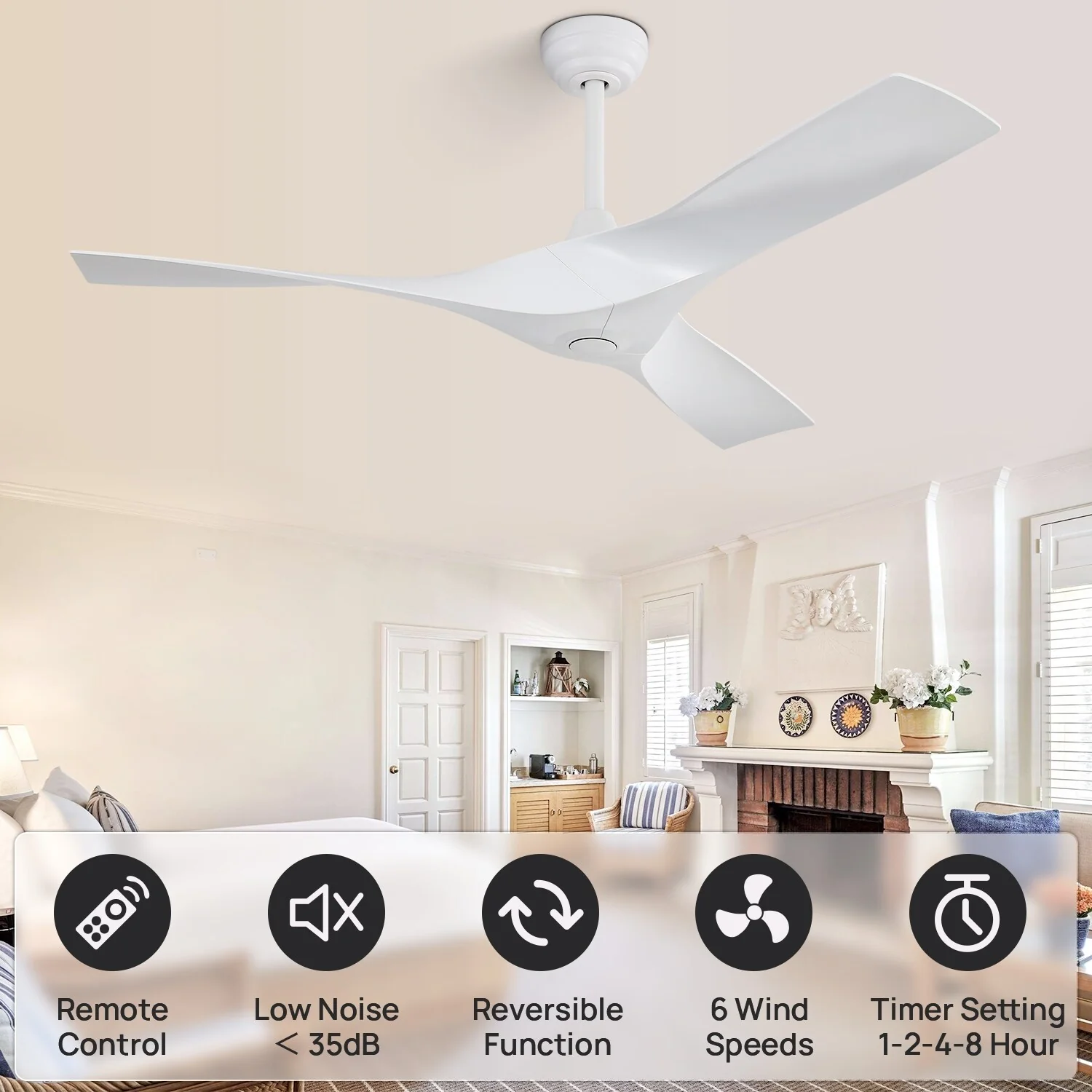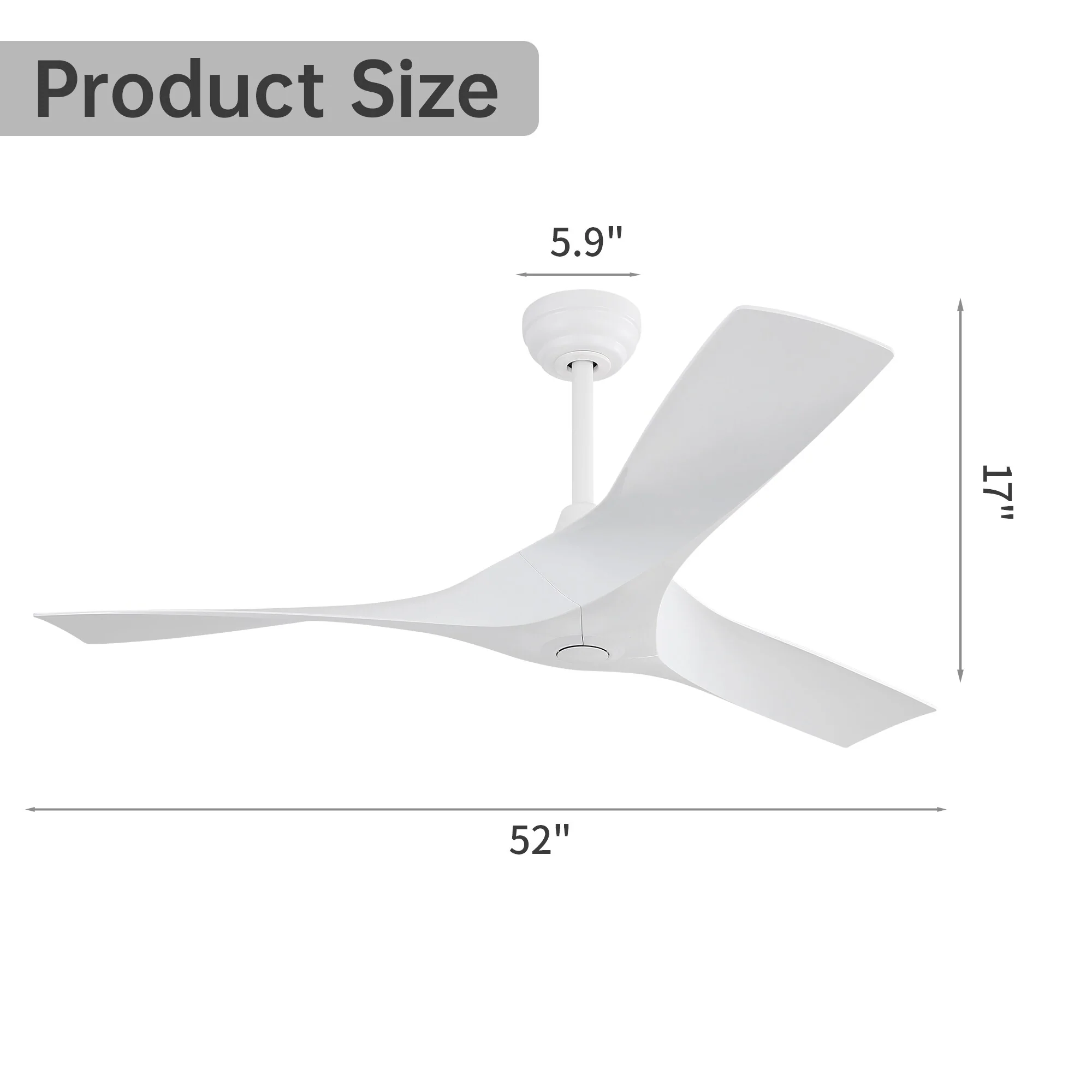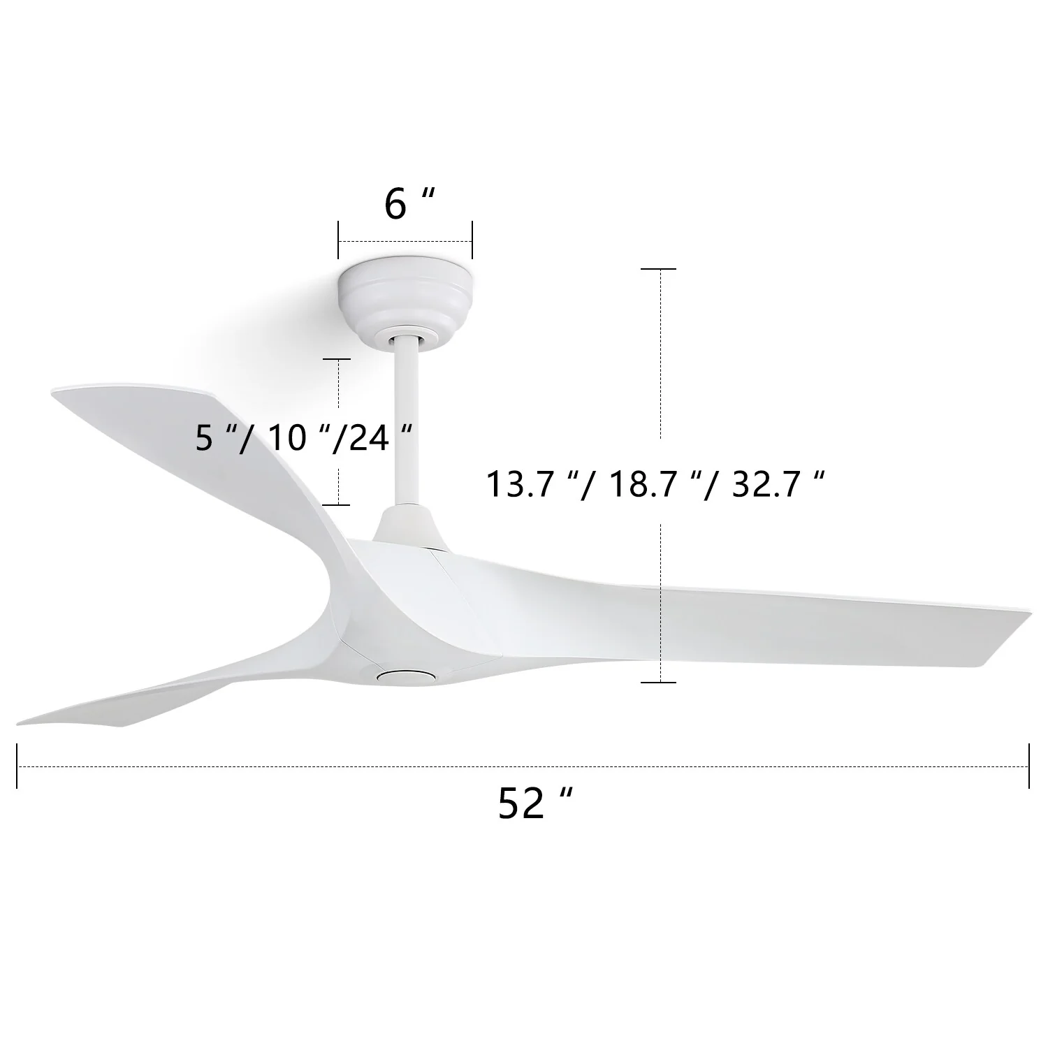 52 Inch White Ceiling Fan No Light, 3 Blade Propeller Ceiling Fan with Remote Control, 6 Speed Quiet Reversible DC Motor Fan