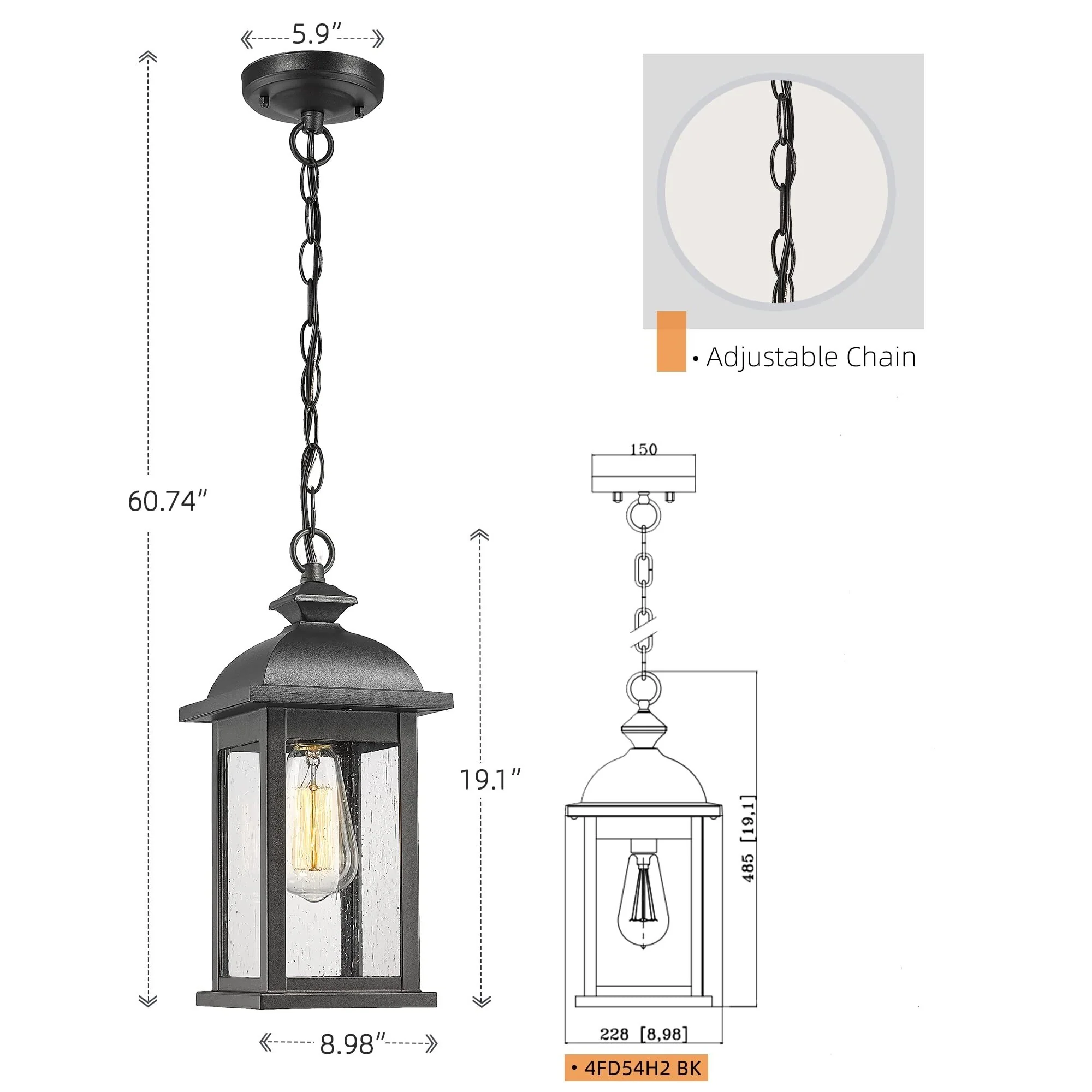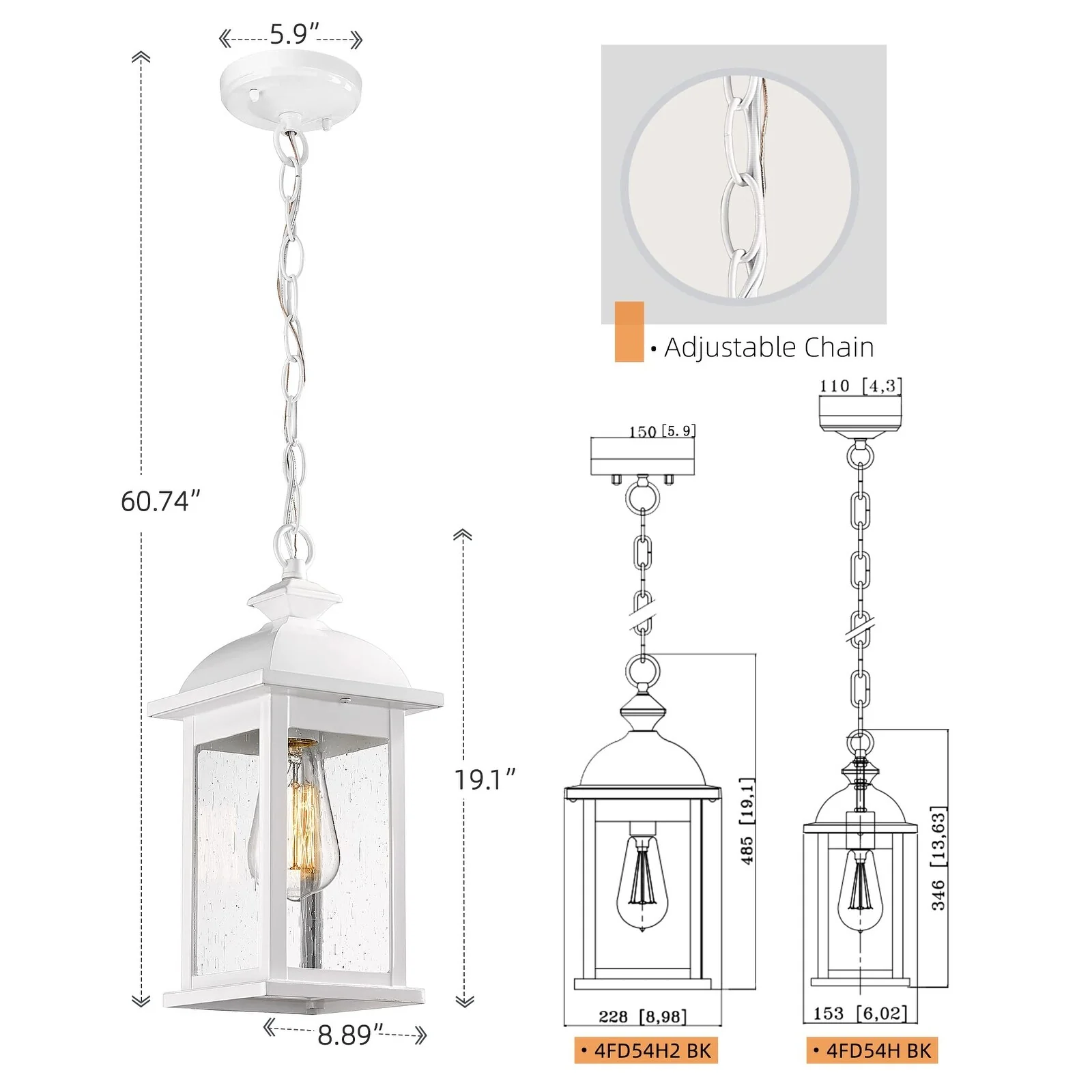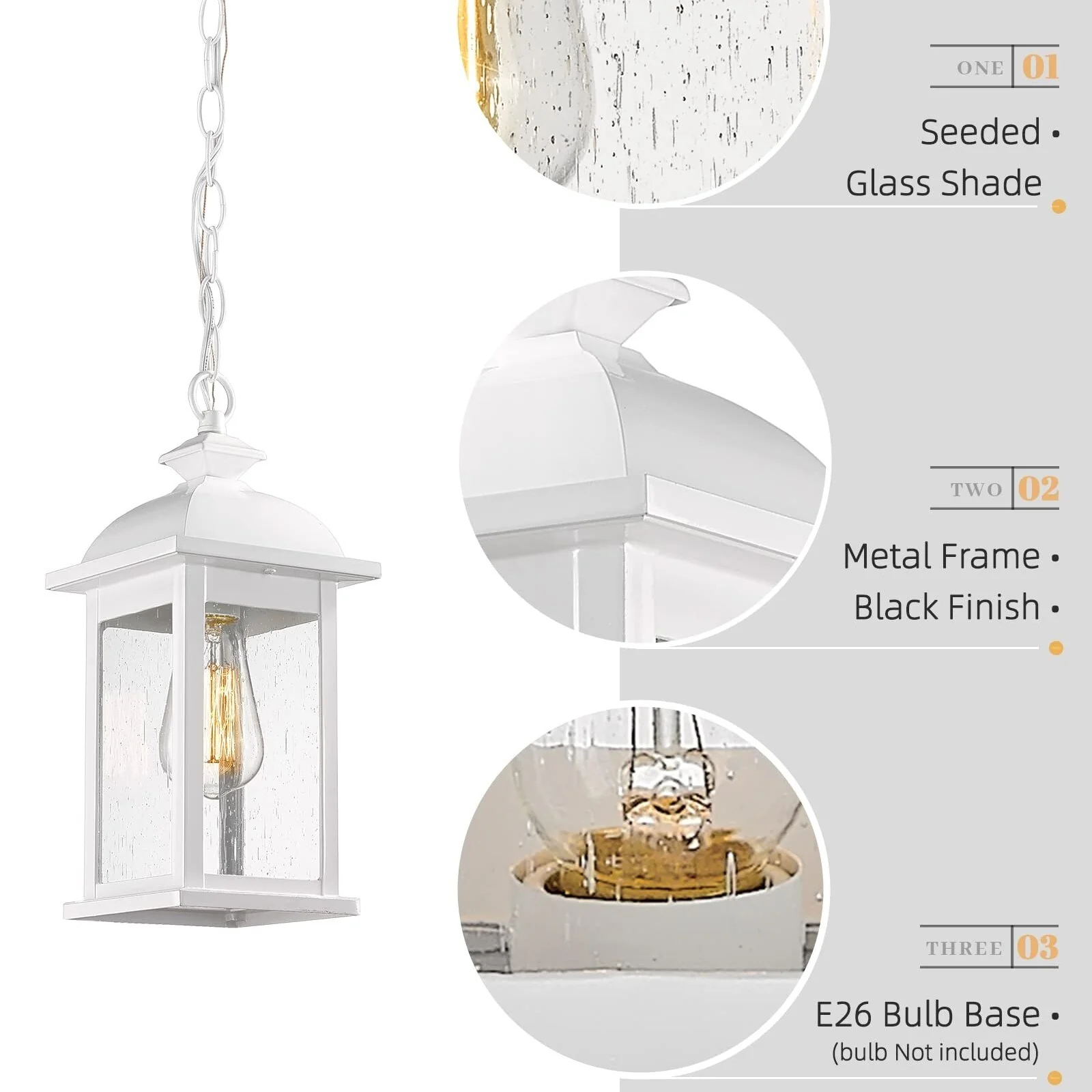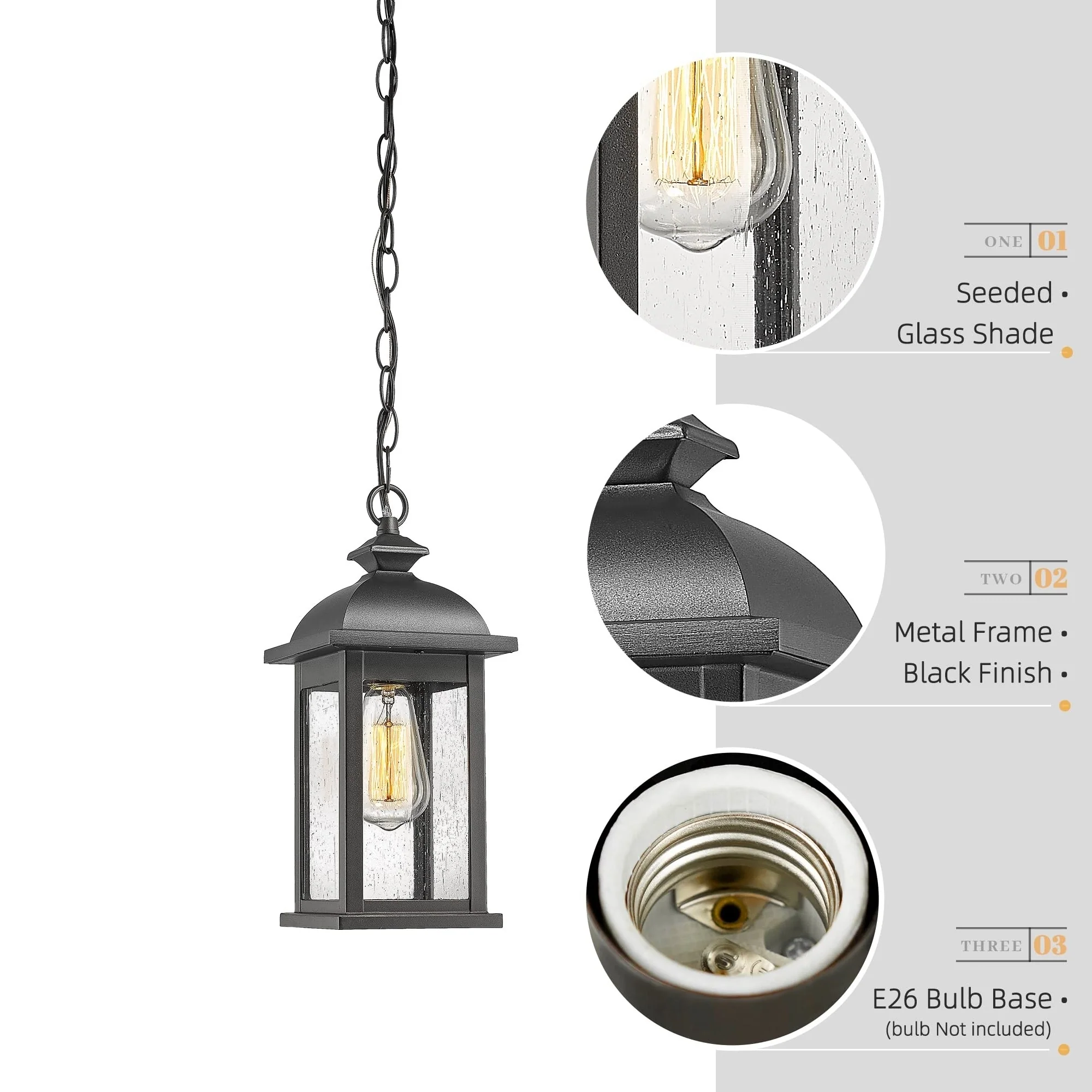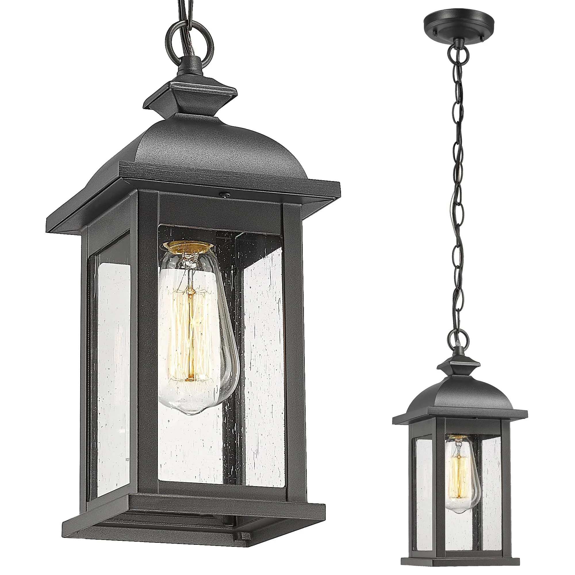 19 Inch Outdoor Pendant Light, Seeded Glass - 19.1 Inch