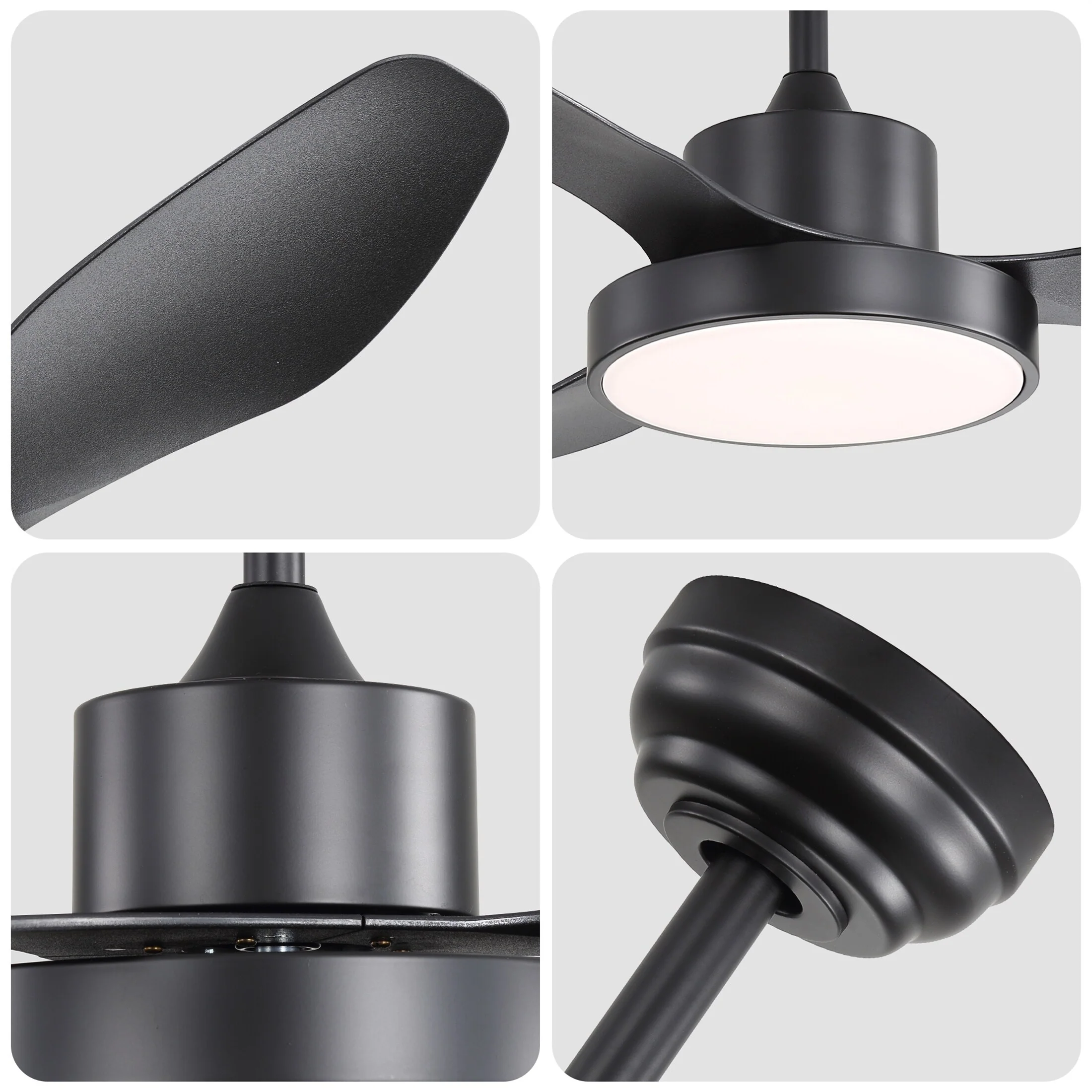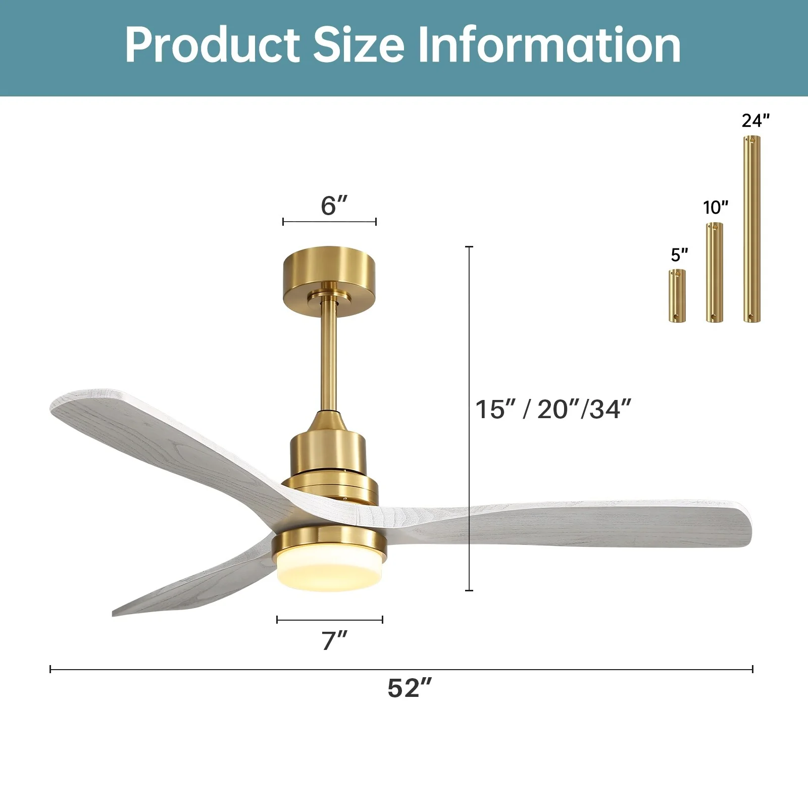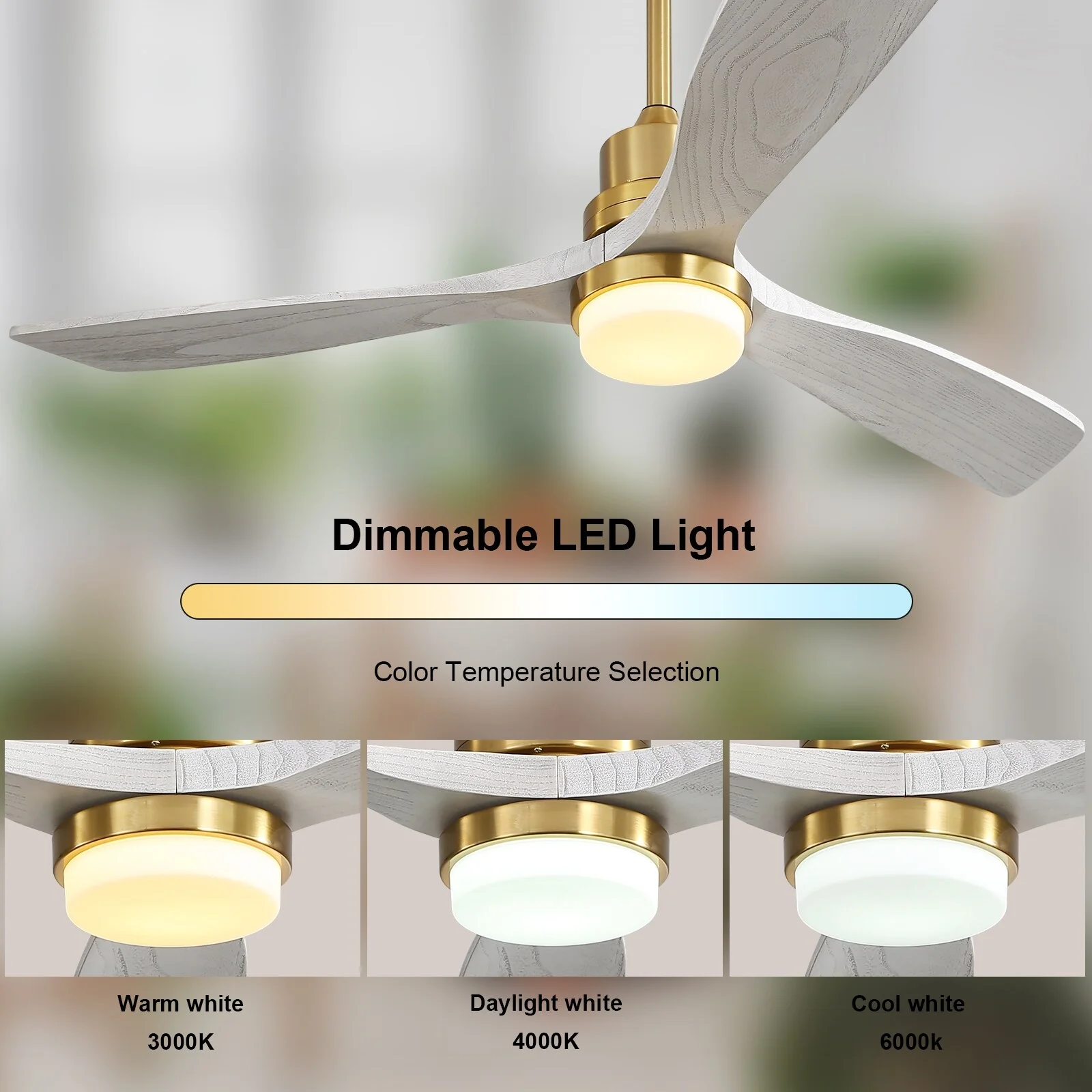 Sofucor 52" Modern Farmhouse Ceiling Fan With Light and Remote Solid Wood & 3 Blades - 52 Inches
