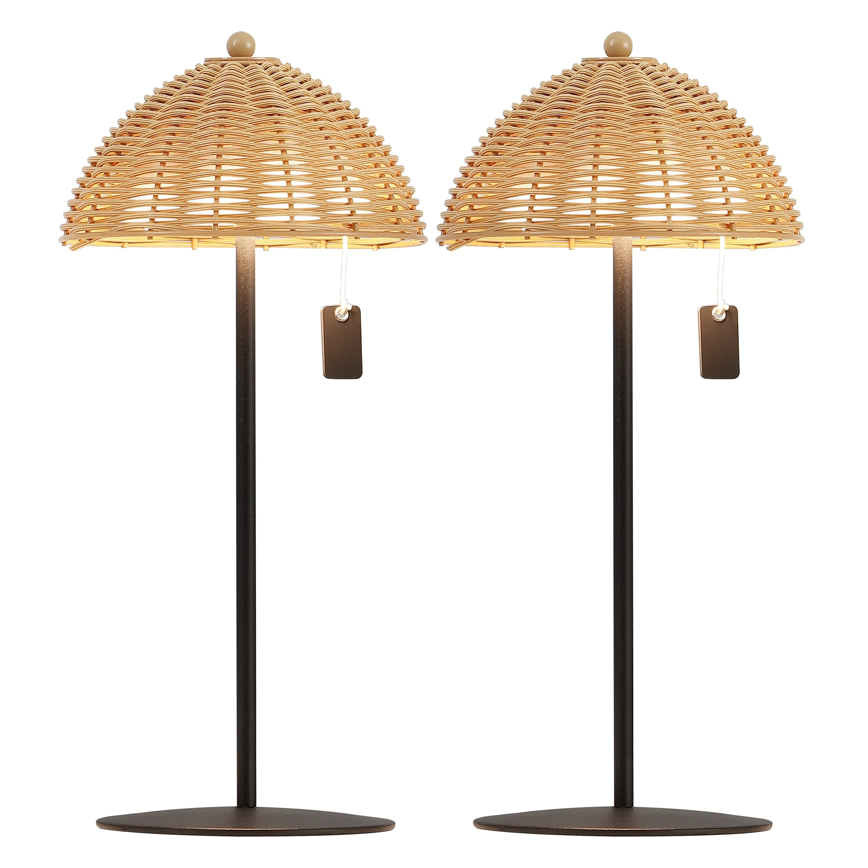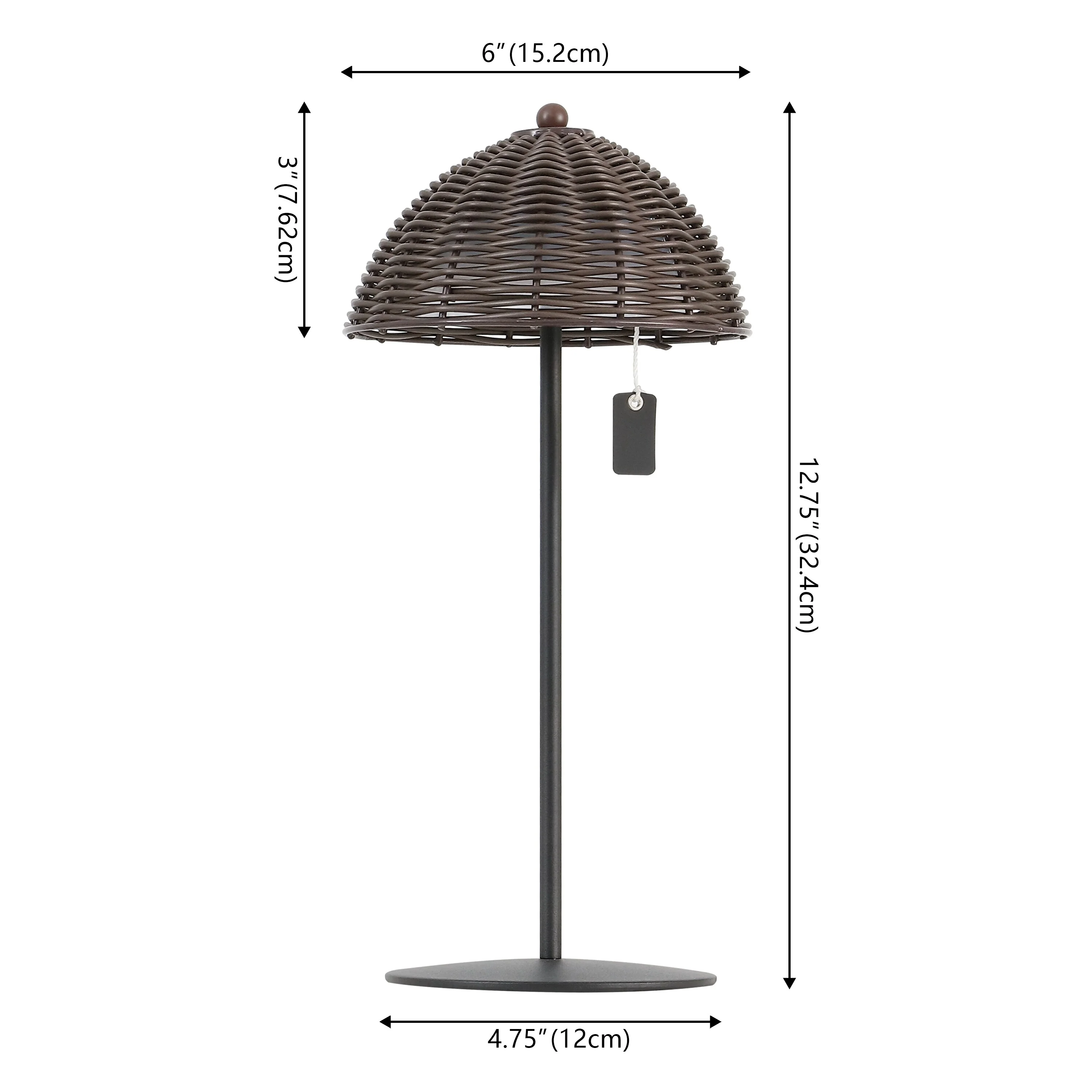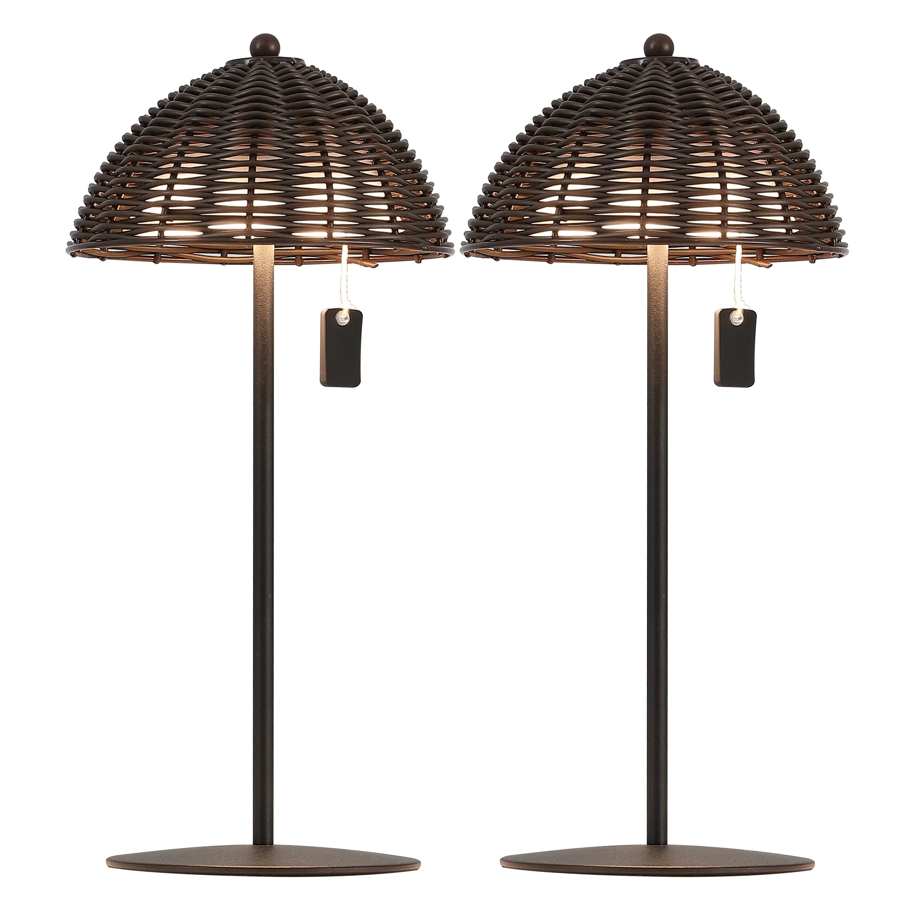 12.75" Coastal Cordless LED Table Lamp, Wicker Shade, Dimmable, Indoor/Outdoor (Set of 2) - 12.75