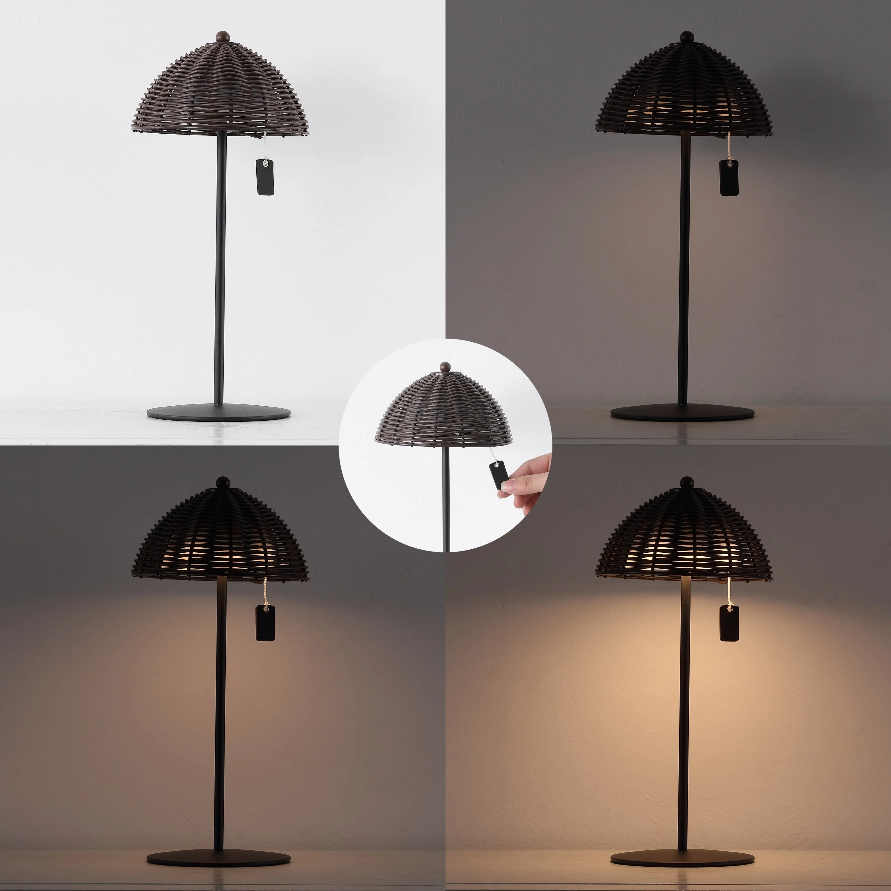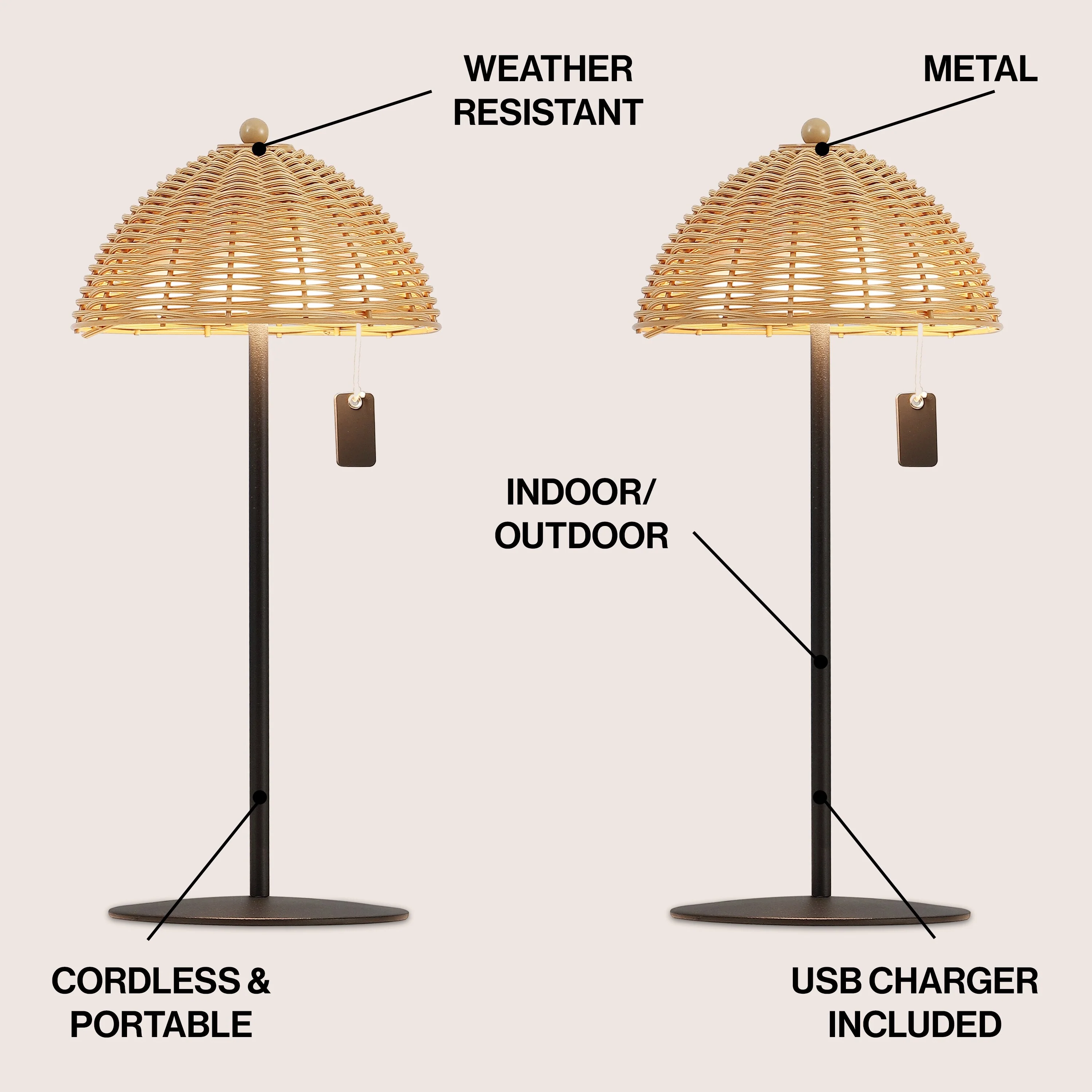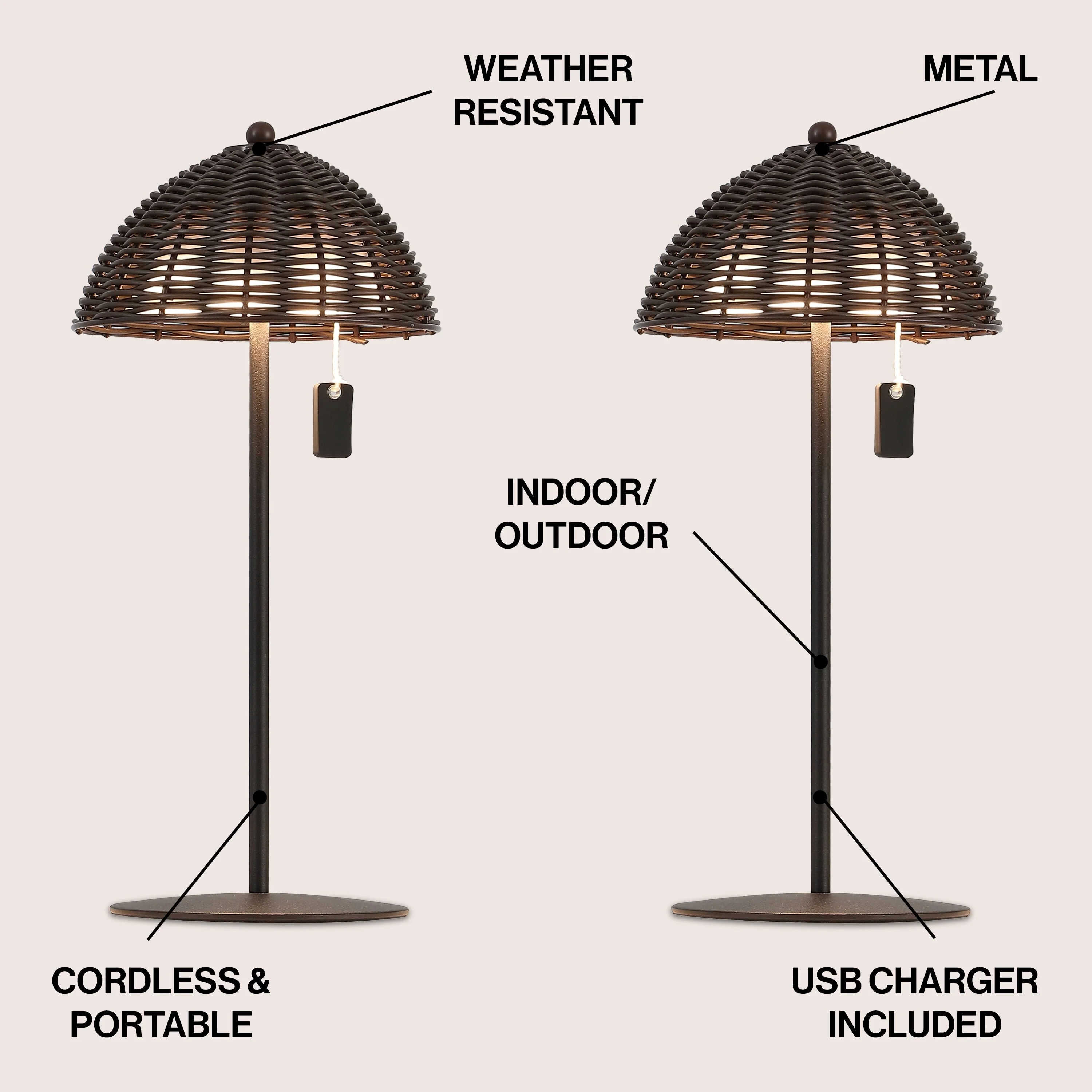12.75" Coastal Cordless LED Table Lamp, Wicker Shade, Dimmable, Indoor/Outdoor (Set of 2) - 12.75