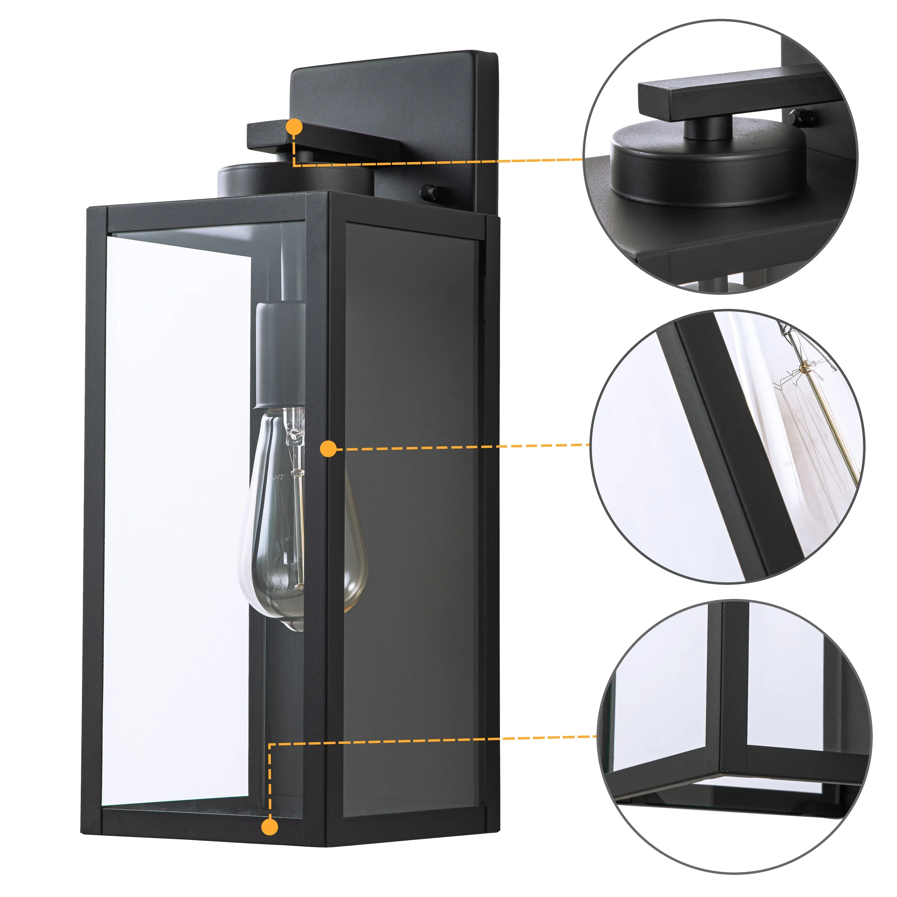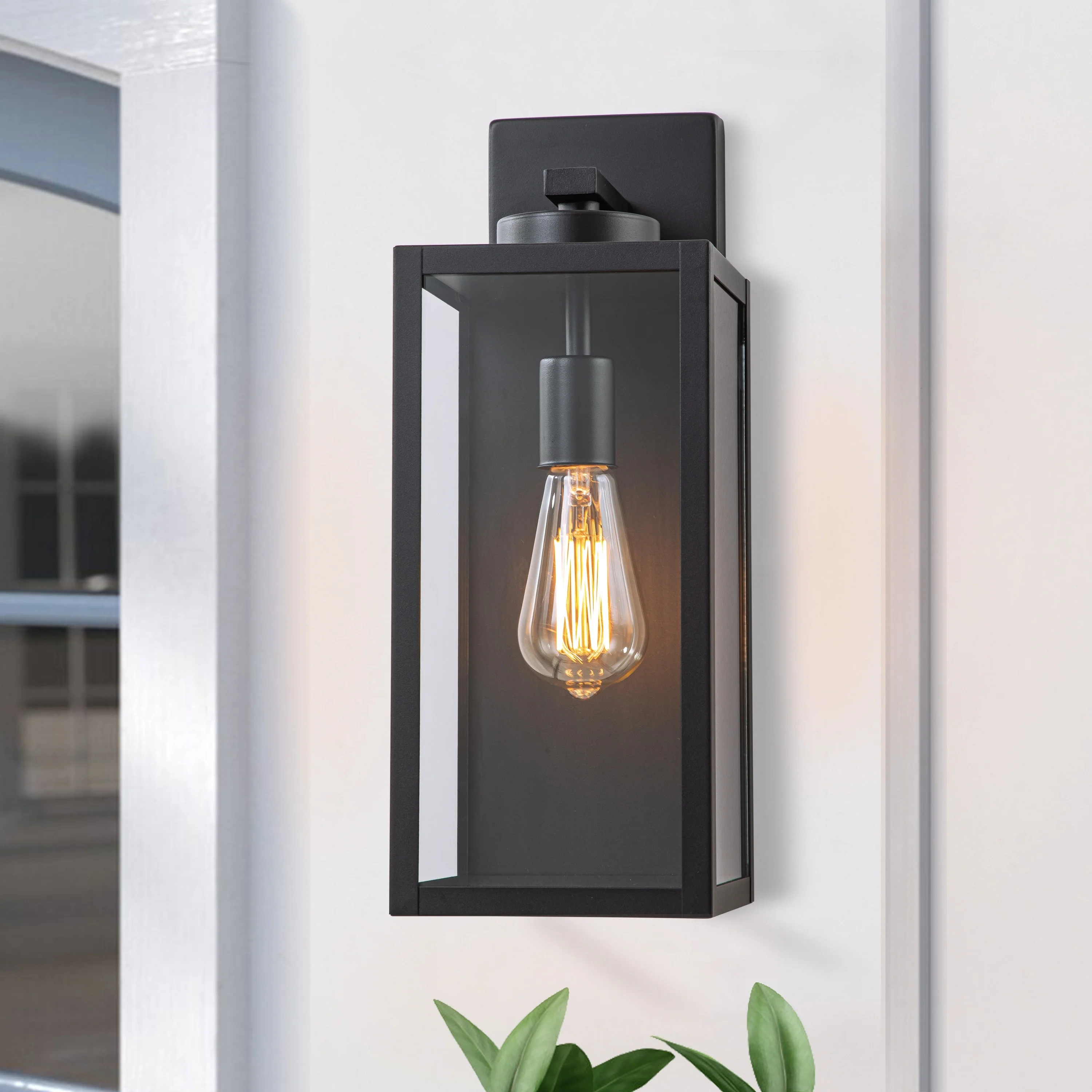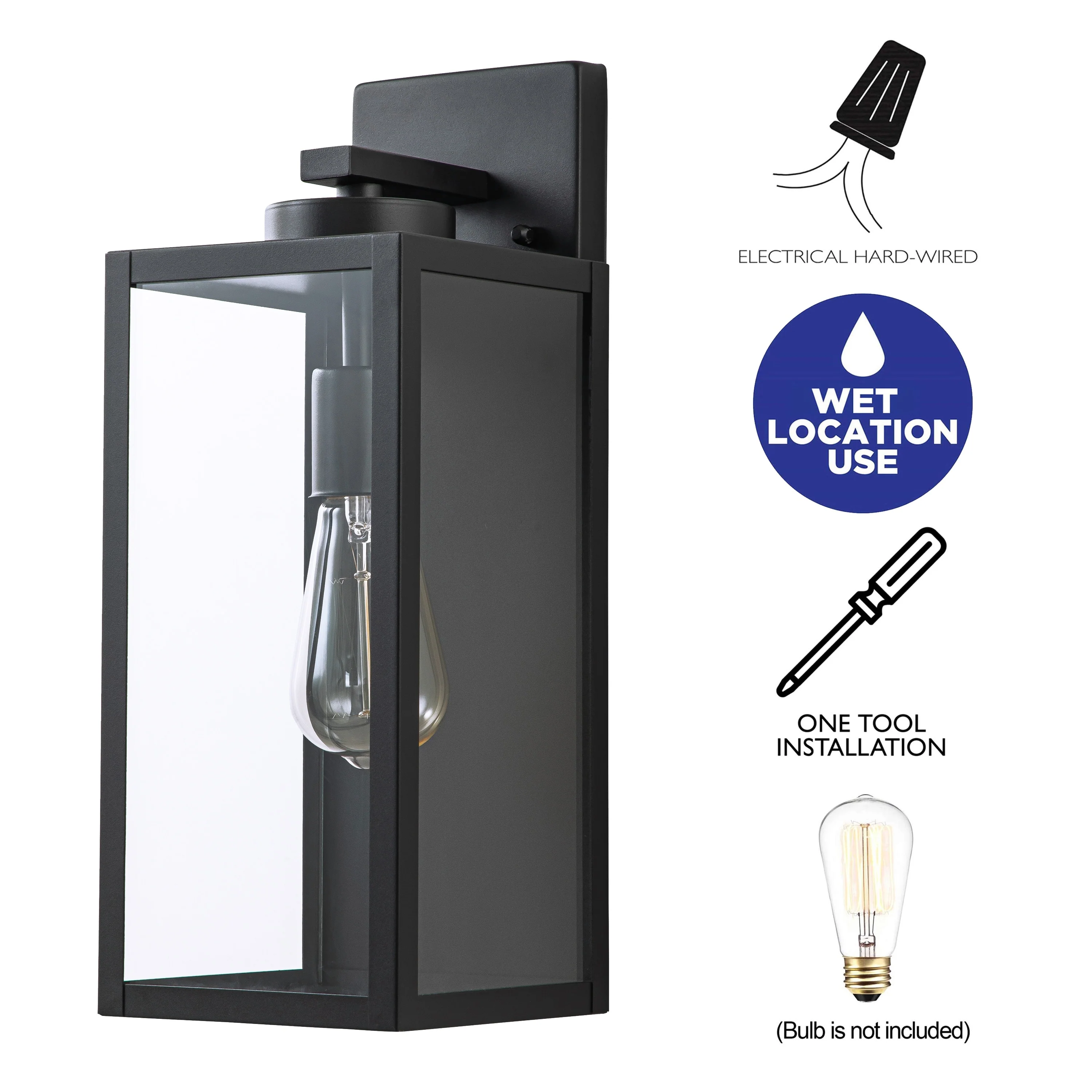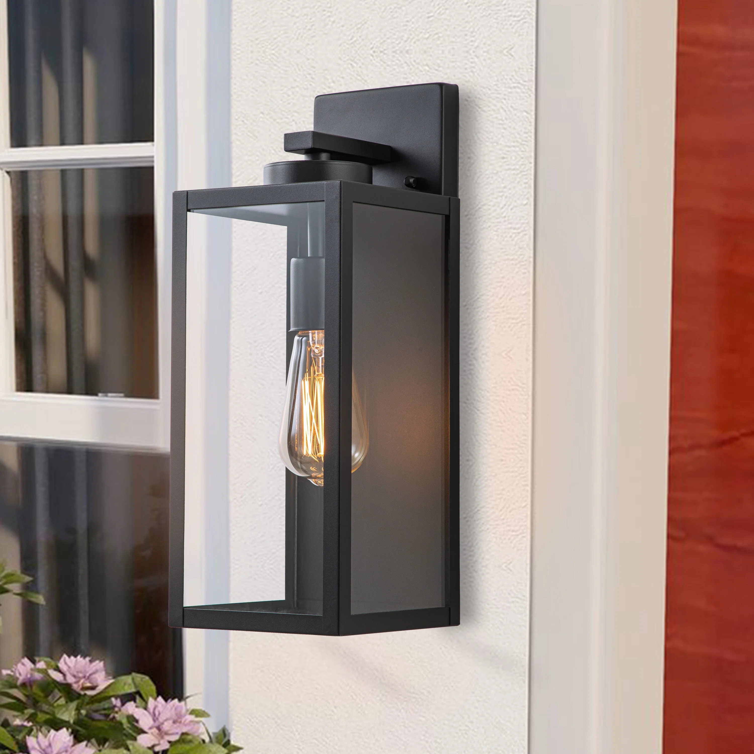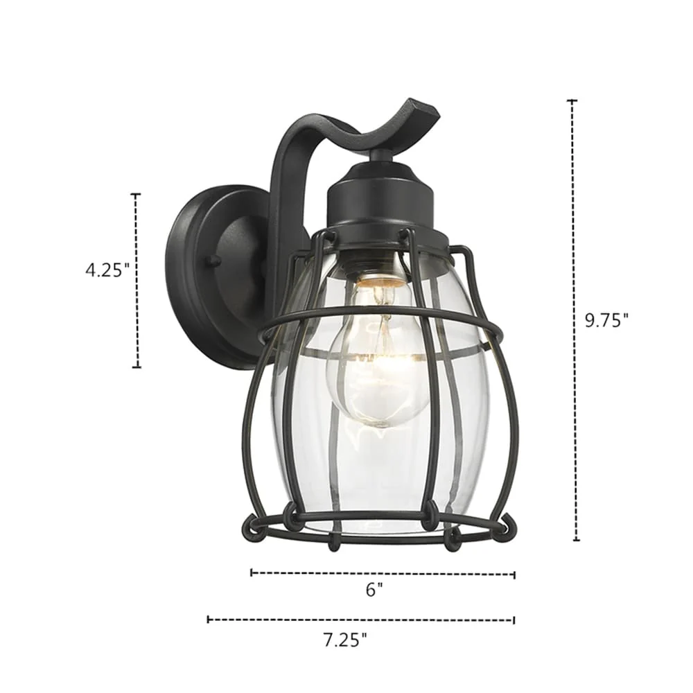 C Cattleya 1-Light Black Outdoor Wall Lantern with Tempered Glass Panes