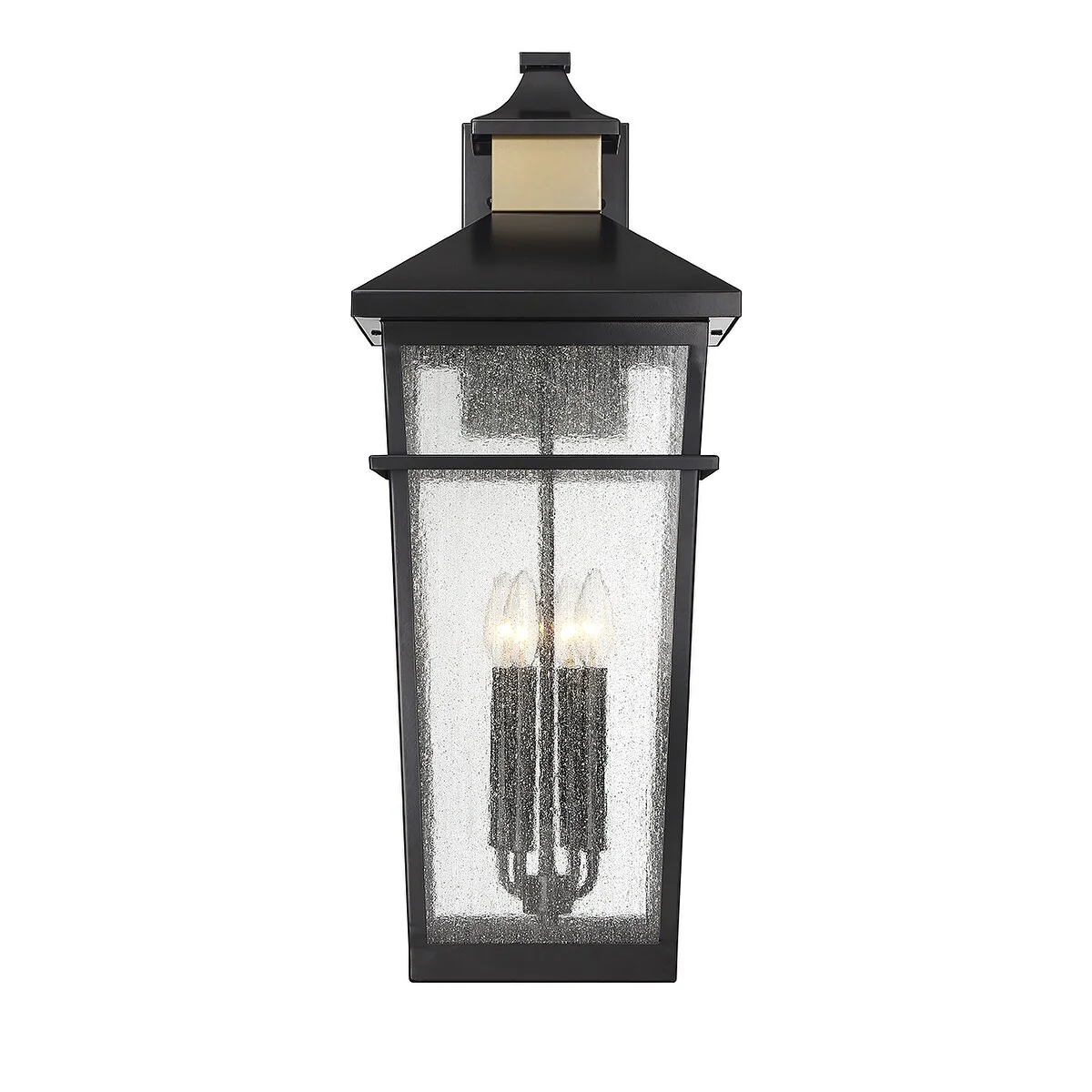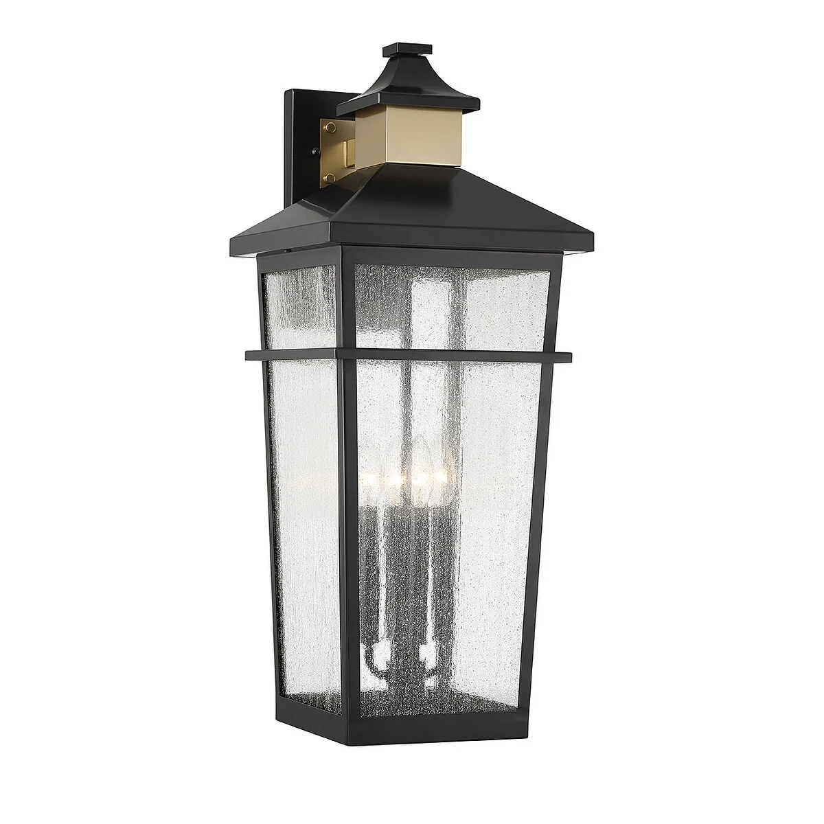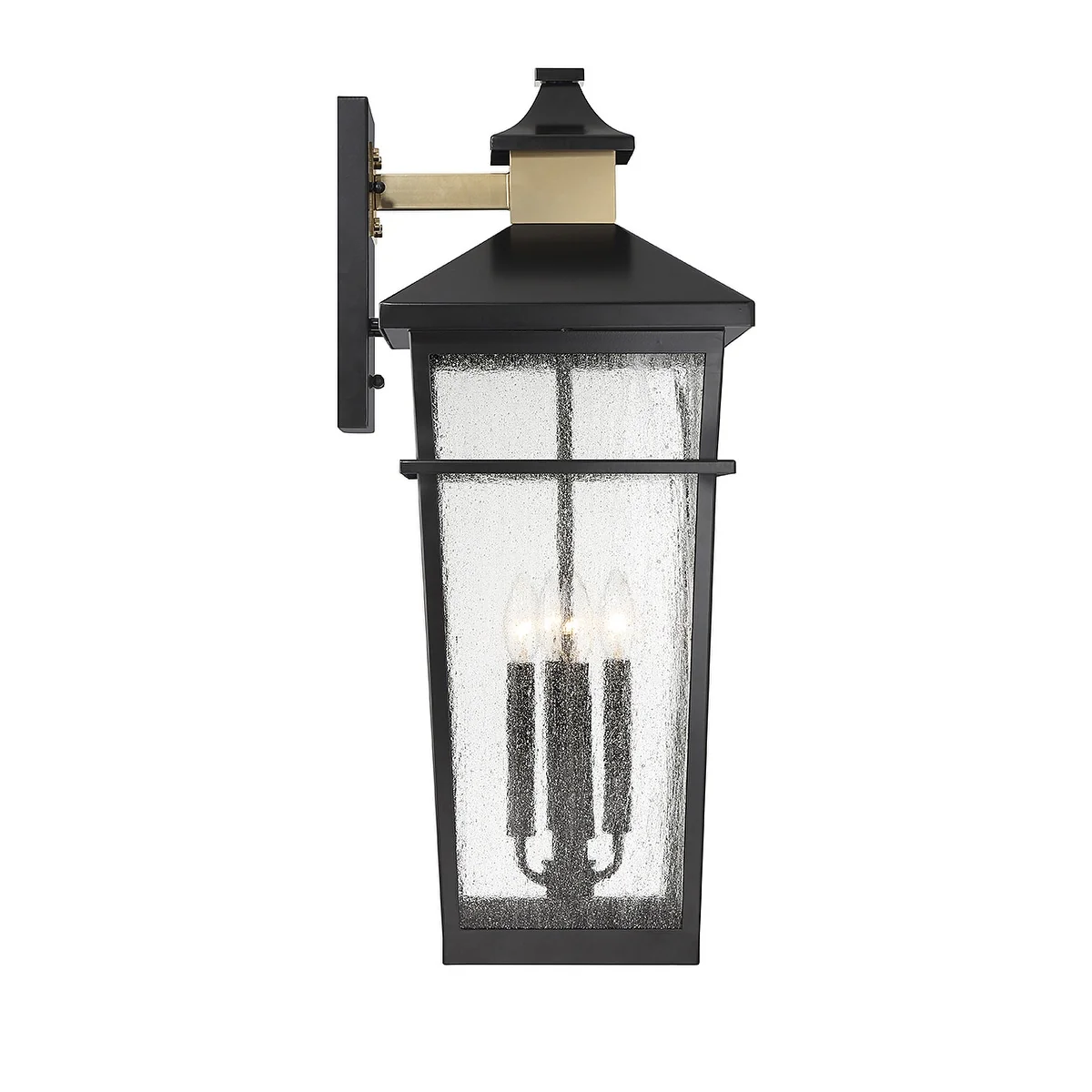 Matte Blackith Warm Brass Four Light Outdoor Wall Lantern from the Kingsley Collection