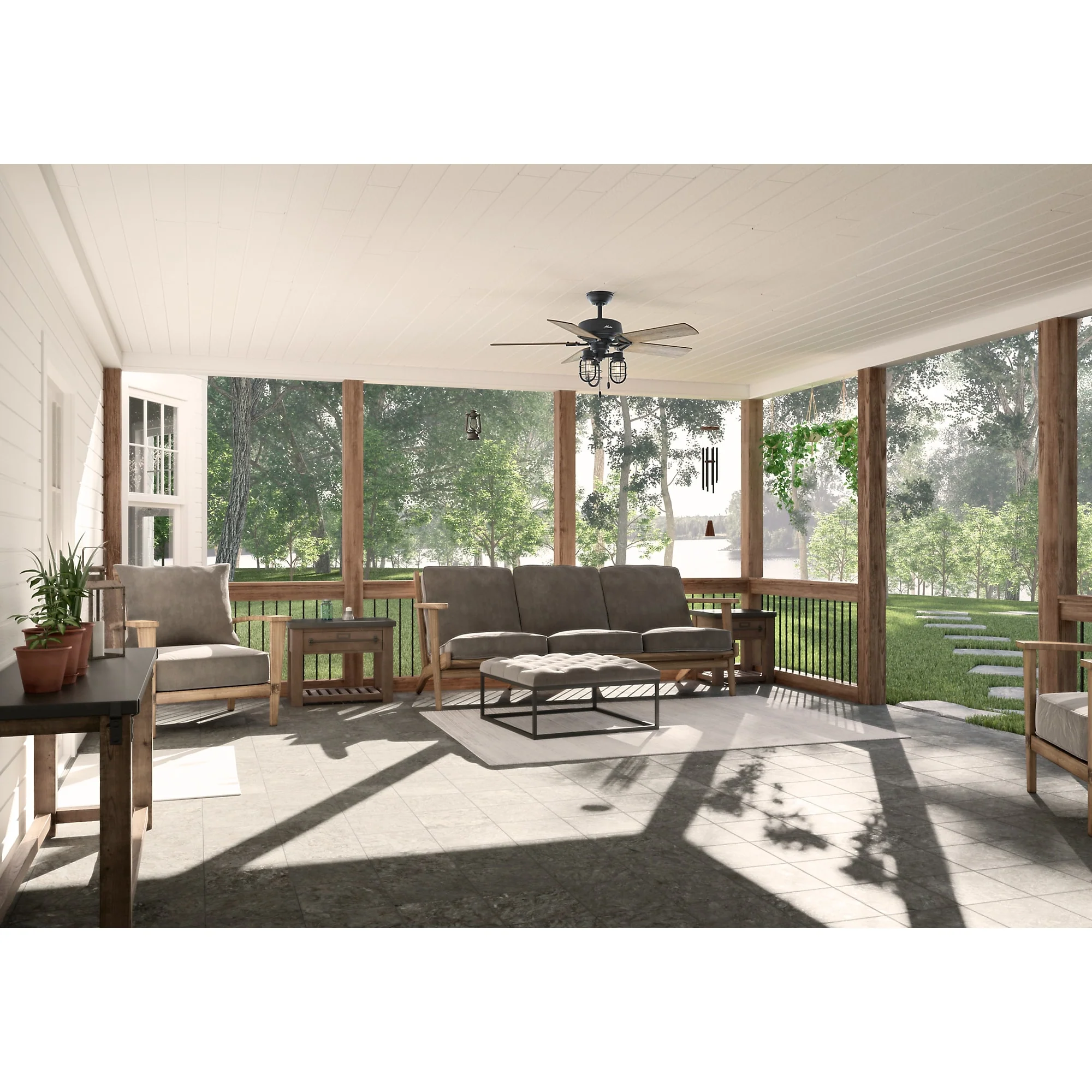 Hunter 52" Starklake Outdoor Ceiling Fan with LED Light Kit, Pull Chain, Damp Rated, Industrial, Farmhouse, Rustic