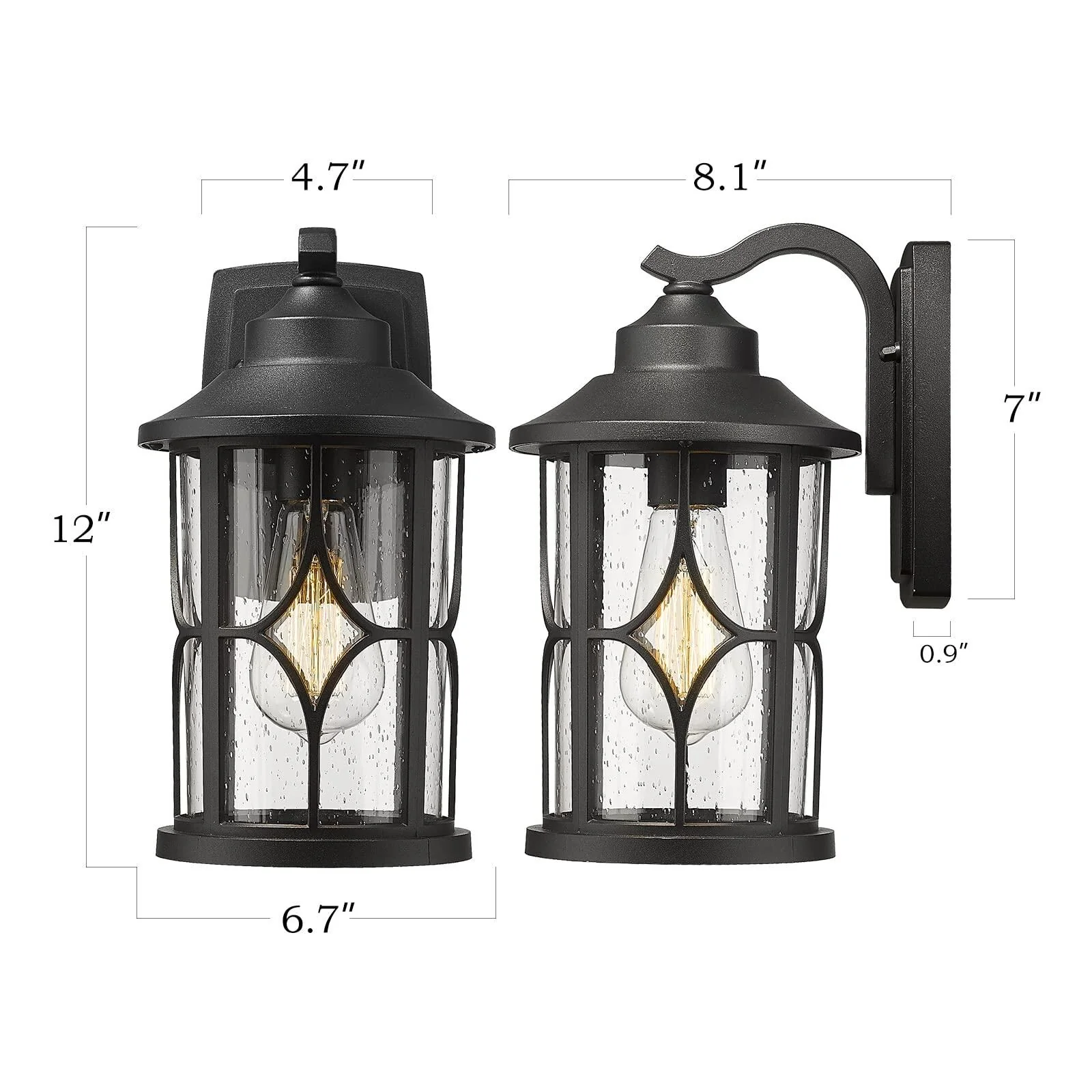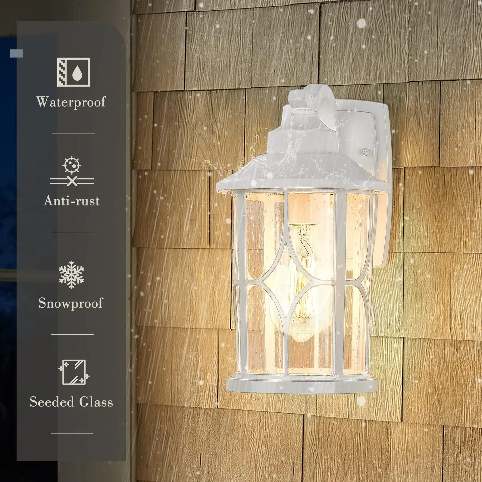 Farmhouse Outdoor Wall Lantern Cast Aluminum with Seeded Glass,Black or White Finish