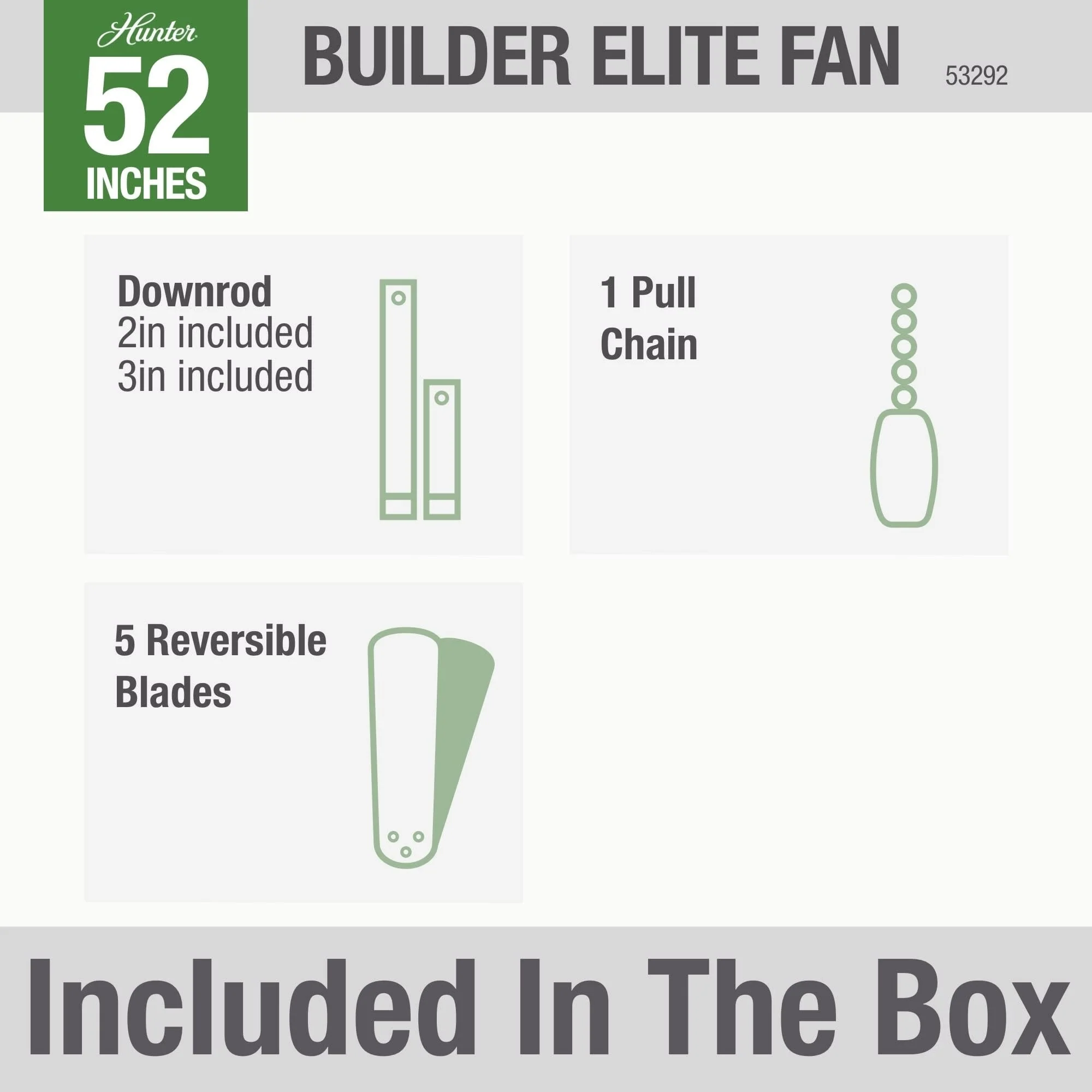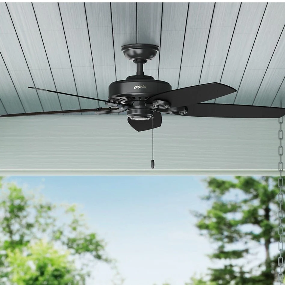 Hunter 52" Builder Elite Outdoor Ceiling Fan with Pull Chain, Damp Rated - Traditional