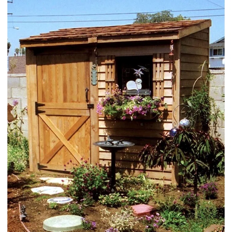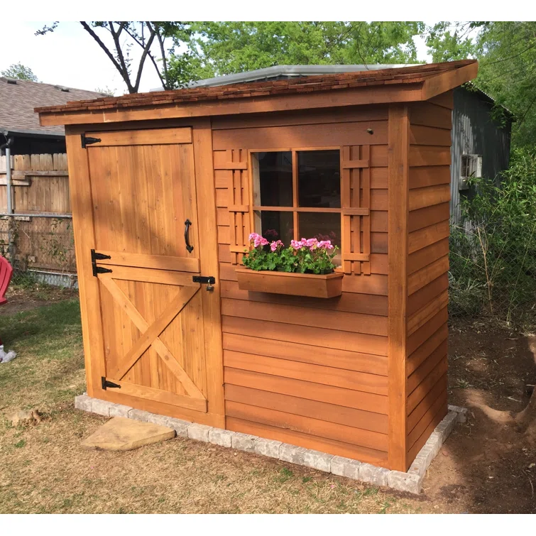 Bayside 8 ft. W x 4 ft. D Western Red Cedar Wood Lean-To Bike Shed, Storage Shed