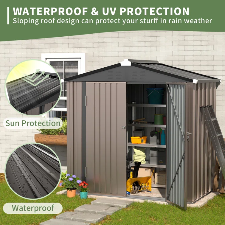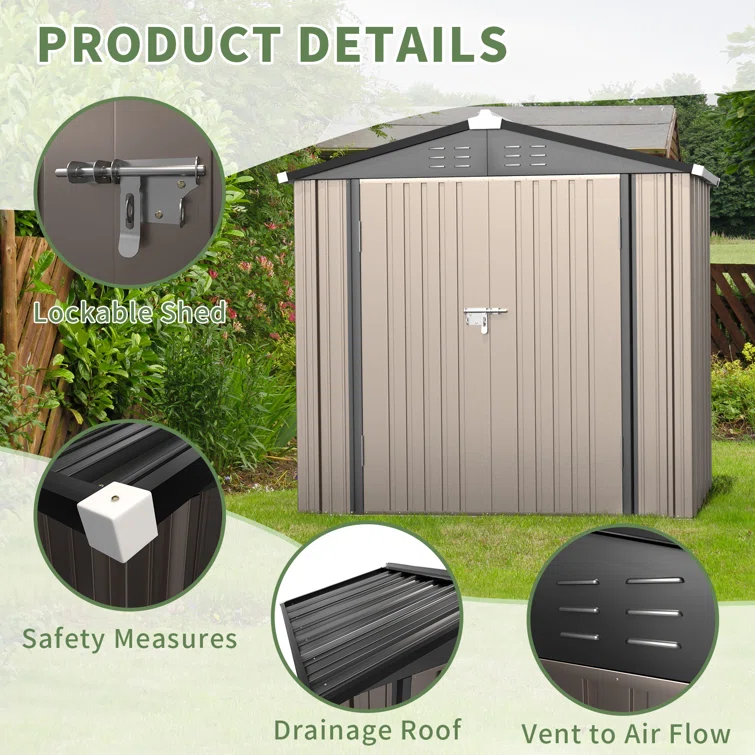 4*3*6 ft Metal Outdoor Storage Shed with Lockable Doors for Home/Backyard/Garden/Lawn Tools