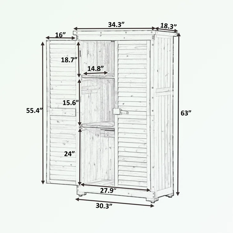 3 ft. W x 2 ft. D Solid Wood Vertical Tool Shed